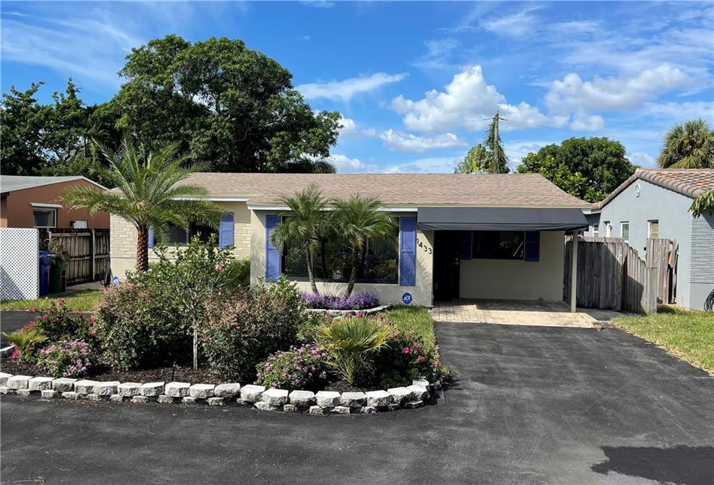 Like New 3/3 Close to Everything. Flexible Layout w/2 Split, Primary Bedrooms, Each w/Sep Entries. Upgrades Incl: New Roof Jul '21, A/C Apr '21, Updated Kitchen w/HardWood Cabs, Quartz Counters, New Sink, Stove, Dish Washer & Fridge. 3 Fully Updated Baths. New Oak Laminate Floors throughout. Bonus Room. Sep Laundry Rm w/W&D. Solid w/Storm Impact-Resistant Windows & Doors All Around. Tankless Water Heater. Partial Carport. New Front Landscape & Asphalt Driveways. Large, Fenced Rear Yard. Near Trendy Shops, Dining & Entertainment on Wilton Dr, Ft Lauderdale Beach, Birch State Pk, Holiday Pk, Fat Village, Galleria & Coral Ridge Mall, Whole Fds, 3x Publix, Trader J's, Fresh Mkt, Aldis, Wharf@Rvrfrnt, Las Olas, Home Dep. Liv Area Believed To Be Larger Than Tax Records.