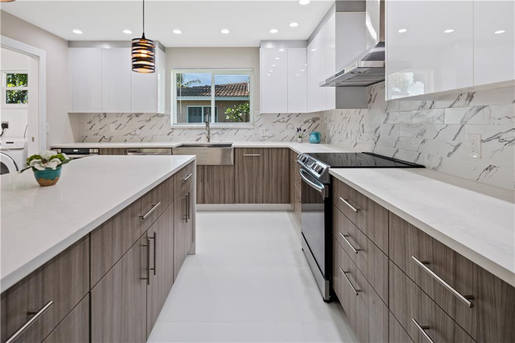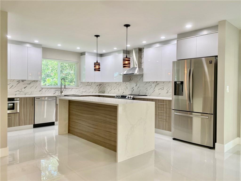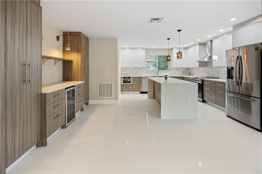 Newly renovated 3/2 in Coral Ridge Isles. Centrally located with easy access to I95, Beach, Holy Cross Hospital, Restaurants and shops. Circular driveway leads you up to this completely renovated home with oversized windows and multiple french doors, bringing the outside in. Split floor plan for added privacy. Brand new kitchen and bathrooms, recessed lighting, beautiful quartz countertops and euro style cabinets. Master bedroom with en-suit bath and french doors overlooking the backyard. New flooring, HVAC, updated electrical panels, impact windows and doors and a two car garage. Older roof. Situated on a nearly 8,000 sq ft loot with plenty room for a pool.