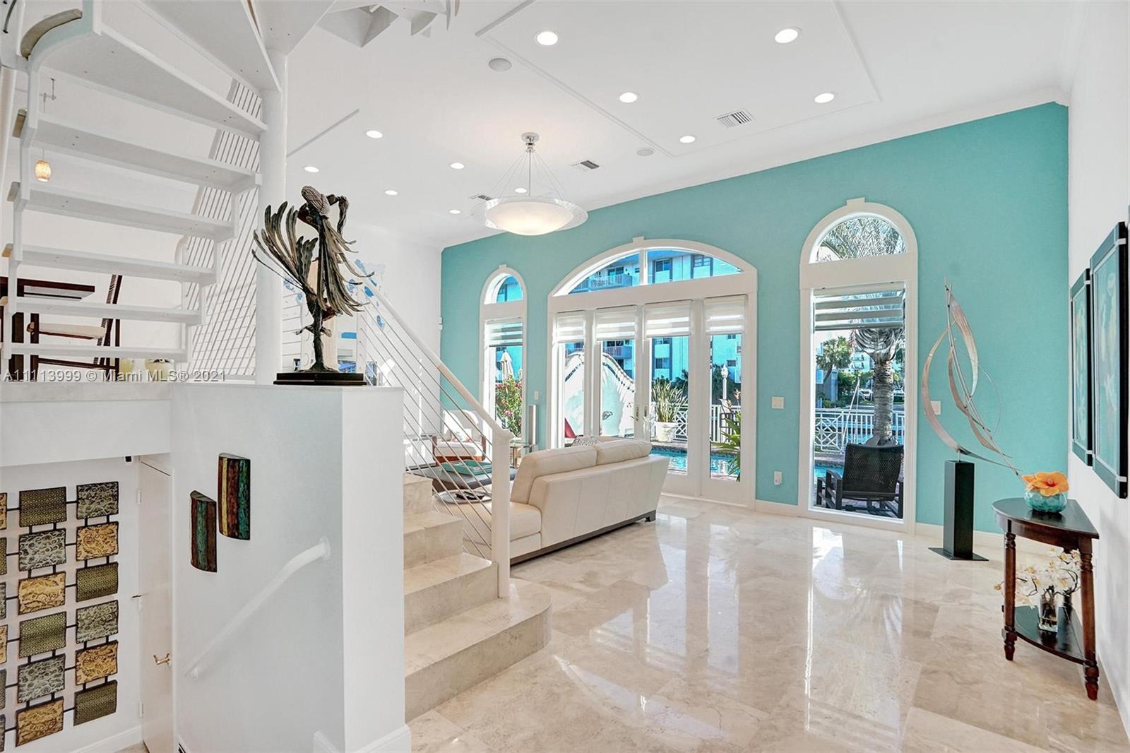 Exclusive community of Eastern Shores. Magnificent 3 bed / 3 1/2 bath waterfront residence in exclusive Eastern Shores. This exceptional one of a kind residence features: 40 foot dock space with brand new dock - 3 very spacious bedrooms have en suite bathrooms, Dream kitchen with 2 ovens and all new appliances with extra bonus ice maker, Spiral staircase - private elevator - impact window - gleaming marble floors downstairs - wood floors upstairs - underwater green dock light to attract fish. Ocean Access - no fixed bridges to Ocean . Excellent location - 20 minutes to MIA airport or Ft Laud airport - minutes to Ocean - Bal Harbor Shoppes - Aventura Mall - Walk to restaurants, shopping, Oleta Park where biking paths are endless.