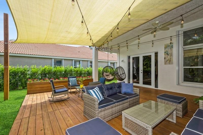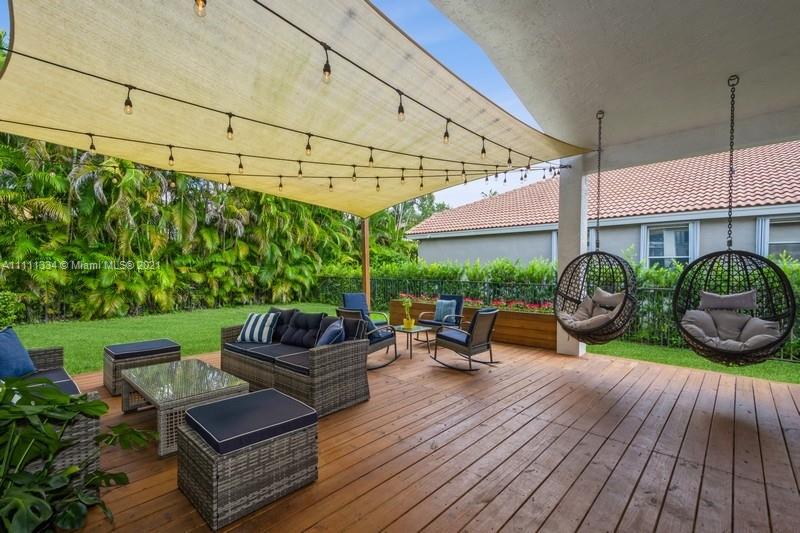 Don't miss out, this property won't last! This sought after Christina Model has recently been upgraded and move-in ready! The single story home features large 24x48 porcelain tiles in living spaces and porcelain wood look tiles in bedrooms. Kitchen has new wood cabinetry, quartz counters with peninsula seating and new appliances. The primary bedroom is spacious and includes two large walk-in closets. The primary bath has just been redone with modern vanities, a soaking tub and a walk-in shower. The home features a beautiful deck to incorporate a desirable indoor/outdoor living space. Additional features include accordion shutters, newer paint inside and out and impact resistant French doors. Enjoy the amenities, including a resort style pool, gym, tennis & basketball courts and more!