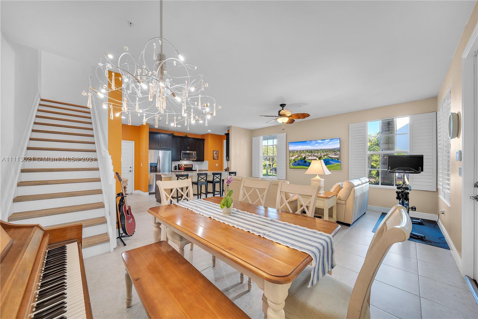 Rare Find Model Unit, the only one of its kind on the market! Beautiful 3 bed / 2.5 bath furnished corner two-story townhome. Featuring oversized master bedroom, renovated kitchen, tile floors with carpeted master bedroom. Rest of second floor and stairs are wood floors. Large walk-in closets, private den, extra balcony feature from master bedroom with view to open preserve, small paved patio, large two-car garage with driveway premium allowing room for two extra cars. All windows are impact resistance with plantation shutter blinds. Your perfect home awaits. Amazing family-friendly lakefront community features pool, gym, clubhouse, kids playground, walking trail Low HOA fee includes basic cable & internet Home is sold fully-furnished and ready to move in