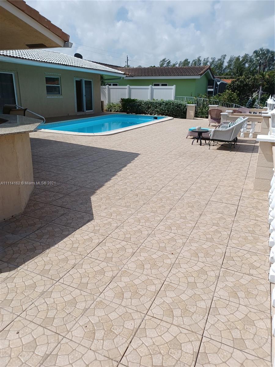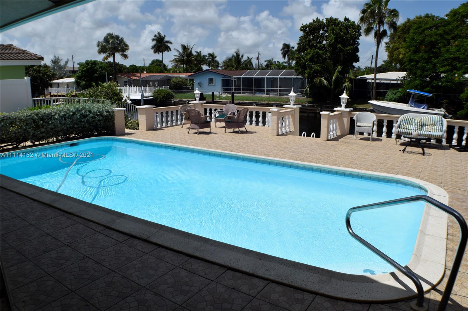 Executive ocean access waterfront home with 80'+ dock and fabulous 1,500 Sq. Ft concrete patio, pool with brand new oversize heater, separate BBQ area with granite counters, slip resistant tile, outdoor lighting and no rust, no wood long lasting dock with electric and water. Interior is just as nice. Upgraded kitchen, maple cabinets, granite counters, S/S appliances, separate laundry room, travertine marble floors in living/dining/kitchen; mahogany wood floors in main bedroom, bay window in living room, marble and wood beam ceiling in main bath, upgraded vanities, dual shower with seat, huge walk in closet. New 5 ton A/C with all new ducting, large two car garage. Impeccably maintained with full inspection report available with offer. Move in ready. Celebrate the holidays in your new home!