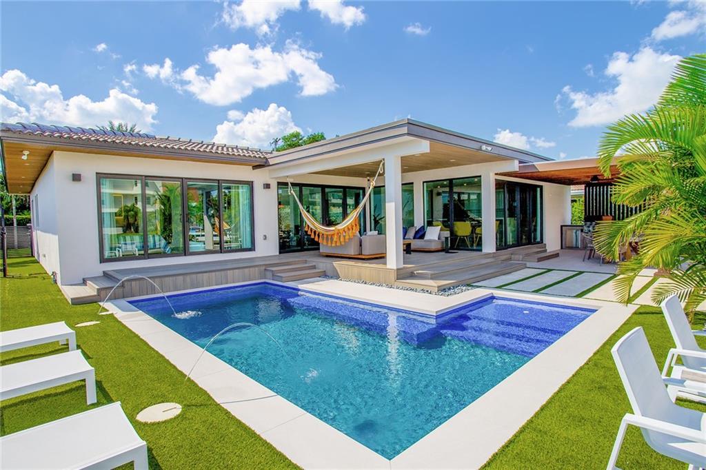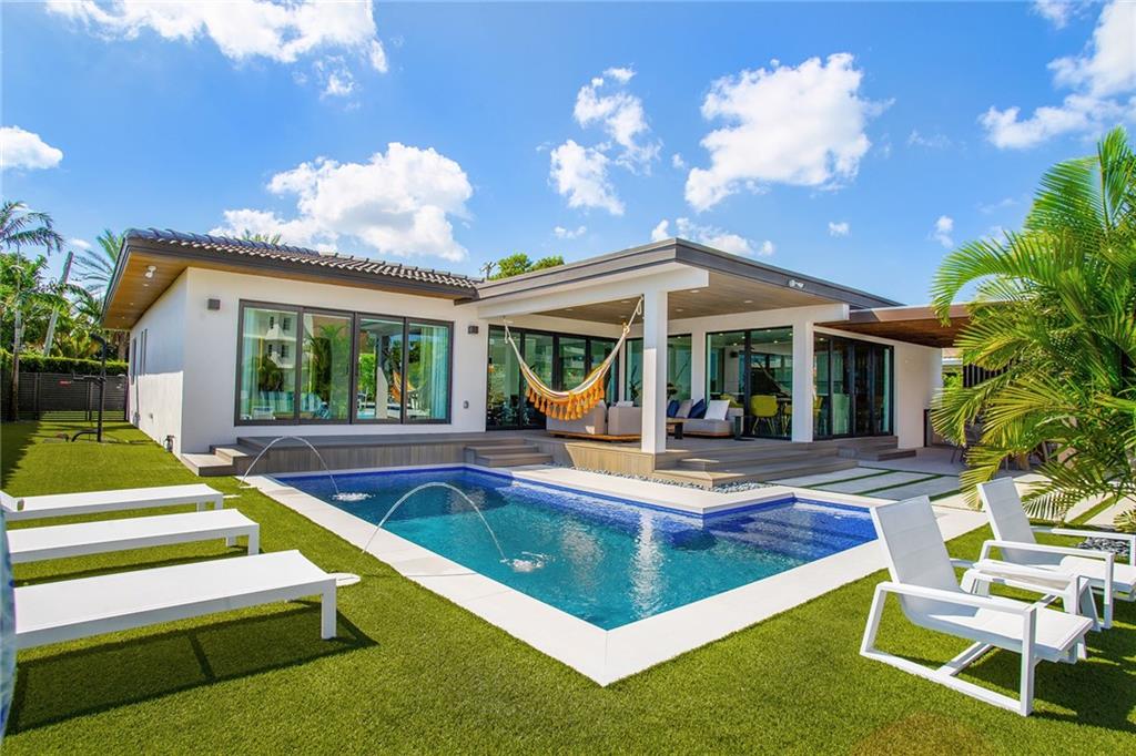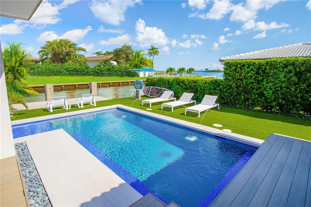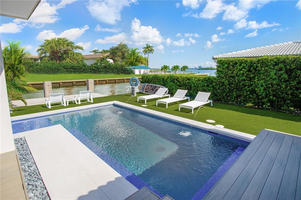 Move into this stunning contemporary boaters dream residence on a rare cul-de-sac lot with spectacular sunrise views from Biscayne Bay & vast intercoastal views throughout home. This 3 bedroom 3.5 bathroom masterpiece was designed to perfection by a renown architect & brilliant outdoor spaces by Luxapatio. No detail was missed with generous entertaining spaces both indoor and out.Lounge pool has 9 jets & smart aqualink system. Custom built dock has 75 Ft of water frontage equipped to dock a 50 Ft yacht. Astonishing Imported front door, 24X48 Italian porcelain floors throughout,Spaniard kitchen cabinets & huge porcelain Island, Viking appliances, Lynx outdoor kitchen, Custom aluminum Pergola, Indoor & outdoor LED lighting. Make this resort style dream home yours today. Sunset views included