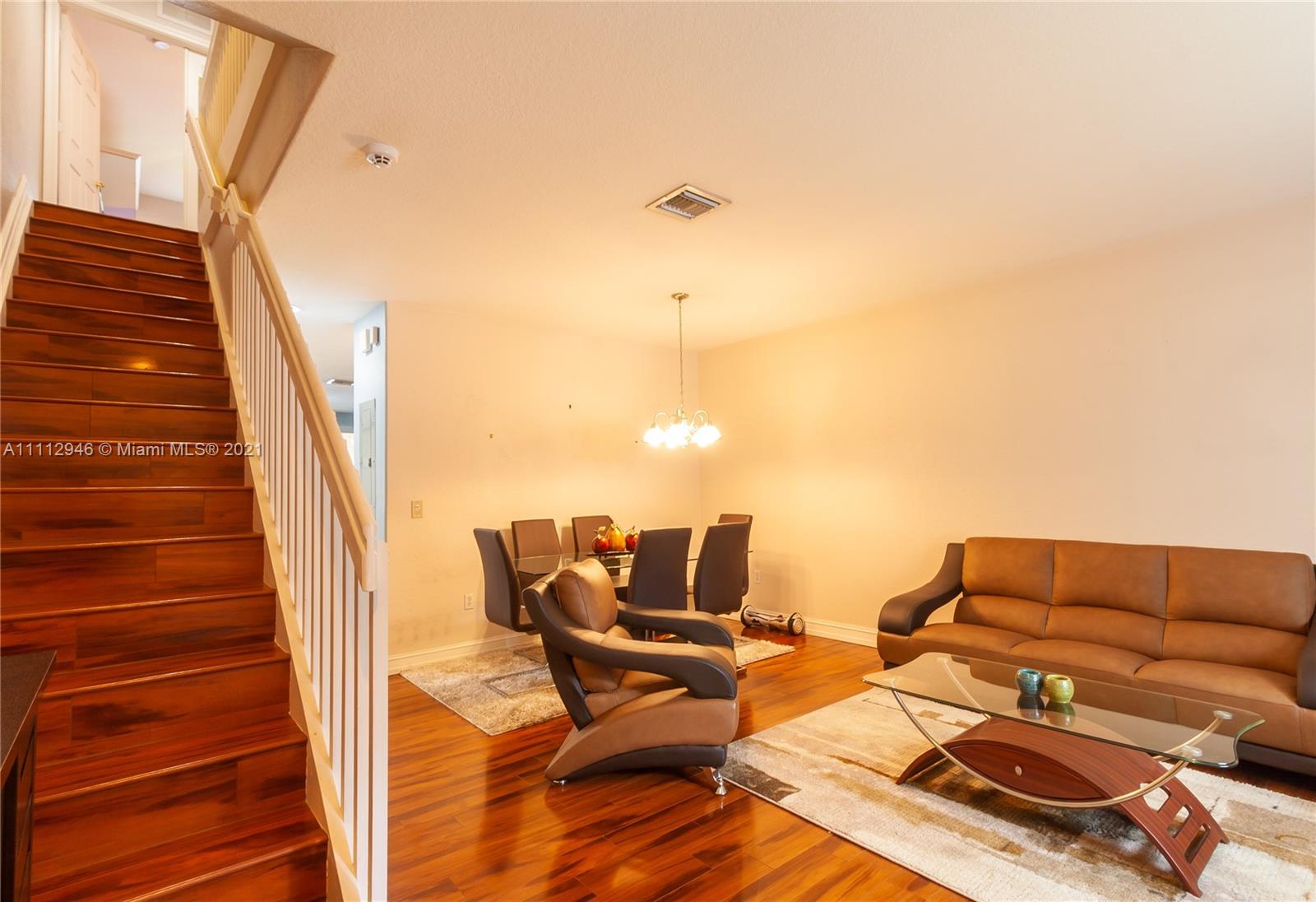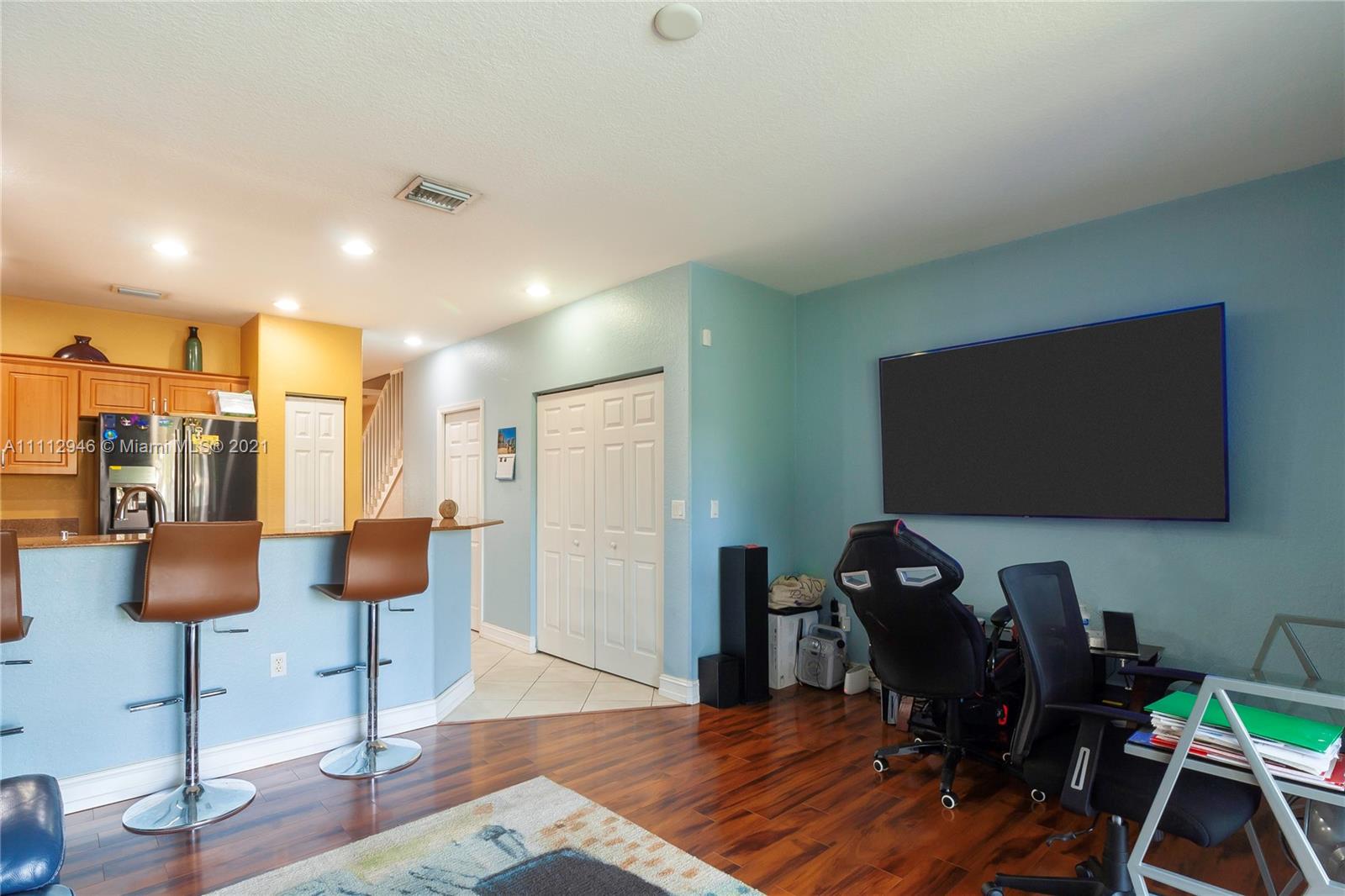 COME SEE THE BEST MURANO HAS TO OFFER. You will love this tow-story, LAKE VIEW townhouse with BRAND NEW AC UNIT and OPEN KITCHEN with GRANITE counters, breakfast bar, microwave, dishwasher, STAINLESS steel appliances. Full size washer & dryer are inside. Property features wooded laminated floors throughout except in the rooms upstairs. Downstairs half-bath, all three bedrooms upstairs, master bedroom in front of the upstairs, other two bedrooms and main bath to the right. Security gate, quiet neighborhood, CLOSE to TURNPIKE. Neighborhood has nice community pool, tennis, and fitness center. Approved budget, Cash, Conventional only. Condo only accepts Pets Dog, Cats, and Birds.