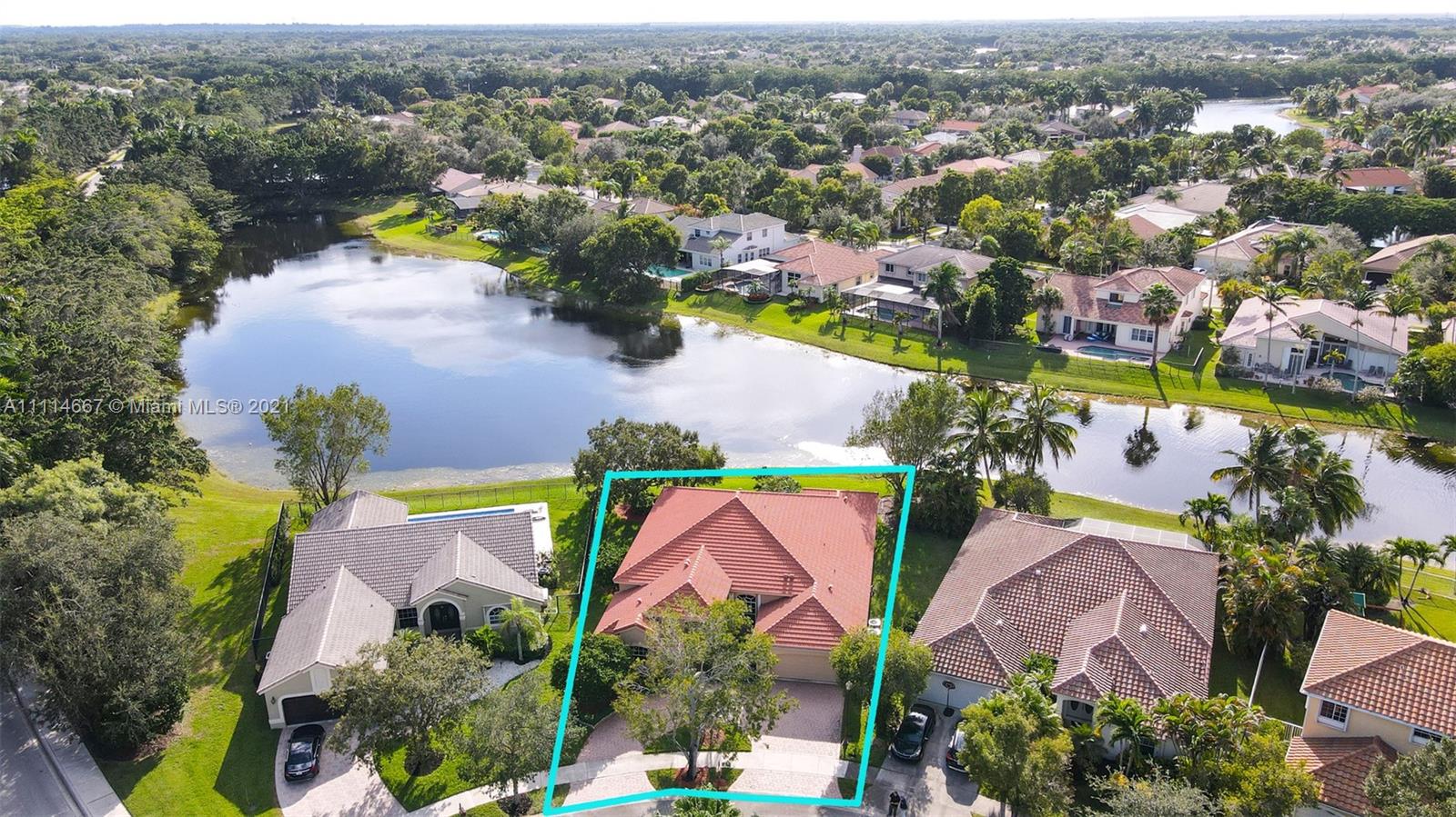 Beautiful lakefront one story home with circular driveway tucked away on private cul-de-sac. Situated on a prime lot this spacious 5 bedrooms 3.5 bathroom home is located in the highly south after gated community of The Lakes! As soon as you enter you are greeted by peaceful and serene lake views. The perfect home for any family looking for light, bright & large living areas. Triple split floor plan! Oversized master bedroom with bonus sitting area and updated master bathroom! Newer roof, impact front doors and garage door and newly installed Tesla charging station! Steps away from community pool, playground, park and bonus green space in the front of the home "A" rated schools, close to shopping, restaurants and quick access to I-75.Don't miss out on this incredible opportunity!