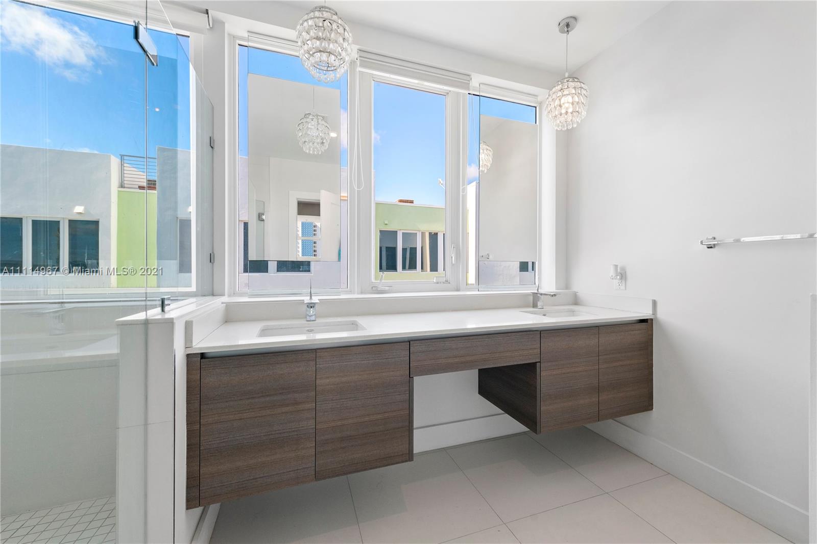Live the Miami dream in this beautiful 4 story waterfront townhouse. Located in Iris On The Bay featuring 4 bedrooms with private balconies, 4.5 bathrooms, private elevator, modern European kitchen, laundry room, rooftop terrace with outdoor kitchen, and spacious 2 car garage. Water access is only within a few steps from your door to the dock for all your boating and water sports needs. The bedrooms are well laid out and split with the master suite on the 4th floor. The private elevator provides amazing convenience for all floors within the home. The property is located a few blocks from beach, across from normandy golf course, tennis courts, children's playground, soccer field, restaurants, and shopping.