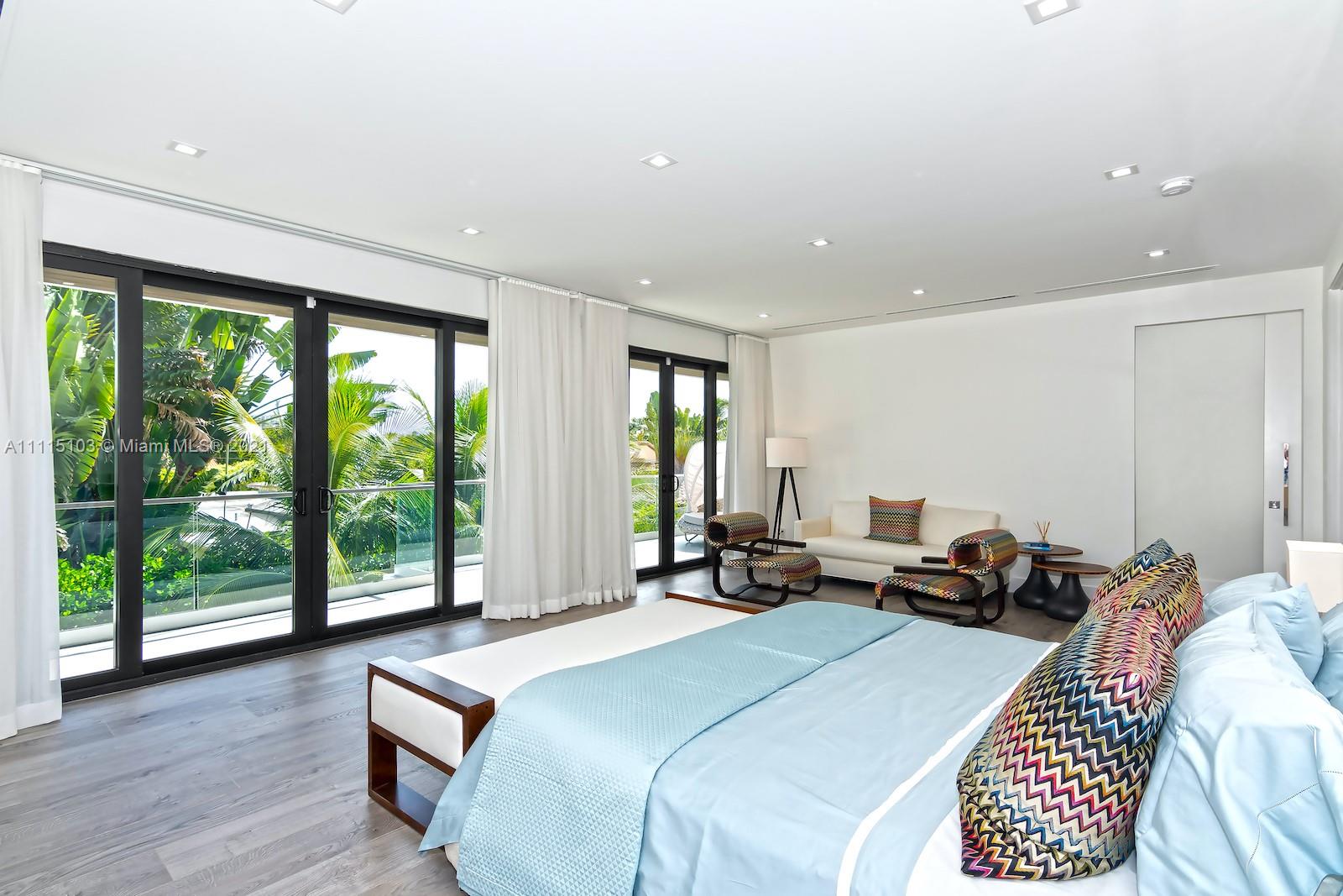 This modern architectural masterpiece w/ soaring ceilings & views of the sparkling pool greet you as you enter this magnificent 5 BD with en suite baths plus 2 half baths. The abundance of natural light throughout create a bright & tropical ambiance w/ oversized sliding hurricane impact doors which frame the open kitchen & living area. Chef’s kitchen features top of the line Sub Zero & Wolf appliances, custom cabinetry and a unique sliding door separating the working areas from the rest of the house. Master suite w/ custom walk-in closet & luxurious marble spa-like bathroom. The lushly landscaped backyard w/ separate cabana area & cabana bathroom, large covered patio & pool. Automated curtains, security cameras and a 2 car garage. Live in your own private oasis in the heart of Miami Beach.