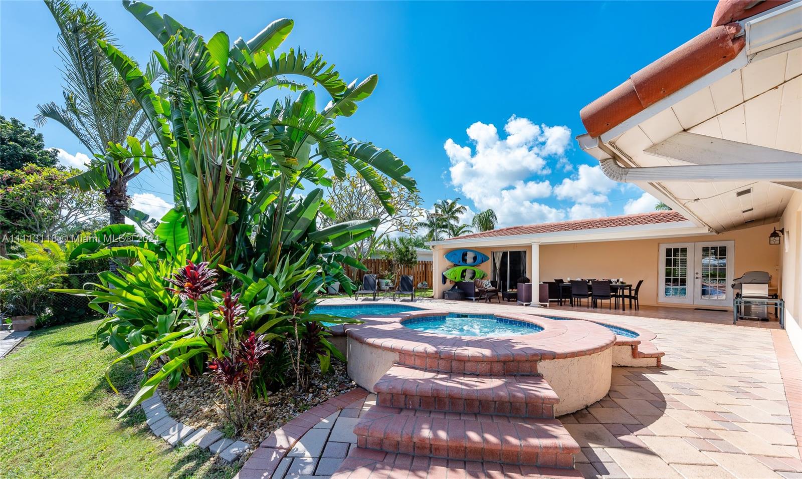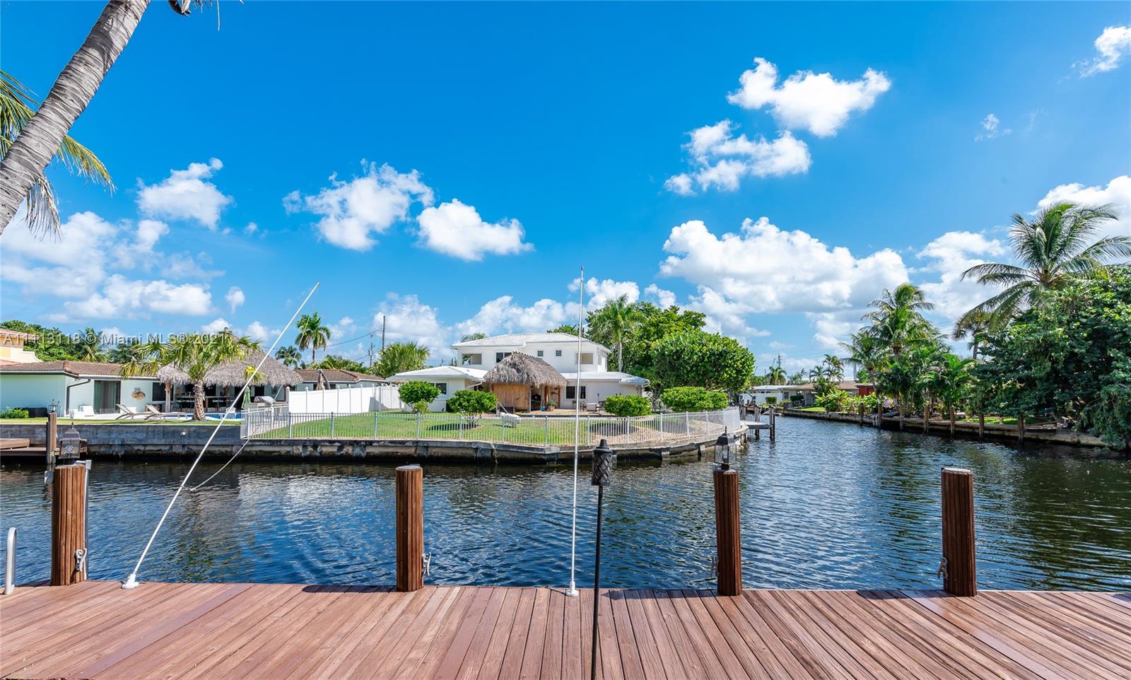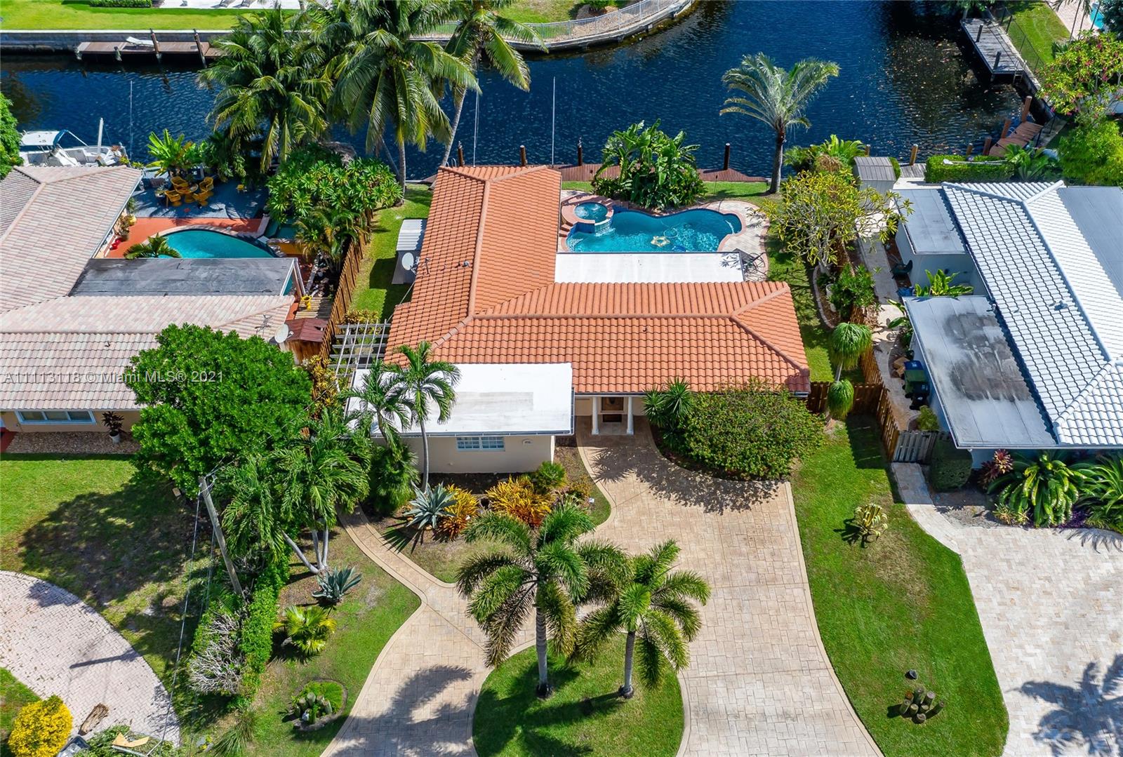 Stunning Waterfront home 3BR/2BA with Ocean access. Private 75'dock with davits, electricity and lights. Plantation shutters and French doors that allow for plenty of light. Lush Landscaping throughout and an incredible terrace, patio and paved pool/spa deck where you can enjoy the South Florida Sunshine. Modern kitchen, SS appliances with access to charming pergola covered patio area. Separate laundry room and storage area. This is the last house for sale in this amazing quiet location. With private 24/7 security. NO HOA.