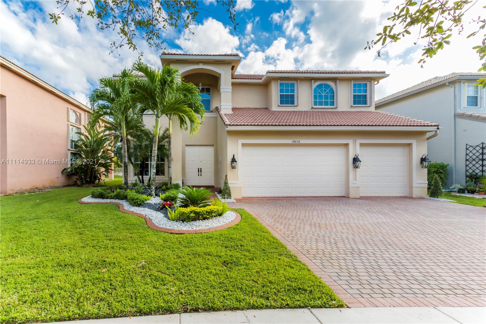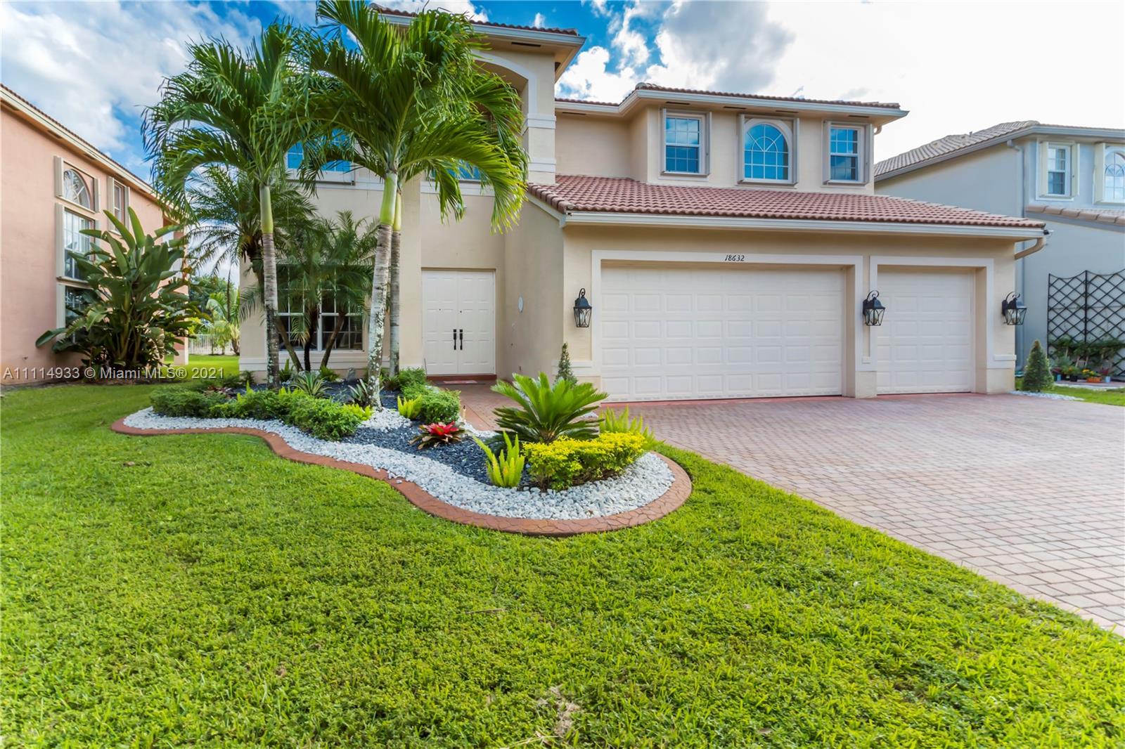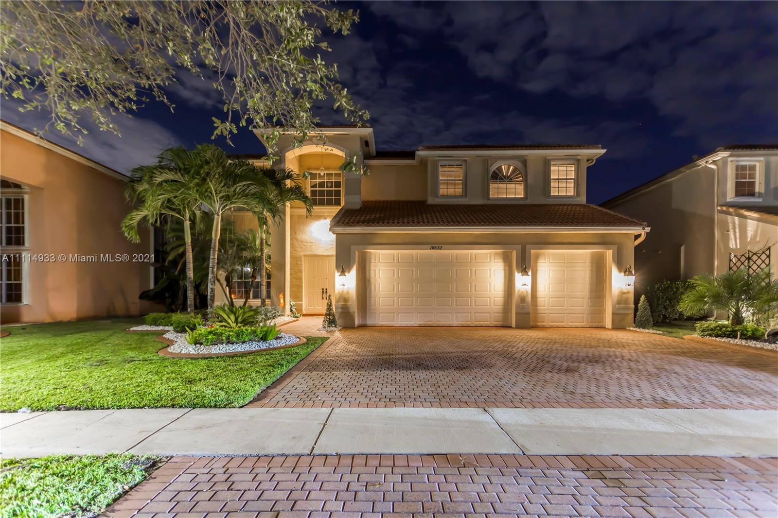 BEAUTIFUL, HIGHLY SOUGHT AFTER MARIELLA MODEL IN SUNSET LAKES FEATURES A GRAND MODERN STAIRCASE W CUSTOM WROUGHT IRON RAILING. SPACIOUS, OPEN FLOOR PLAN, FRESHLY PAINTED INTERIOR W WARM NEUTRAL COLORS. BEDROOM & FULL BATH ON FIRST FLOOR. 2 MASTER SUITES W/ WALK IN CLOSETS. LARGE GOURMET KITCHEN W GRANITE COUNTERTOPS, & REAL WOOD CABINETS. ACCORDION SHUTTERS THROUGHOUT SECOND FLOOR, PROFESSIONAL LANDSCAPING. ENJOY THE BACKYARD WHICH IS COMPLETELY PRIVATE W NO NEIGHBORS BEHIND. OVERSIZED CUSTOM POOL W HAYWARD HEATING PUMP. EXPANSIVE COVERED SITTING AREA IS PERFECT FOR ENTERTAINING. 24-HOUR GATED COMMUNITY WITH CLUBHOUSE, POOL, GYM, CHILDREN’S PLAYGROUND AND WORLD-CLASS TENNIS CENTER. SHOWINGS WILL START MONDAY 10/25 TEXT LISTING AGENT.