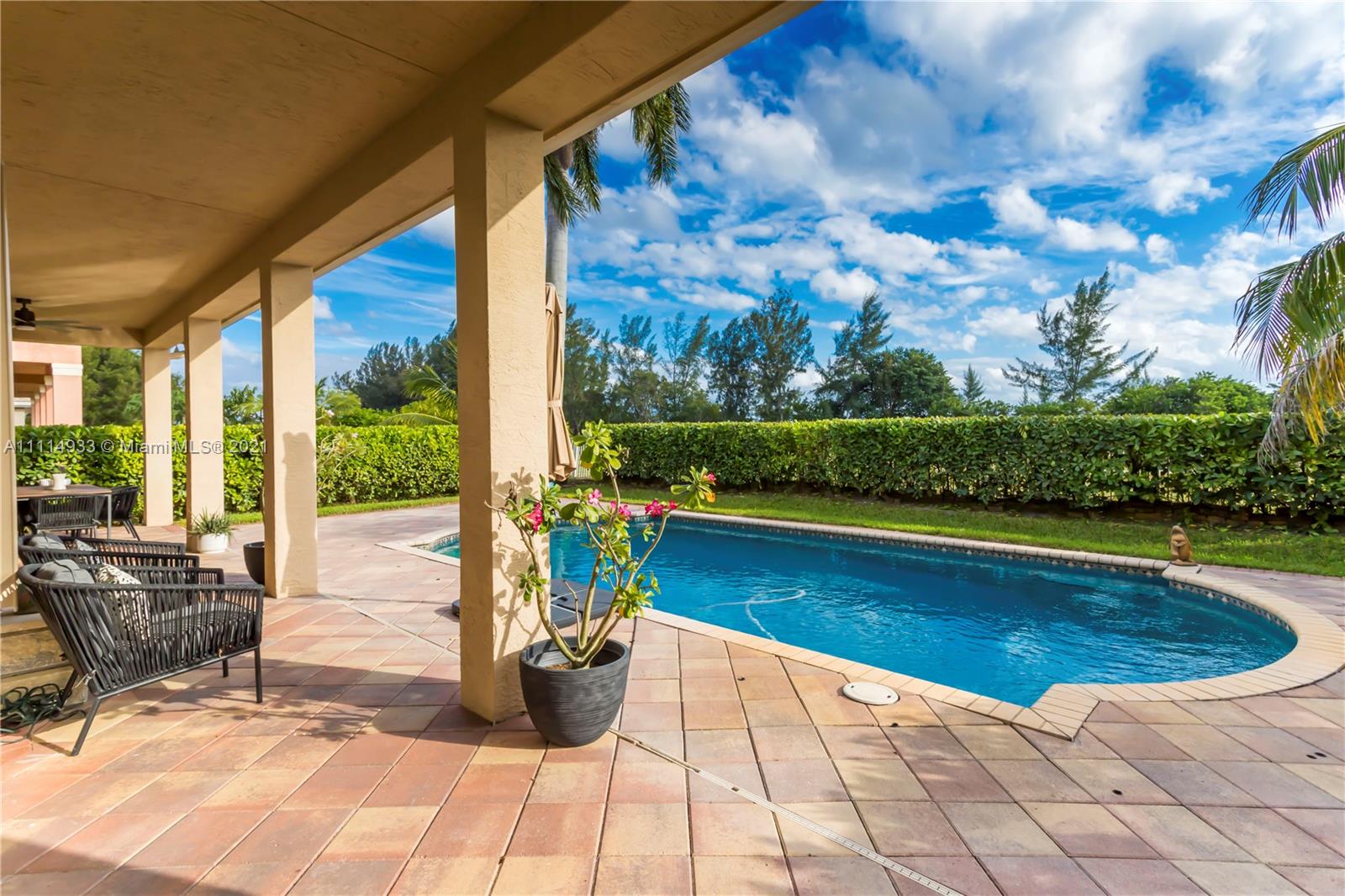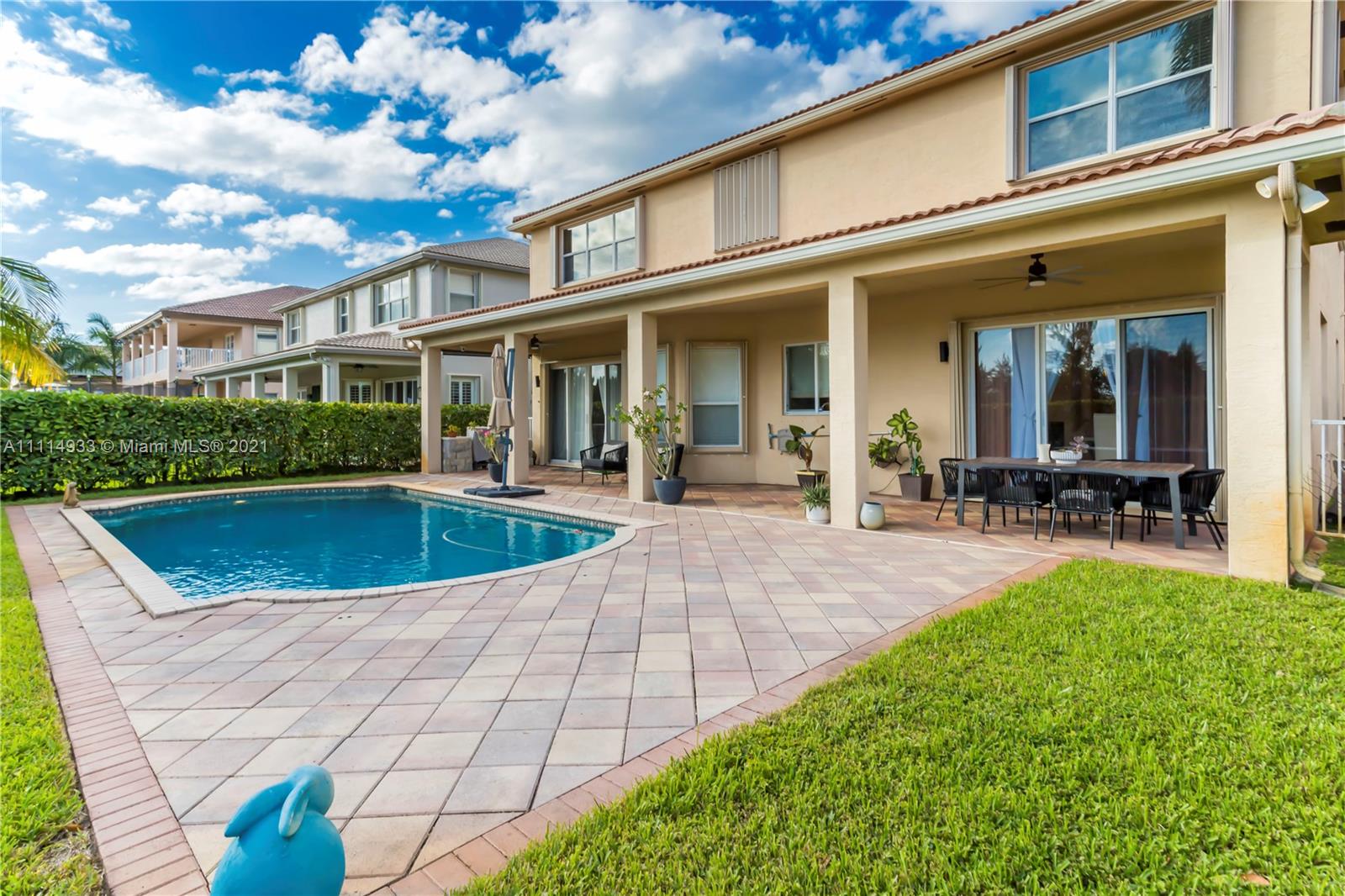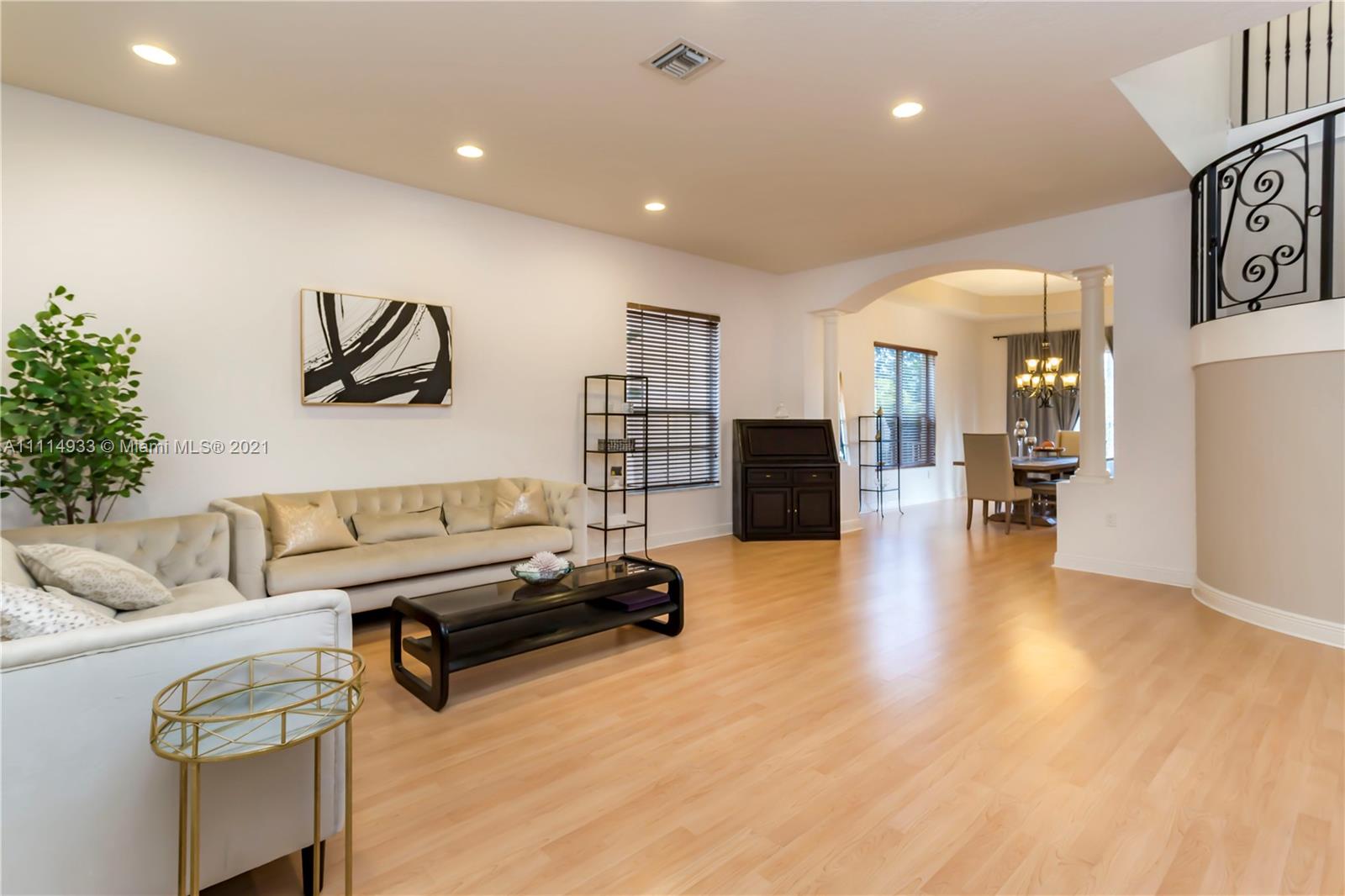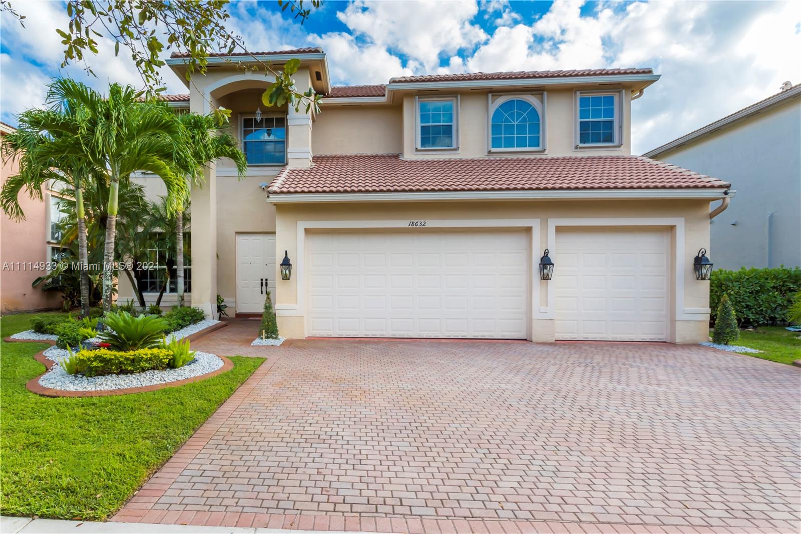 BEAUTIFUL, HIGHLY SOUGHT AFTER MARIELLA MODEL IN SUNSET LAKES FEATURES A GRAND MODERN STAIRCASE W CUSTOM WROUGHT IRON RAILING. SPACIOUS, OPEN FLOOR PLAN, FRESHLY PAINTED INTERIOR W WARM NEUTRAL COLORS. BEDROOM & FULL BATH ON FIRST FLOOR. 2 MASTER SUITES W/ WALK IN CLOSETS. LARGE GOURMET KITCHEN W GRANITE COUNTERTOPS, & REAL WOOD CABINETS. ACCORDION SHUTTERS THROUGHOUT SECOND FLOOR, PROFESSIONAL LANDSCAPING. ENJOY THE BACKYARD WHICH IS COMPLETELY PRIVATE W NO NEIGHBORS BEHIND. OVERSIZED CUSTOM POOL W HAYWARD HEATING PUMP. EXPANSIVE COVERED SITTING AREA IS PERFECT FOR ENTERTAINING. 24-HOUR GATED COMMUNITY WITH CLUBHOUSE, POOL, GYM, CHILDREN’S PLAYGROUND AND WORLD-CLASS TENNIS CENTER. SHOWINGS WILL START MONDAY 10/25 TEXT LISTING AGENT.