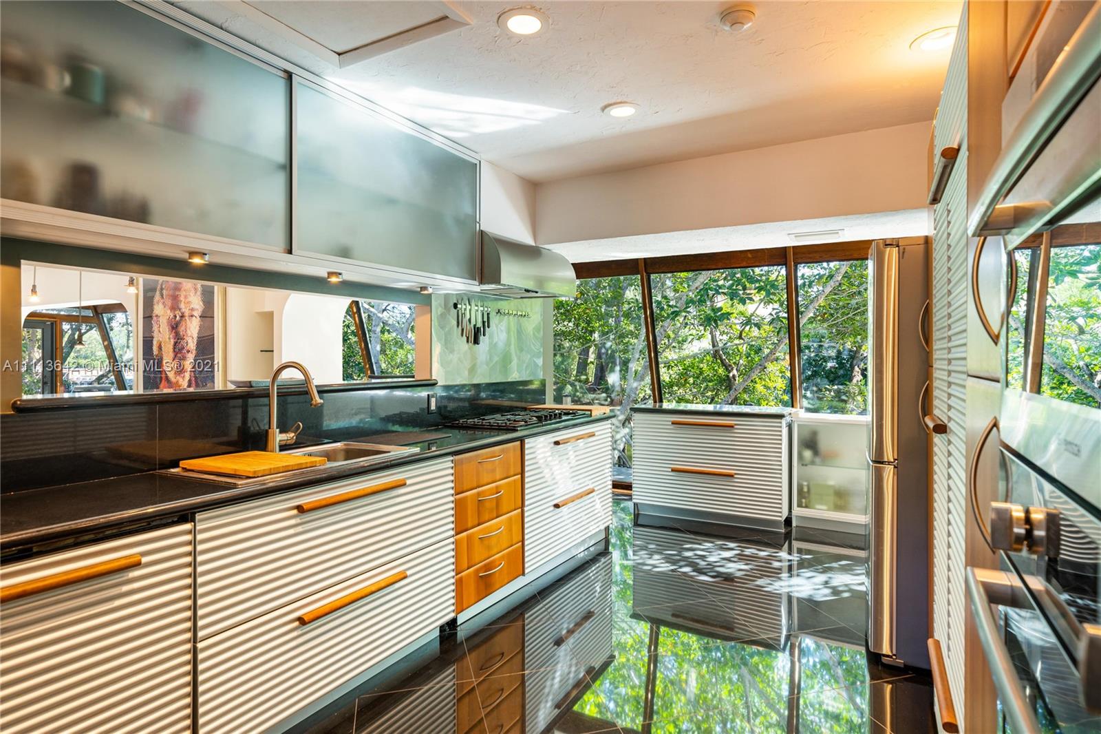 Tranquility, privacy and nature surround this rare, 1/3 acre WATERFRONT POINT LOT just off Enchanted Lake on a quiet cul-de-sac. 3BR + Den with OUTSTANDING water views from HURRICANE IMPACT WINDOWS throughout. New Metal roof. Modern kitchen & bath. 3 Gas appliances. Tesla charger. Oversized 17x34' pool and waterfront screened area with gazebo to entertain. Fruit trees. 24/7 FHP PATROL. No-mow grass. WALK to great schools, houses of worship and Aventura Mall with all its restaurants and future Train Station. Plans for 6BR/4BA avail. Distance from all neighbors and NO HOA or restrictions on pets or rentals. This Mid-century modern masterpiece is like living on a boat, but it's flood-zone exempt BY FEMA! Ocean access with a small boat. VACANT, easy to see, and ready-to-occupy or rent TODAY!