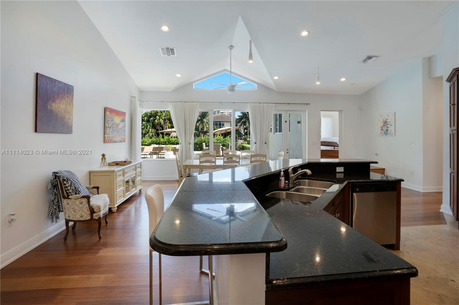 Happy to announce this WATERFRONT HOME 5BR/4BA is stunningly updated. LOCATED in GOLDEN ISLES W DIRECT OCEAN ACCESS & no fixed bridges, HEATED POOL, PRIVATE DOCK, and 85 FT WATERFRONT!! Ground-level OPEN FLOOR PLAN HOME. Vaulted high ceilings, marble & wood floors. Fabulous gourmet kitchen and stainless steel appliances, lots of counter space including bar/dining area. The OPEN CONCEPT invites you in and draws your eyes to the Dining Room-open wide and view of the pool & intercostal. Master Bedroom suite with walk-in closet which overlooks the beautiful pool and water!! Circular driveway and 2 car garage. Enjoy the ocean access & luxury living in SoFL. Private gated community. The property is rented short-term (daily/weekly) making around $200K annually. * If it's active, it's available!*