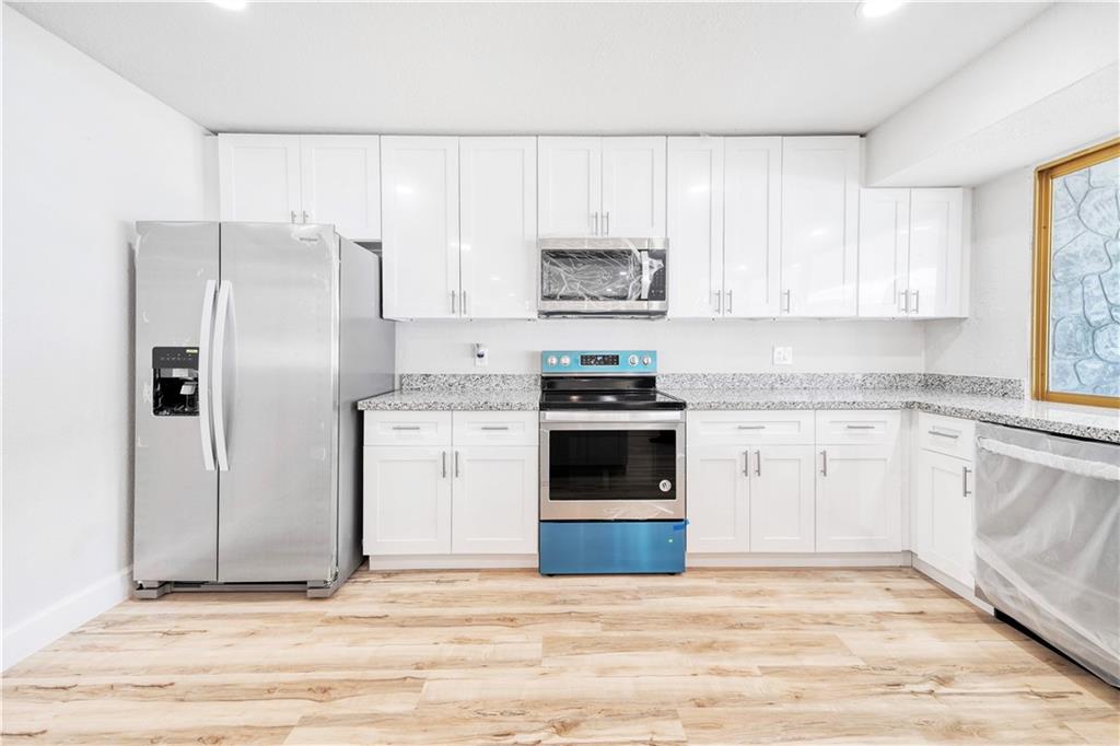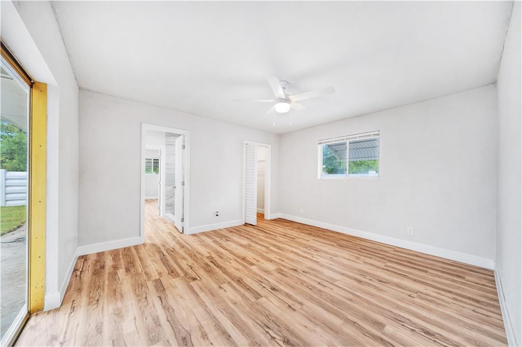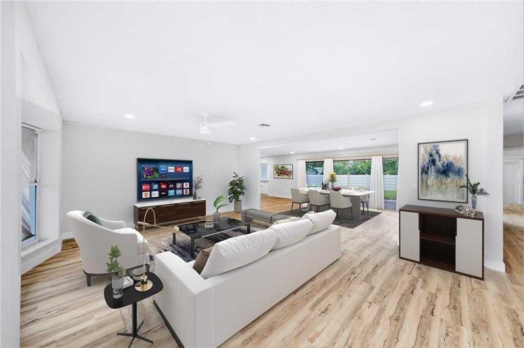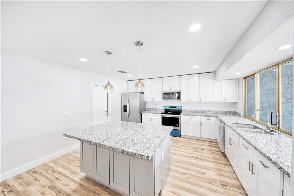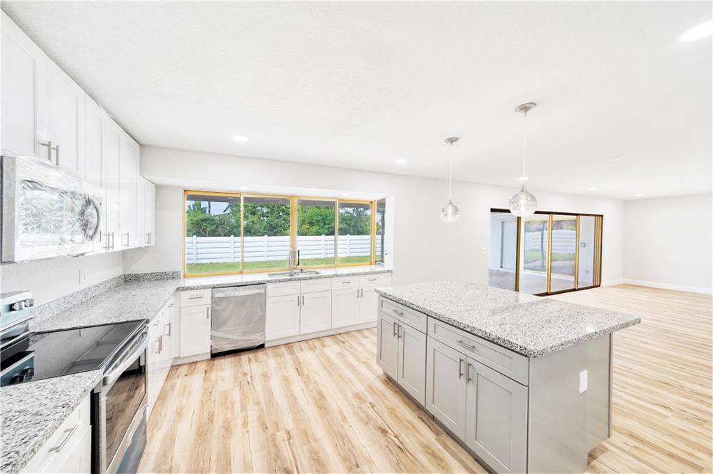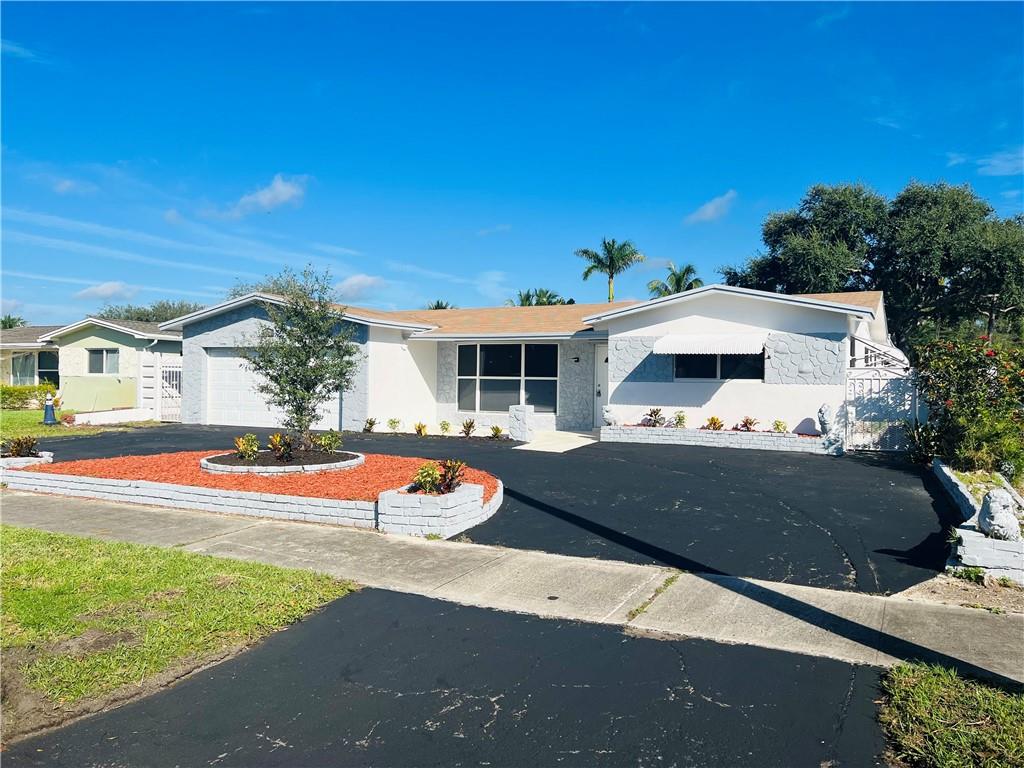 Nicely represented 4 bedroom, 2 bath, Single Family Home in the desirable Hollywood Hills Community. This home has many features including; 42in Shaker White Kitchen Cabinetry, kitchen island, brand new stainless steel appliances, granite counter-tops, Spacious Open Floor Plan design, waterproof vinyl flooring throughout, modern bathroom design, hurricane protection, 2 car garage, corner lot, large private backyard, roof is approximately 4 years old, and AC is about 6 years old and recently serviced, 4th bedroom can be a flex space (den, gym, or office), large circular driveway, and no HOA. This home is great for entertaining.