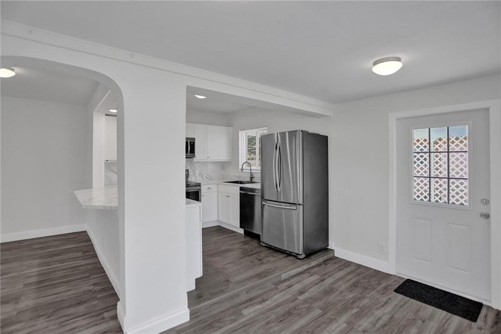 Absolutely MOVE IN READY!! Open Concept Floor Plan, Kitchen opens to a spacious Living & Dining area PLUS, a breakfast nook! Plank Tile throughout, New Modern Kitchen Cabinetry, Stainless Appliances w/new sink, disposal & faucets. IMPACT WINDOWS & DOORS, ROOF 2020, Plumbing and Electrical Upgrades, Both Baths substantially remodeled, 4 REAL BEDROOMS!! 5 Interconnected Smoke Alarm System (Airbnb Code) Outside has a New 6' fence, RING Security System w/4 Cameras & Doorbell. Freshly painted inside & out, nicely landscaped, trees trimmed. Solid Shed in the back fitted for electrical hookup. Washer & Dryer in an enclosed room in the back of the house with Impact Door. Great House for AIRBNB if desired! TENTED 2021