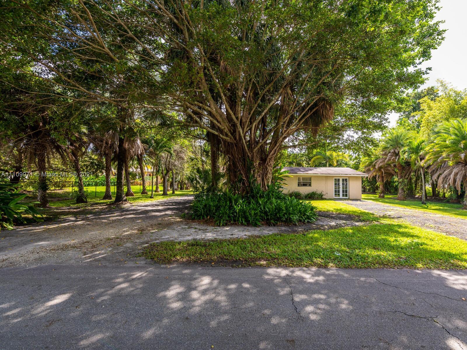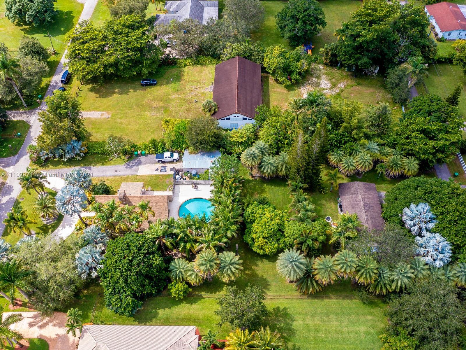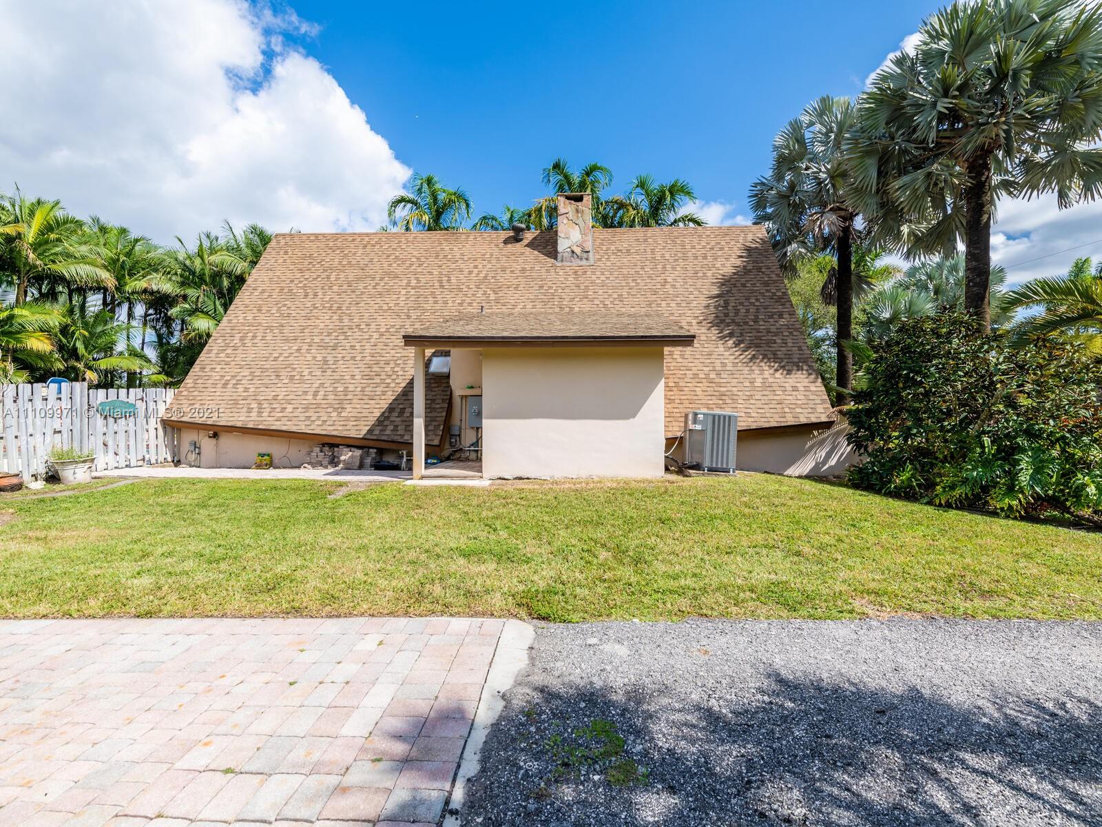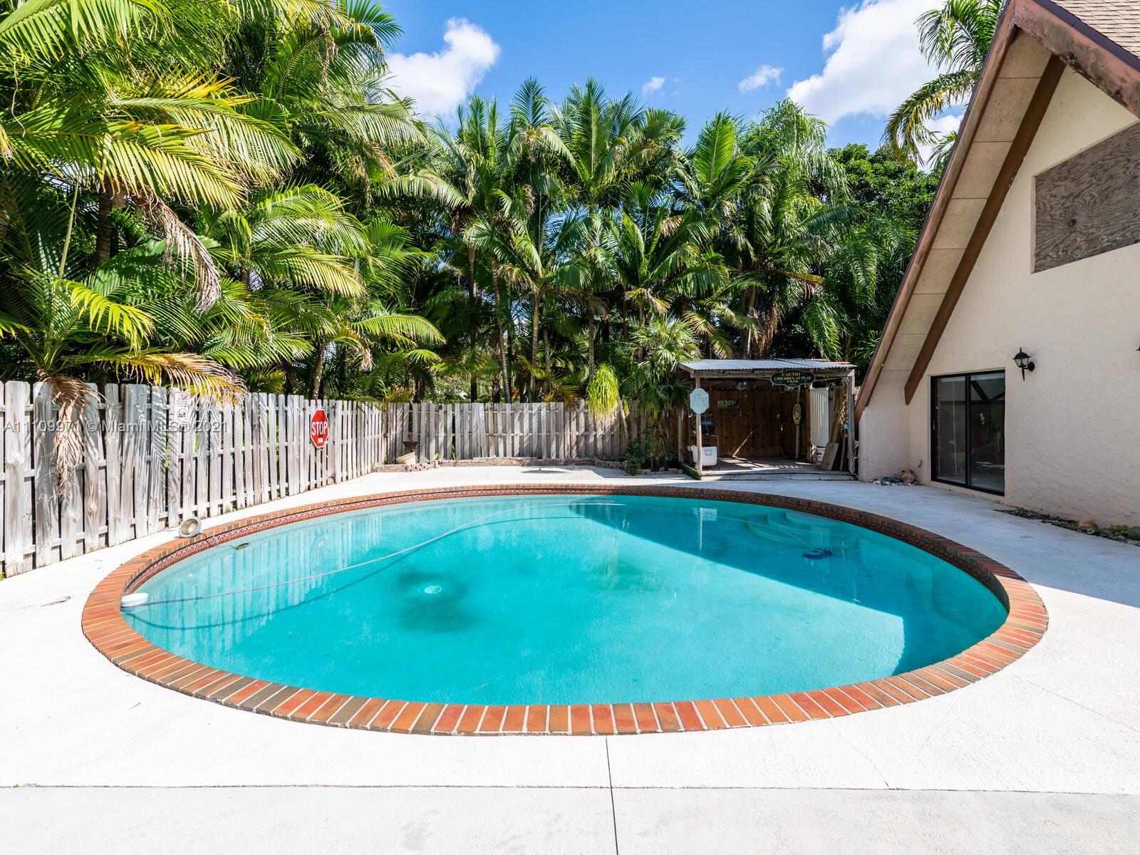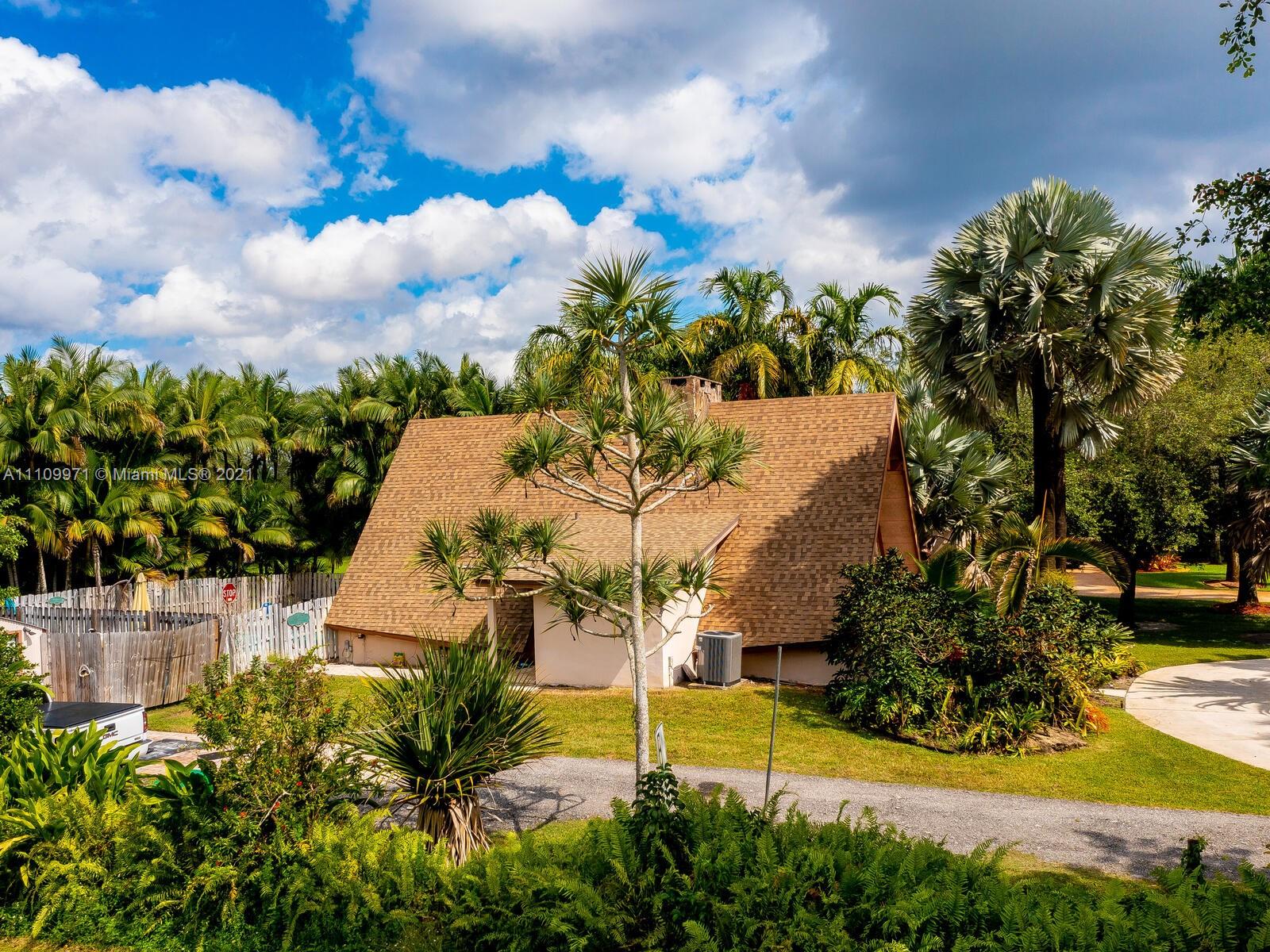 Unique A Frame 3 bedroom 2 bath pool home with guest house on just shy of an acre lot with front and rear access in a great Davie neighborhood. This home has loads of potential with great architectural angles, open kitchen, wood burning fireplace, two bedrooms downstairs that lead to the pool area, a spiral staircase to the master bedroom upstairs. Guest house in the rear of the property has a full kitchen, living space, bedroom / bath and office with private access from 23rd court. Property includes a shed with concrete floor. This property has many mature trees and plenty of room for ALL the toys!! (main house- roof 7-9 yrs., A/C 3 yrs., water heater 5 yrs. / Guest house- roof 15+ yrs., A/C 4-5 yrs., water heater 2yrs.)