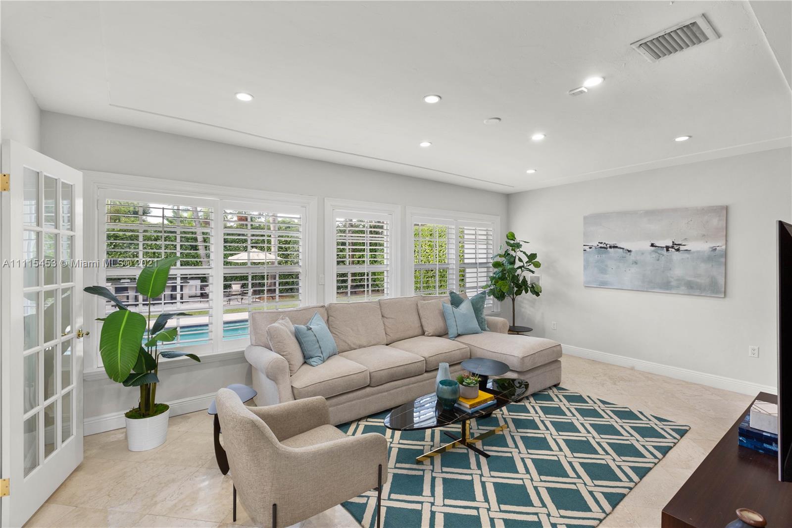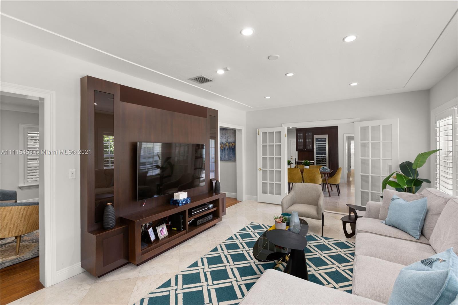 Spectacular Family home in Coral Gables Golden Triangle. Elegantly updated 4-bed 4-bath Split plan home with a large open kitchen w/french doors leading to ultra private large backyard, sprawling master suite with his and hers designer closets. Wood and marble floors, plantation shutters and impact windows and doors. Turn key with an amazing sparking pool w/grand patio area, complete with generous summer kitchen that’s perfect for entertaining. 12200 sqft lot, 2-car garage and Chicago brick circular driveway. This is the last home you’ll ever want or need!