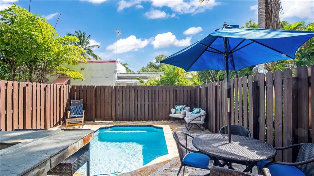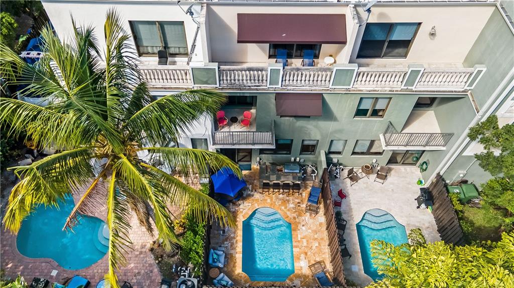 Fall in love with this 3 bedroom plus den/office, 3 1/2 bath, Victoria Park town home with it's own backyard paradise and private pool! So many fabulous features: elevator, brand new a/c system, new flooring on 2 floors, new patio & refinished pool, recently re-coated & sealed roof, new awnings & more. Every bedroom has a private bath. First floor has fabulous living area with kitchen, dining & living areas that invites indoor/outdoor living with the delightful pool area that features built in grill, refrigerator and bar. Second floor has spacious primary suite; separate den or office and laundry room with full size washer and dryer. Third level has two large bedrooms each with it's own balcony and view. This is on one of the best streets in Victoria Park. Minutes to beach & Las Olas.