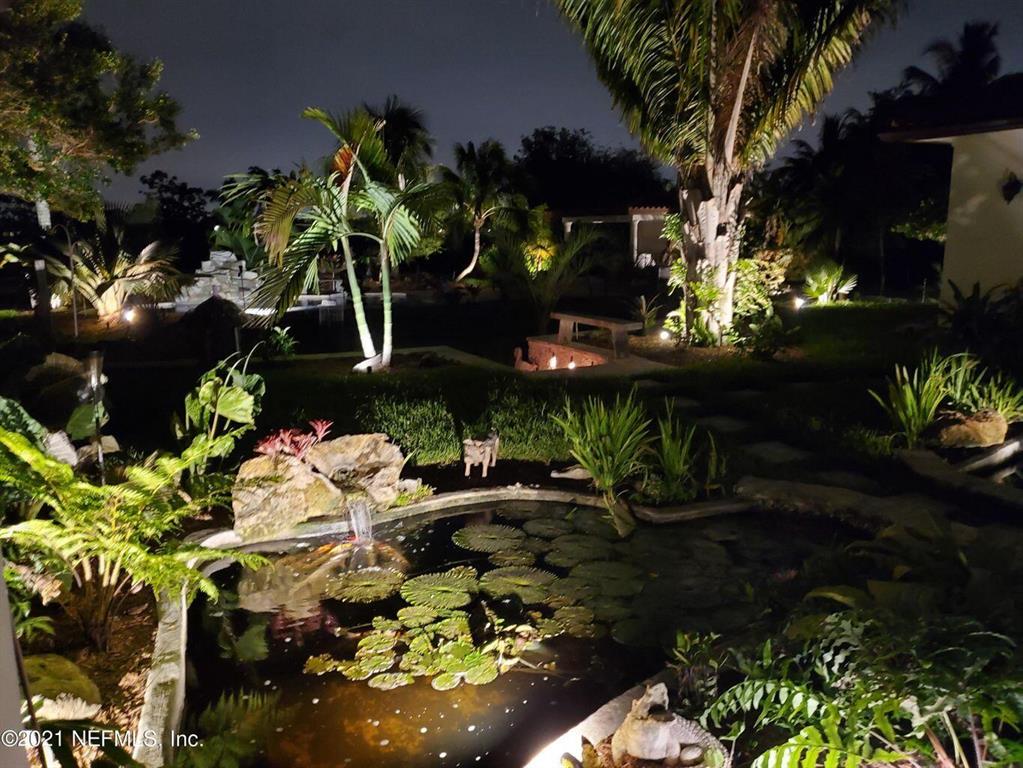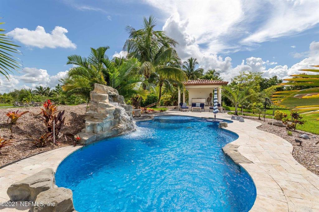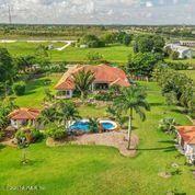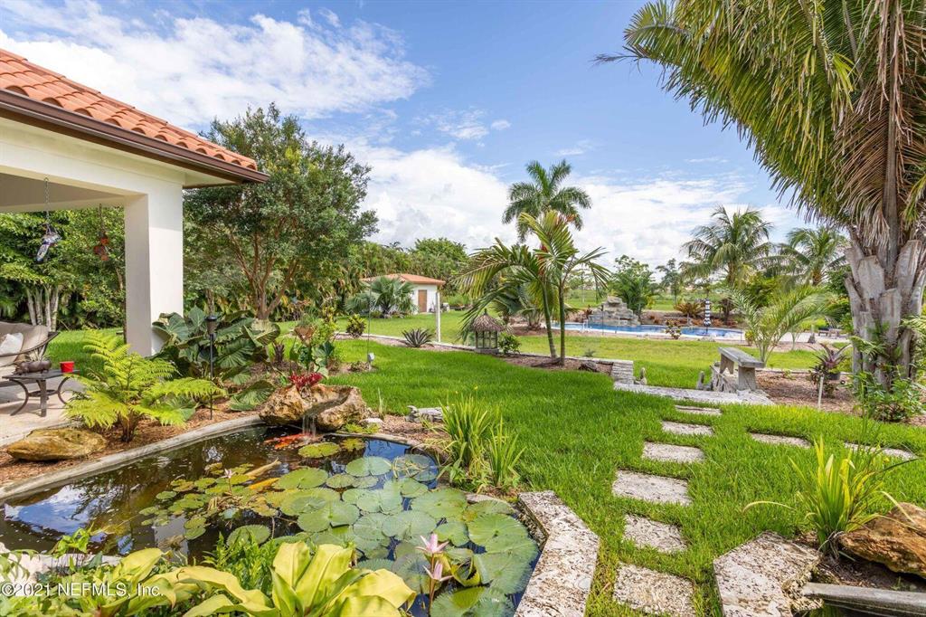 This majestic property offers a tranquil paradise on 2.3 acres. Boasting 4 bedrooms 5.5 baths. The kitchen host Thermador kitchen appliances, with a gas stove and a huge entertainers island. The master suite is exquisite with soundproof insulated walls, a jacuzzi tub, and a private coffee bar. Enter the patio to enjoy the outdoor kitchen, pizza oven, and a wood-burning fireplace. Attached guest suite w/full bathroom. The backyard oasis features a koi pond, pool with running fountain, gazebo with full bath, fire pit, and a storage bldg. The vegetation on the grounds compliments the amenities offered. Home's additional features include ''waterfront'', moisture-resistant drywall, icynene foam insulation, all doors, and windows are impact, 1000 gal gas tank, and 30 different species of trees.