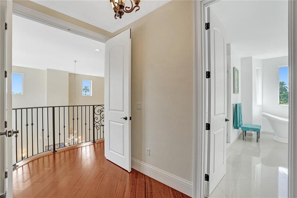 Spectacular Hollywood Lakes home built in 2016. This Mediterranean oasis features high ceilings, beautiful hardwood floors, spacious gourmet eat in Kitchen with granite counters, Breakfast Nook that is adjacent to the Family Room. The Living Room offers a cozy wood burning fireplace and plenty of room for entertaining. And for those intimate dinners, there is a formal dining room. Downstairs has two guest bedrooms and a full bathroom. There is also a half bath downstairs. Upstairs there is an amazing Master Suite that has two walk in closets and a balcony overlooking the pool and backyard. The Master Bath is like going to the spa! Double sinks, gorgeous bathtub, and huge shower. This property is on a double lot, and has never been offered for sale before. This is a fabulous home.