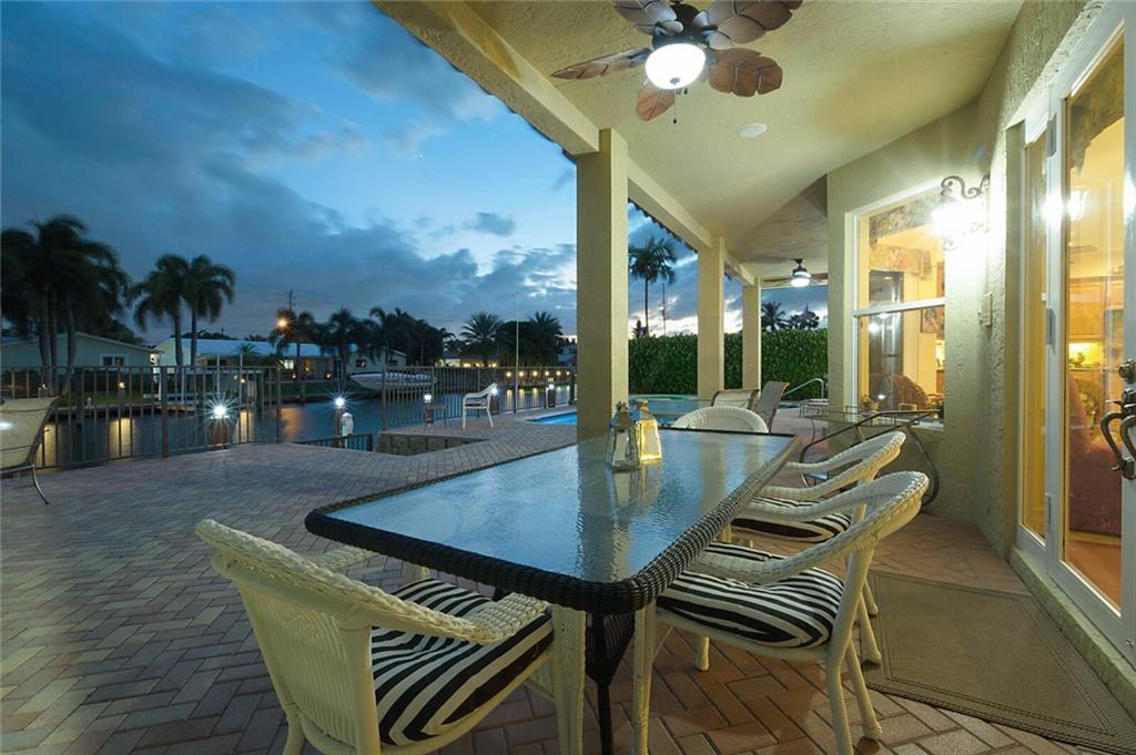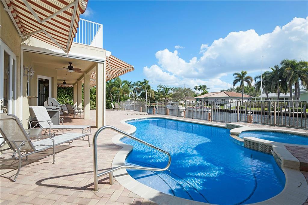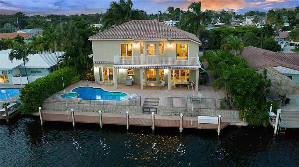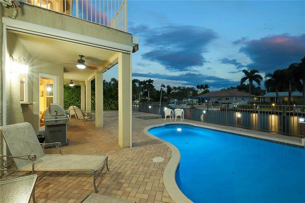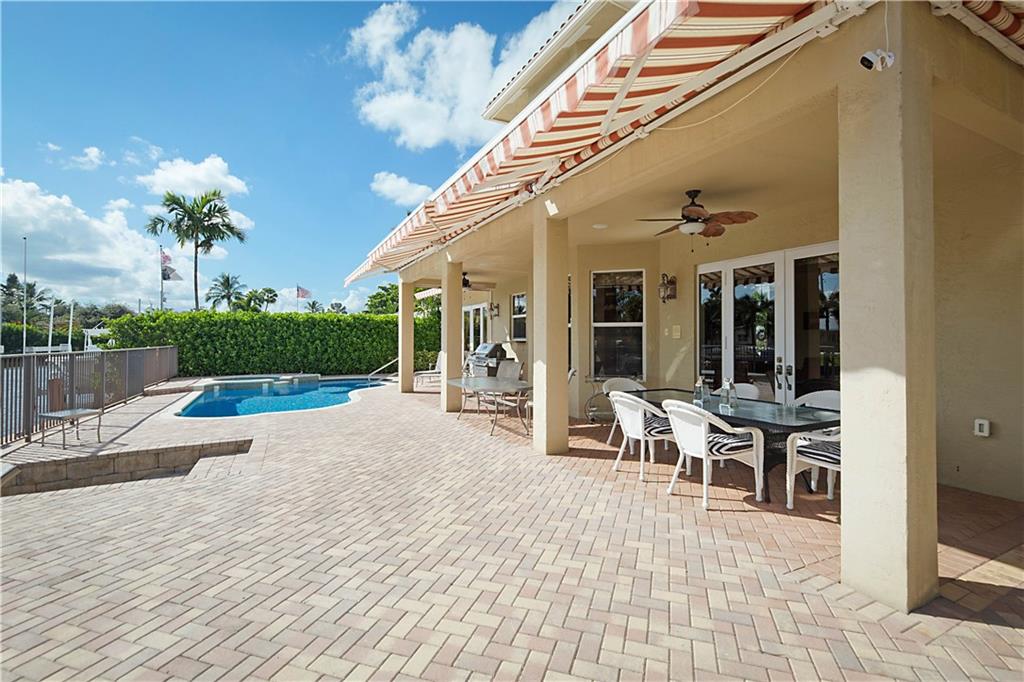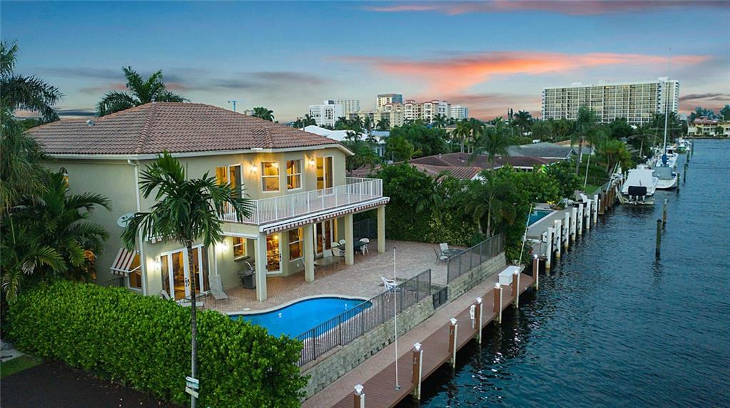 This delightful 2 story, 5 bed, 4 bath pool home was custom built in 2006, and is just off the Intracoastal Waterway in Pompano Beach. The home features high ceilings on the 1st and 2nd floors, elevator, as well as full concrete construction, full home generator with automatic transfer switch. The very large back patio has beautiful South facing wide water views. Perfect for entertaining - with 5 retractile awnings for additional shade, tranquil pool with new heater, Aqua Link control system and treks dock with LED lighting & 50-amp dock power. The central kitchen offers ample room for all kinds of entertaining and plenty of additional storage in the large pantry. Re-circulating hot water, central vac and home intercom with music are a just a few other features that make for easy living!