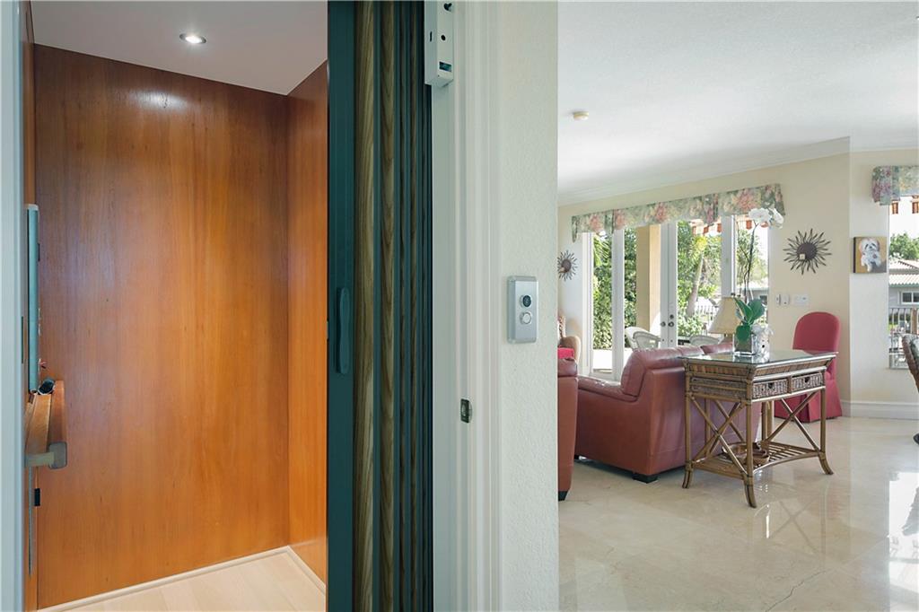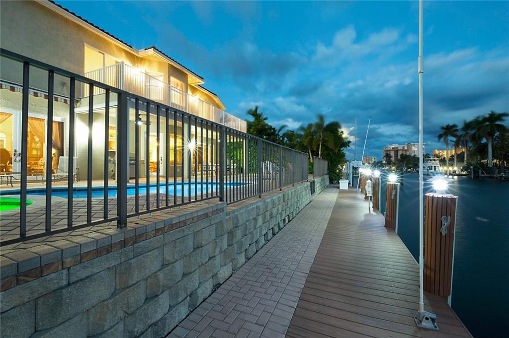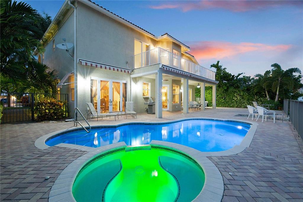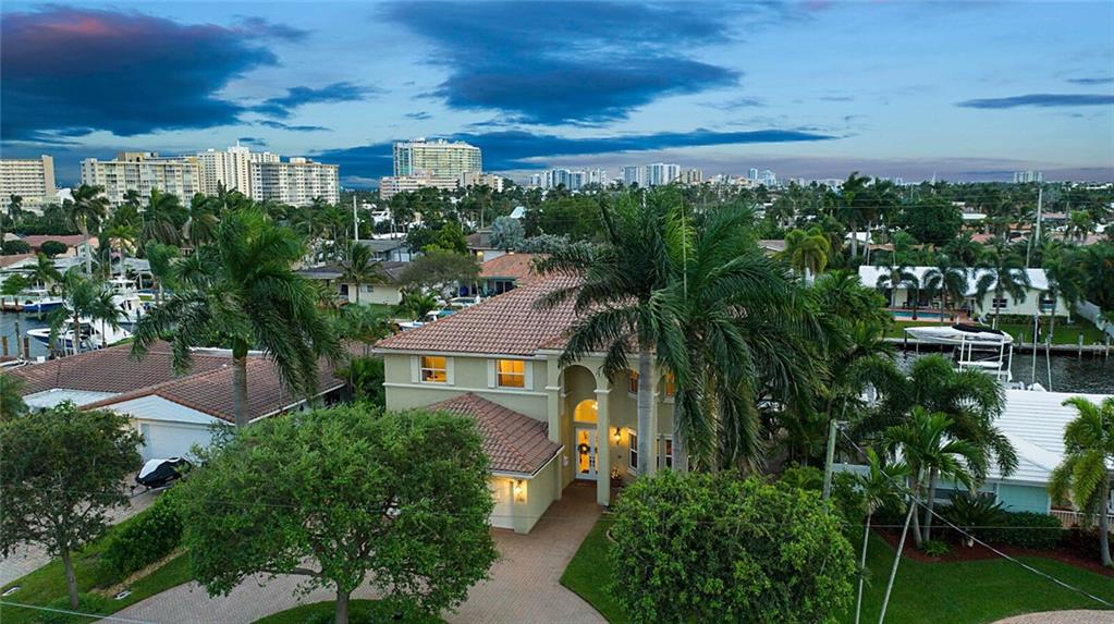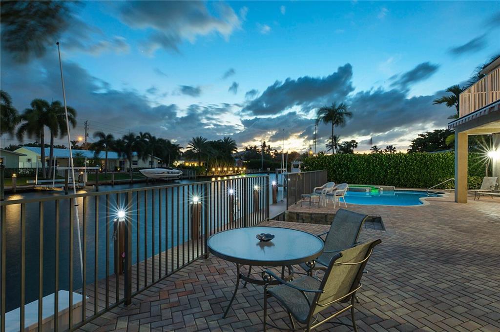 This delightful 2 story, 5 bed, 4 bath pool home was custom built in 2006, and is just off the Intracoastal Waterway in Pompano Beach. The home features high ceilings on the 1st and 2nd floors, elevator, as well as full concrete construction, full home generator with automatic transfer switch. The very large back patio has beautiful South facing wide water views. Perfect for entertaining - with 5 retractile awnings for additional shade, tranquil pool with new heater, Aqua Link control system and treks dock with LED lighting & 50-amp dock power. The central kitchen offers ample room for all kinds of entertaining and plenty of additional storage in the large pantry. Re-circulating hot water, central vac and home intercom with music are a just a few other features that make for easy living!