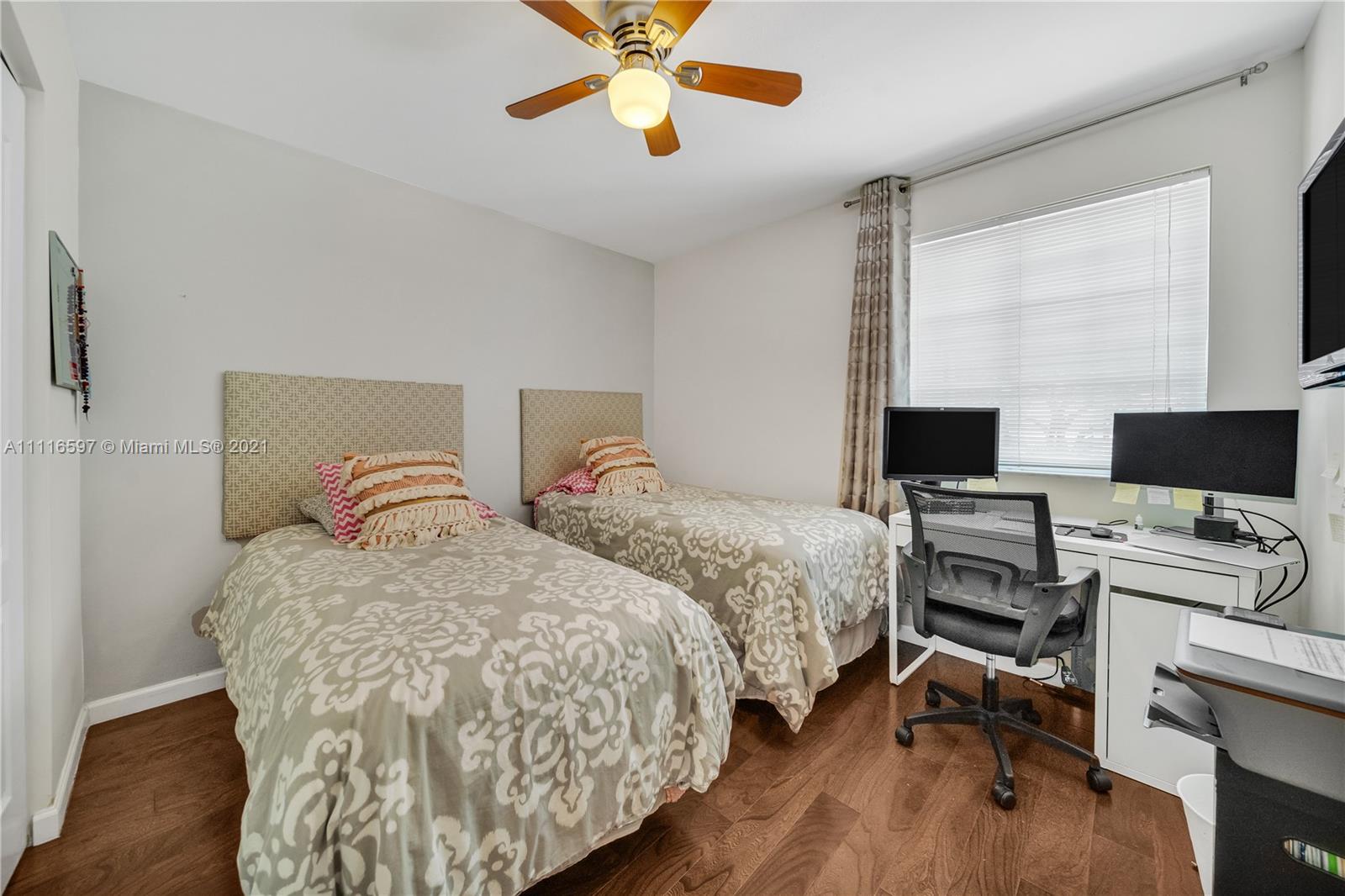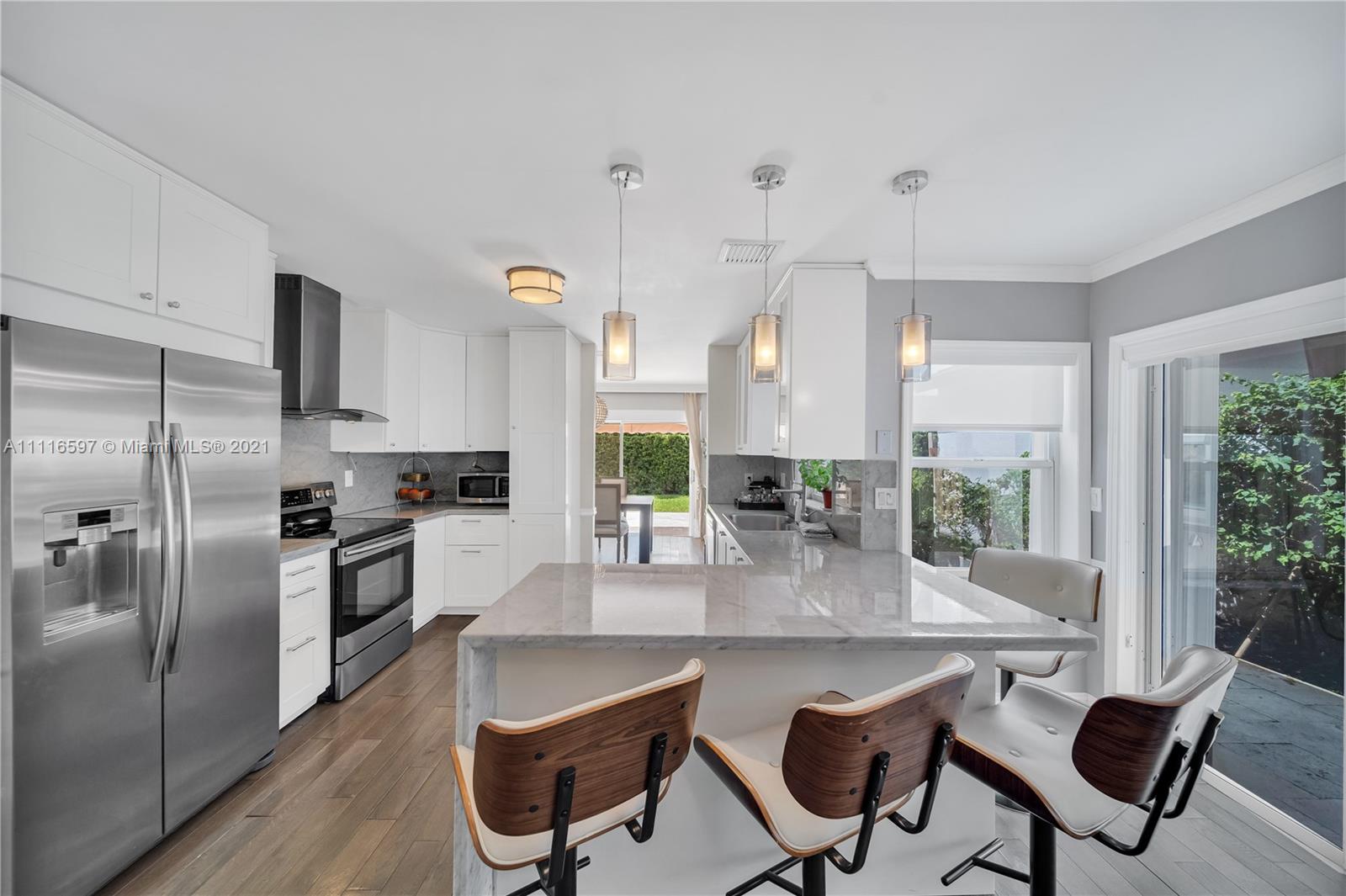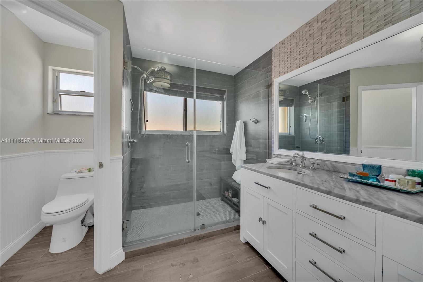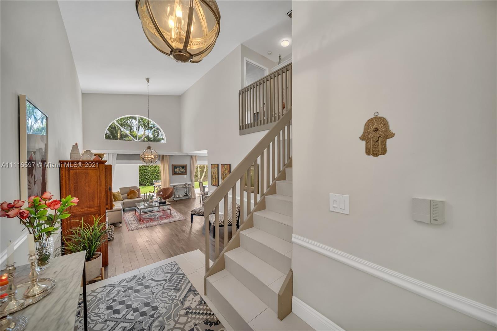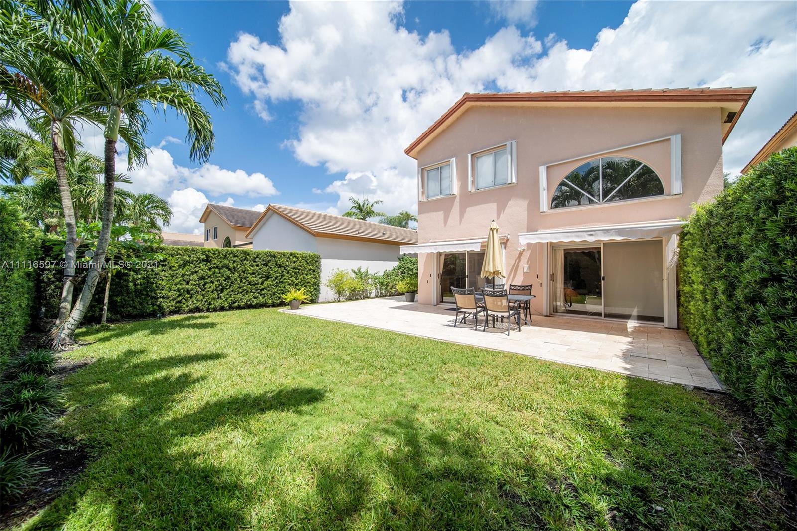 Welcome to your new remodel home this Single Family home offers a Kitchen with all stainless steel appliances and temper glass range hood, elegant marble counter tops all modern concept with natural wood floors and Spanish tile design at foyer for a fun and elegant statement . All 3 bathrooms have been remodel. Spacious walking closet with sitting area at master bedroom wall textures and popcorn have been removed from walls and ceiling and crown molding added to add a special elegant look . For your convenience a full bedroom on 1s floor. French designed travertine tiles and manual awnings in the Patio, all windows have accordion shutters. Space to built a pool.Costa Verde offer a family oriented neighborhood guard gated entrance 24 hrs, with community pool and playground for kids.