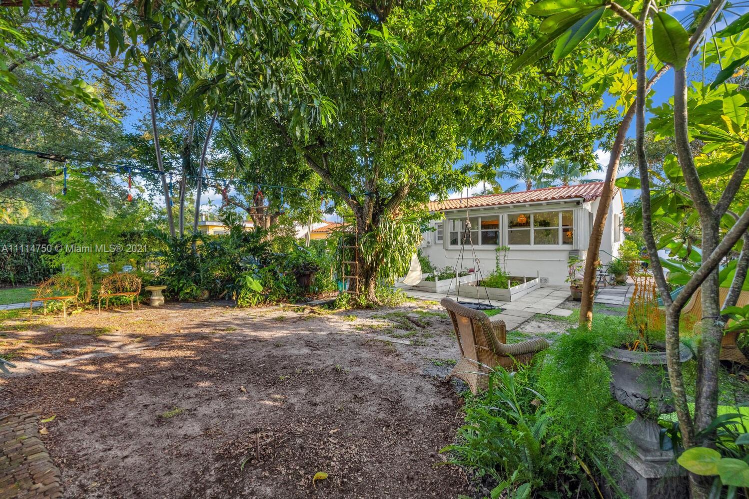What an opportunity to call this CLASSIC 1940’s CHARMER…”HOME”!Tucked away on a quiet Miami Shores cul-de-sac!Gleaming vaulted beamed ceilings in a ‘sunny sun room’ filled --bathed in natural light,spacious backyard w/plenty of room to roam & play!Current Owner has loved living here,appreciating the certified butterfly habitat w/an abundance fruit trees &edible plants which are native Florida plants...mangos,avocados,papaya,mulberries,cashew & some medicinal.Children in the neighborhood appreciate the quiet cul-de-sac & minutes from Miami Shores recreational center & community pool at the Country Club.Vws of the garden from all rooms,light,bright & happy! NOTE-Garage under central A/C adding approx 200 sq.ft of additional space. Showings postponed until 11/29/2021