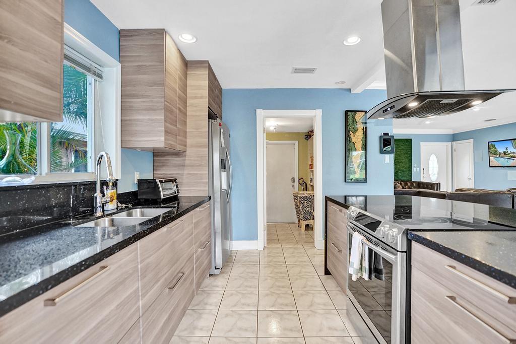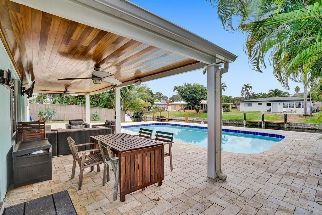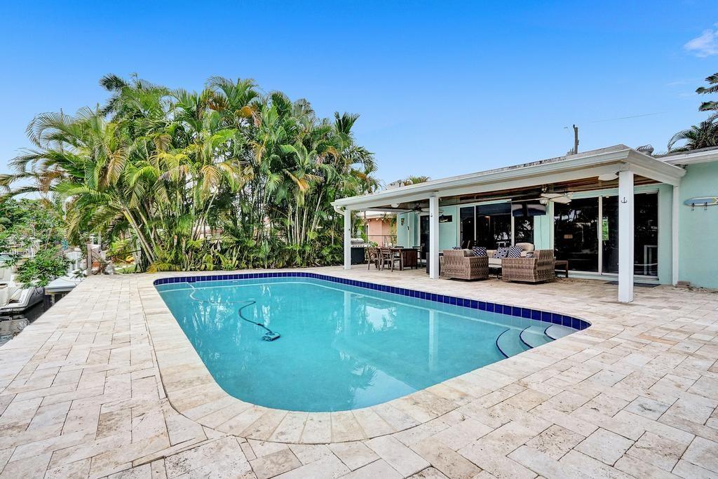 Absolutely stunning waterfront pool home in Flamingo Park! This property offers 70' of waterfront ocean access with no fixed bridges. The seawall and dock were redone in 2016. Enjoy tropical living at its finest with incredible indoor/outdoor living. The very private and fully fenced back yard boasts a large travertine deck, heated pool, covered sitting & dining area with incredible canal views. The interior features an updated open kitchen with s.s. appliances, contemporary laminate lacquer cabinetry & waterfall island top, neutral tile flooring throughout, high-end full home Marantz Sound System, smart home LED lighting, updated bathrooms, 2016 A/C and much more! Lots of large windows throughout flood the interior with natural light. This is the ideal home for the boating enthusiast!