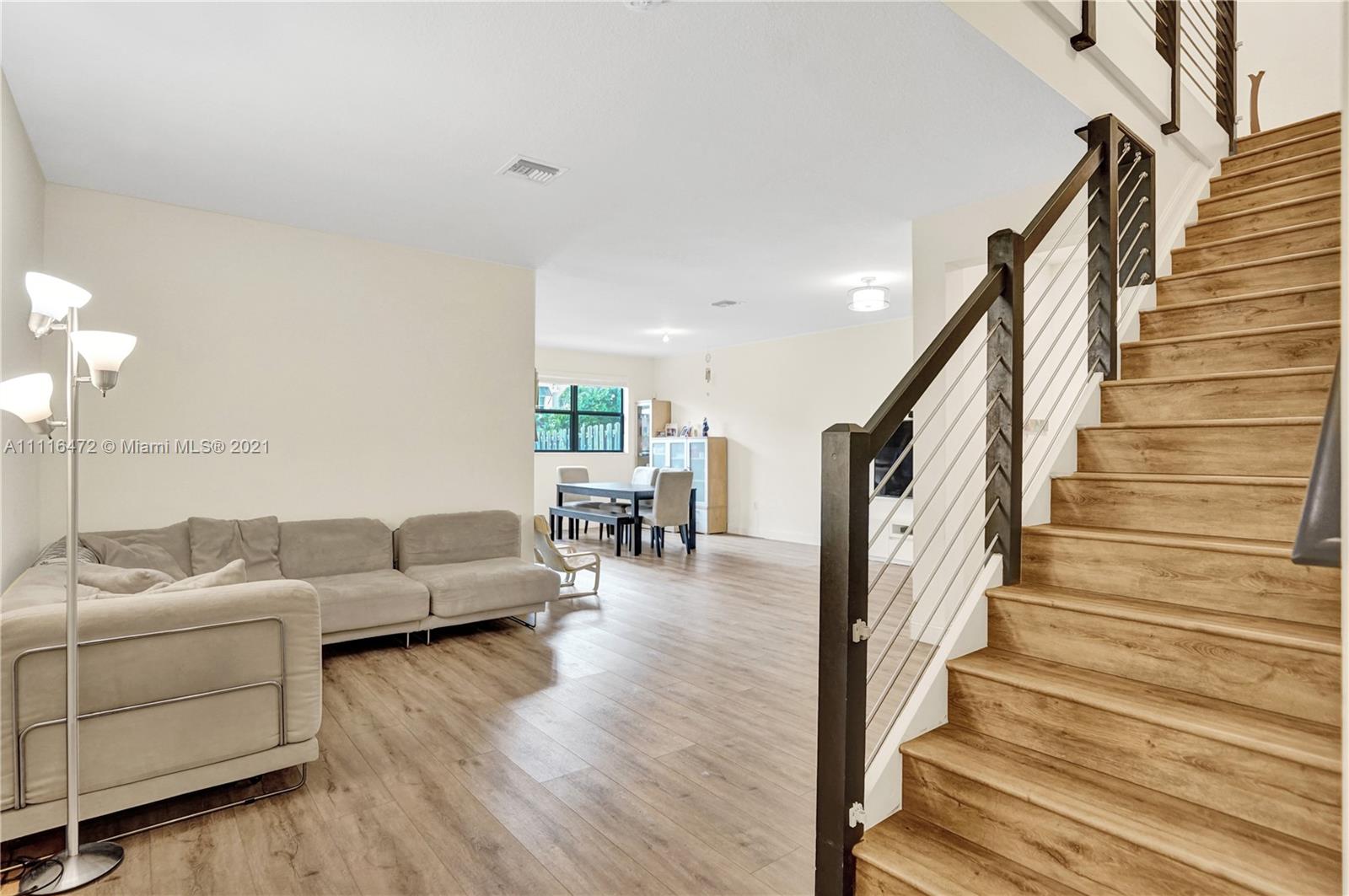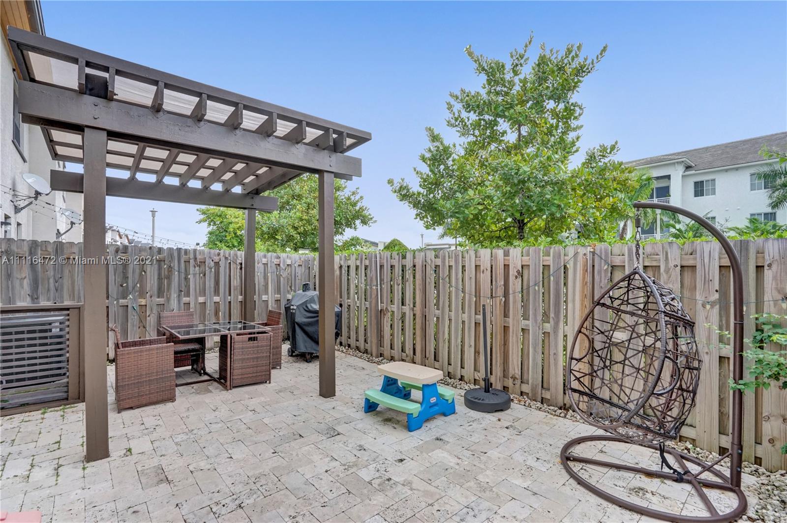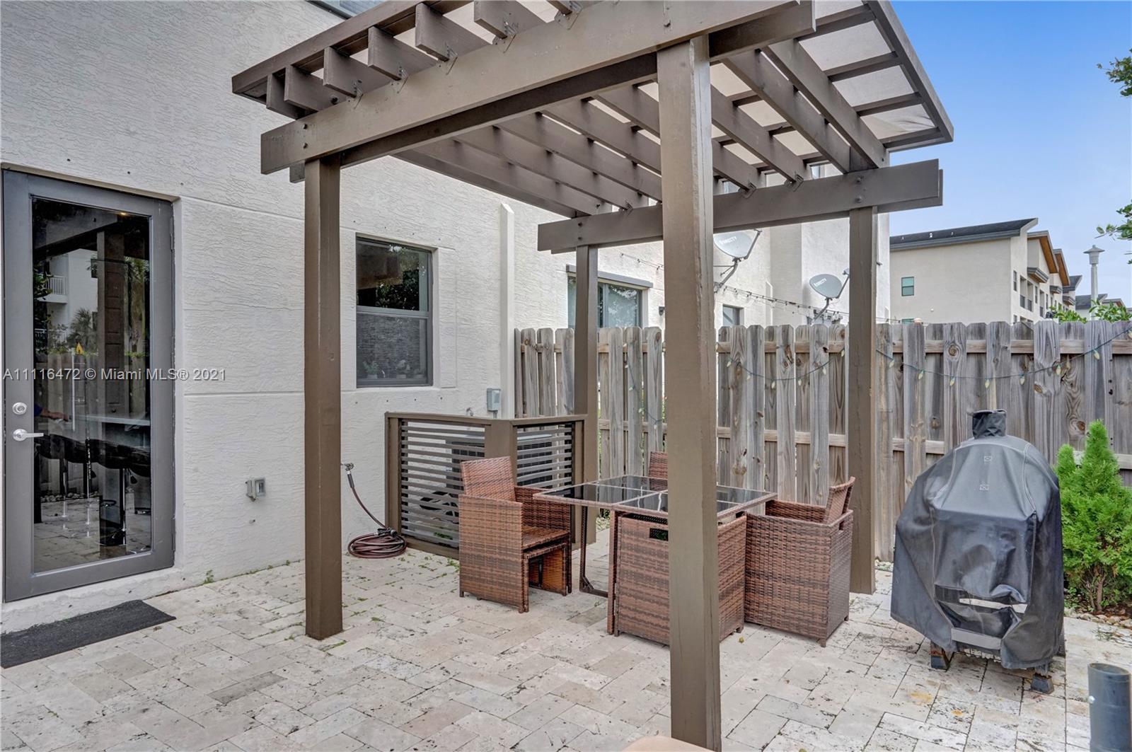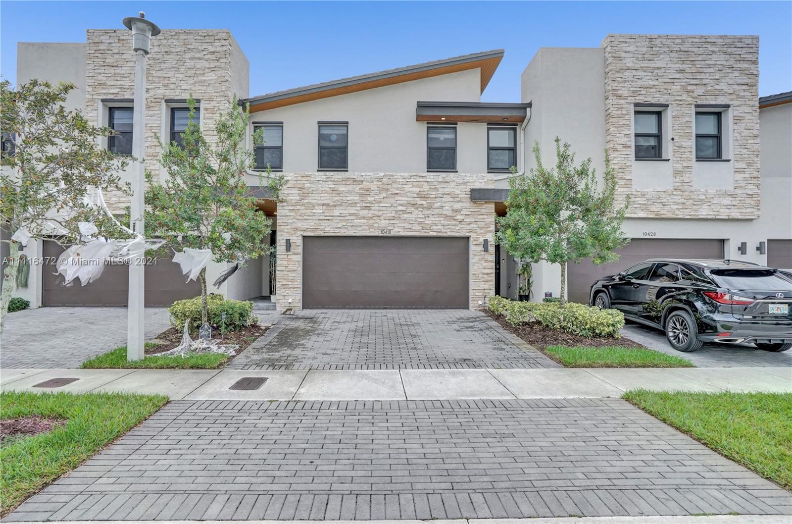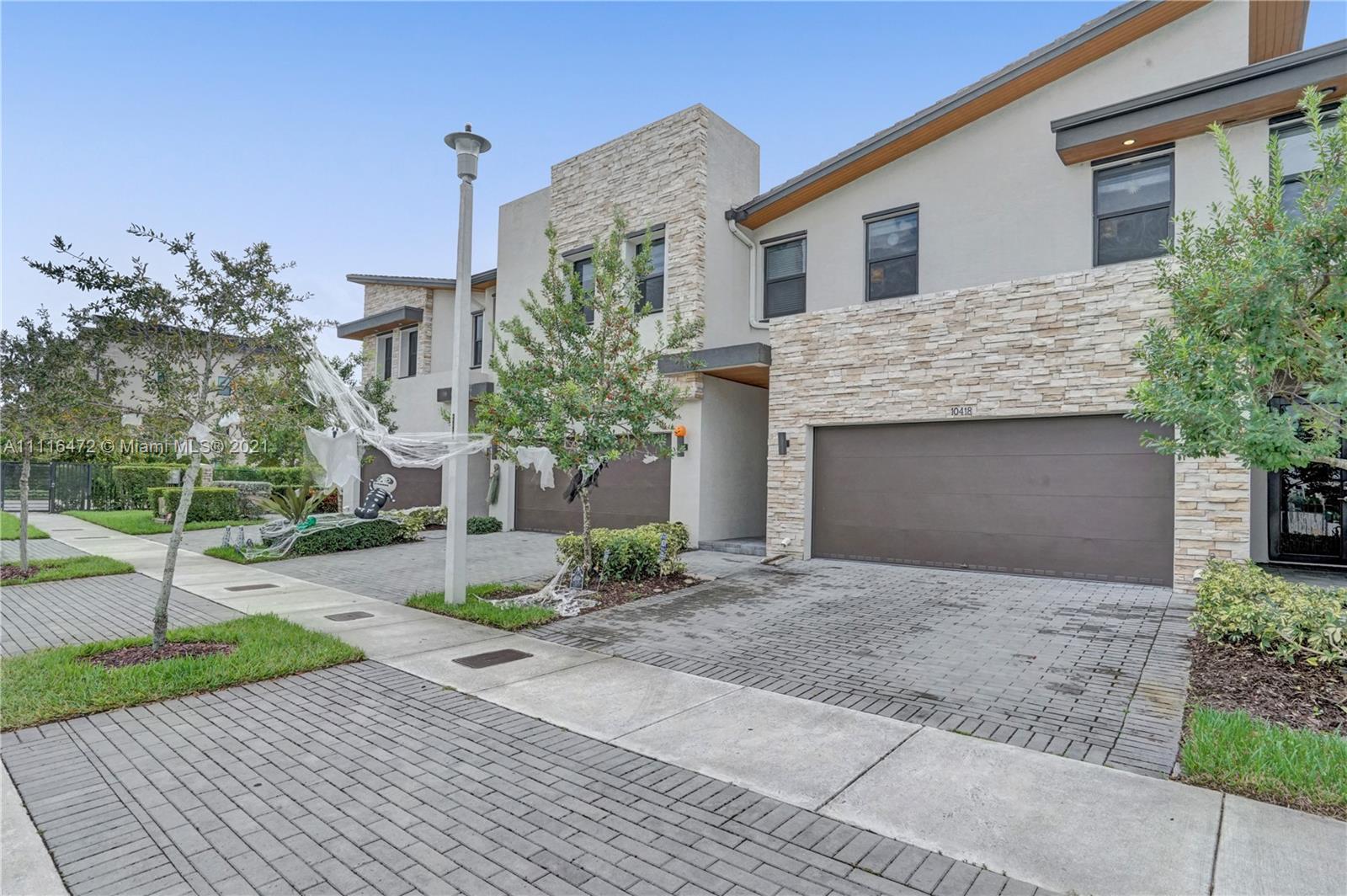 Sleek Modern Townhome in Doral! An art lover's delight featuring high ceilings, lots of upgrades, pergola on patio with tumbled marble. Great floor plan with living spaces open on first level and bedrooms on second floor where laundry is located. Abundant closet space throughout. Kitchen with quartz countertop and counter for eating at the counter. Stylish finishes. Impact resistant doors and windows complete with shutters. Amazing clubhouse with 2 pools, tennis, basketball, fitness center, dining room for events & a waterpark for kids. Conveniently located near shopping, restaurants & charter schools.