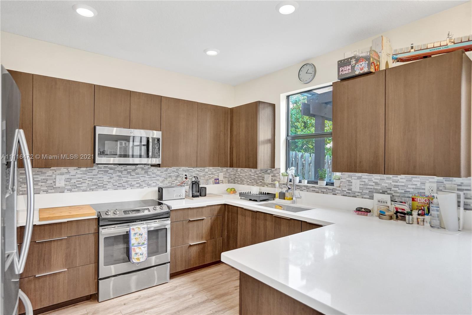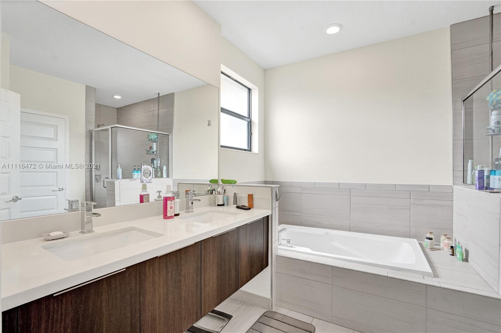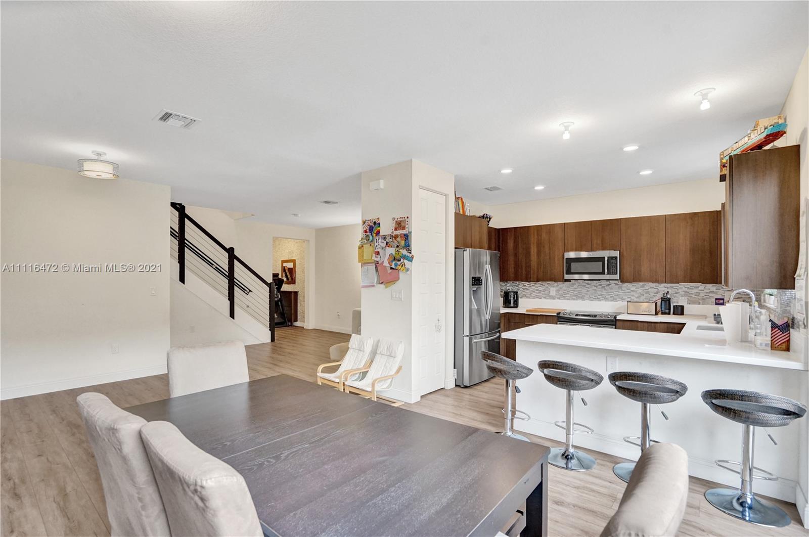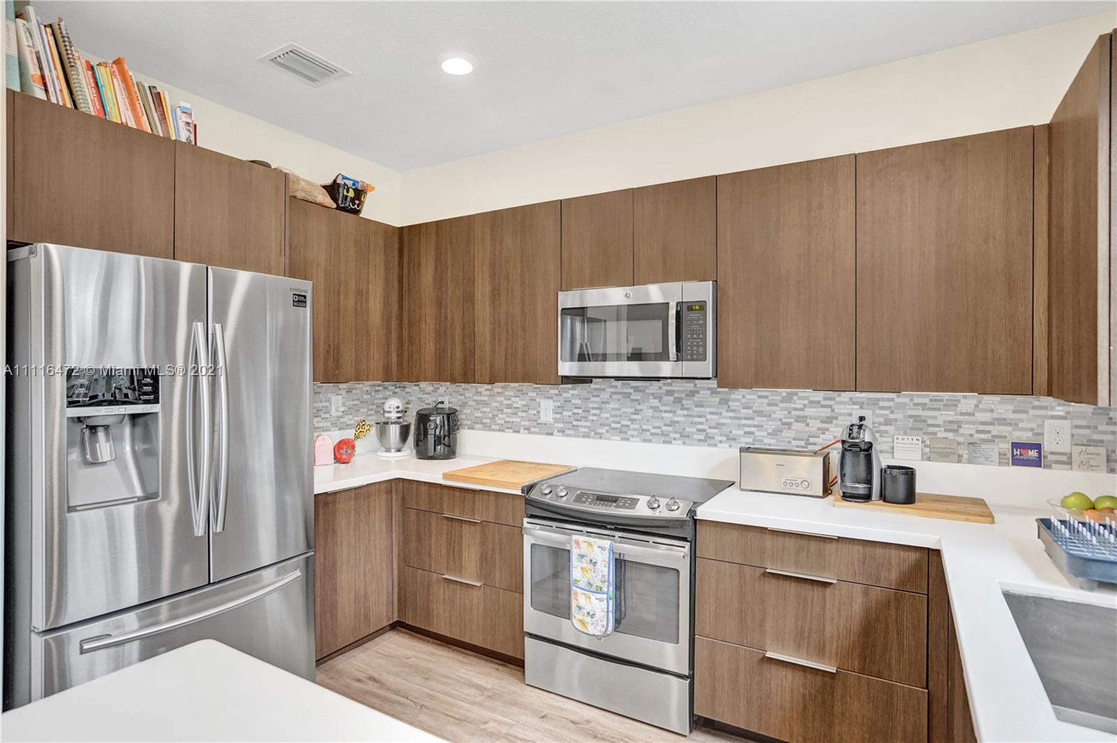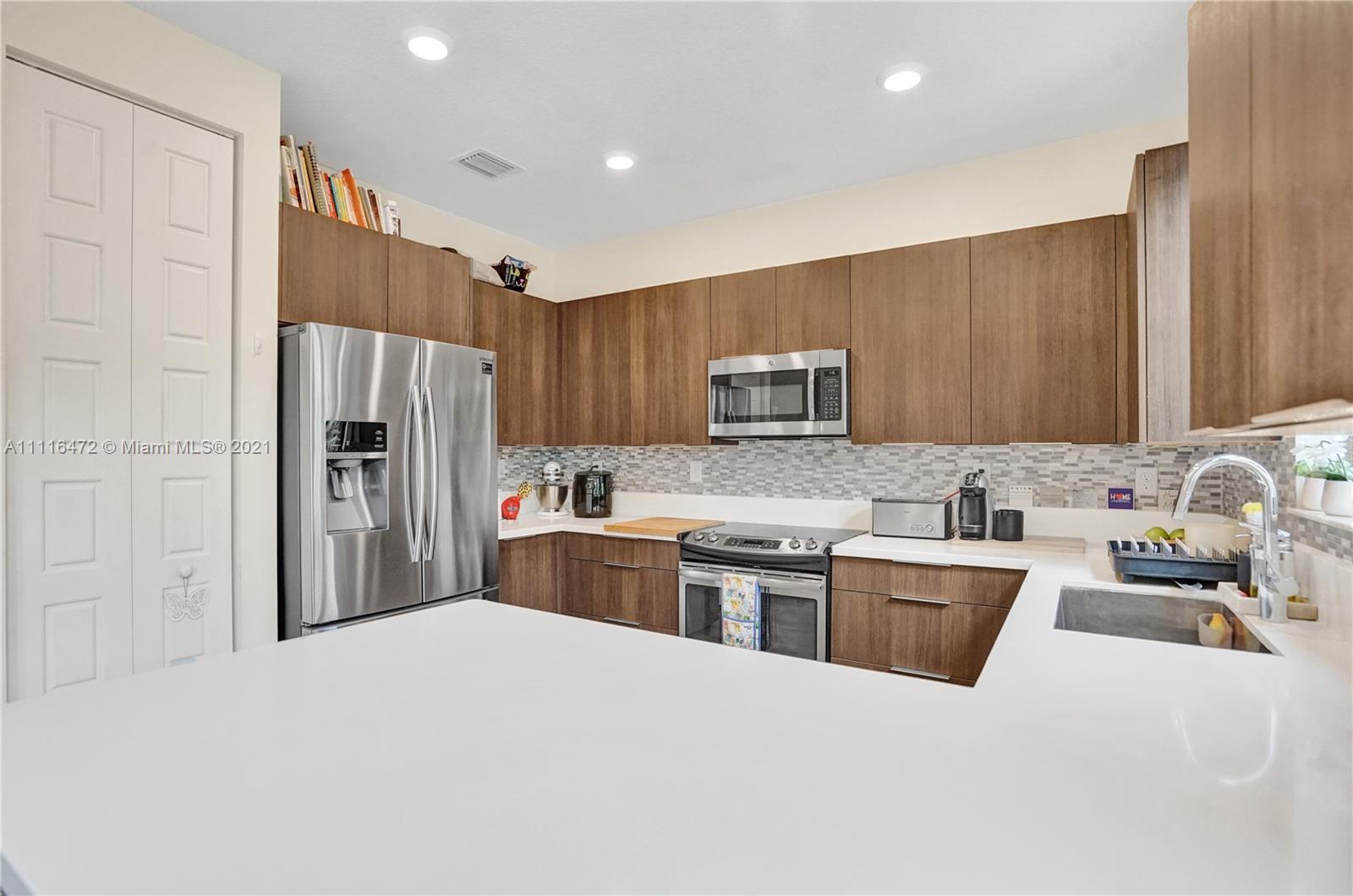 Sleek Modern Townhome in Doral! An art lover's delight featuring high ceilings, lots of upgrades, pergola on patio with tumbled marble. Great floor plan with living spaces open on first level and bedrooms on second floor where laundry is located. Abundant closet space throughout. Kitchen with quartz countertop and counter for eating at the counter. Stylish finishes. Impact resistant doors and windows complete with shutters. Amazing clubhouse with 2 pools, tennis, basketball, fitness center, dining room for events & a waterpark for kids. Conveniently located near shopping, restaurants & charter schools.