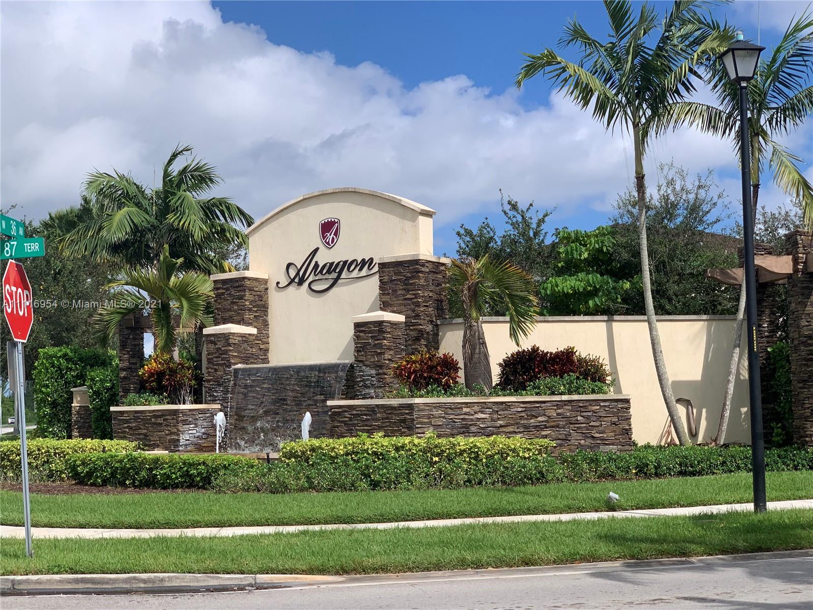 GREAT OPPORTUNITY TO OWN IN THE HIGHLY DESIRABLE GUARD GATED COMMUNITY OF ARAGON.SPERTACULAR 2 BEDROOMS 2.5 BATH TOWNHOUSE BUILD IN 2015 . This home features an upgraded kitchen with stainless steel appliances Quartz counter tops. Two large masters bedrooms with walk-in closet.Two assigned parking spaces with plenty of guest parking.Washer/Dryer on the second floor. Low association fees include amenities such as a pool with beautiful views of the lake, gym, rental party room, guard gated entry and a tot lot. This one will go Fast!!