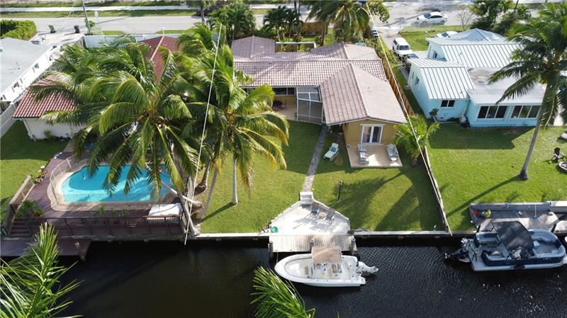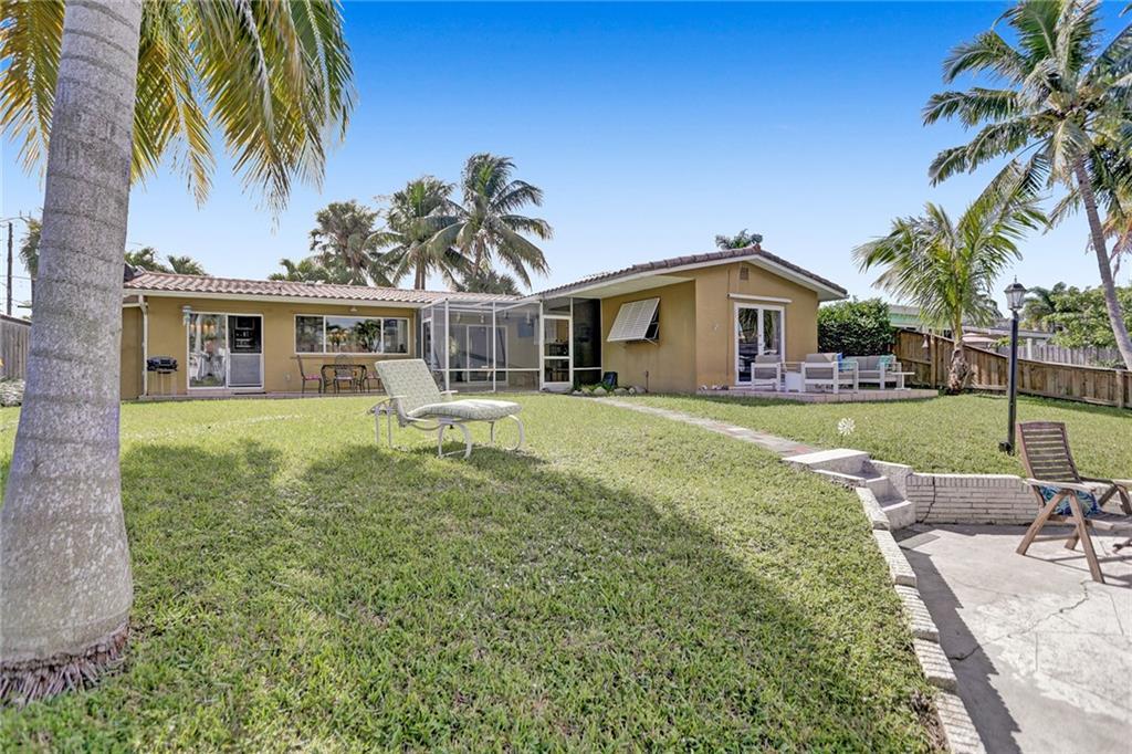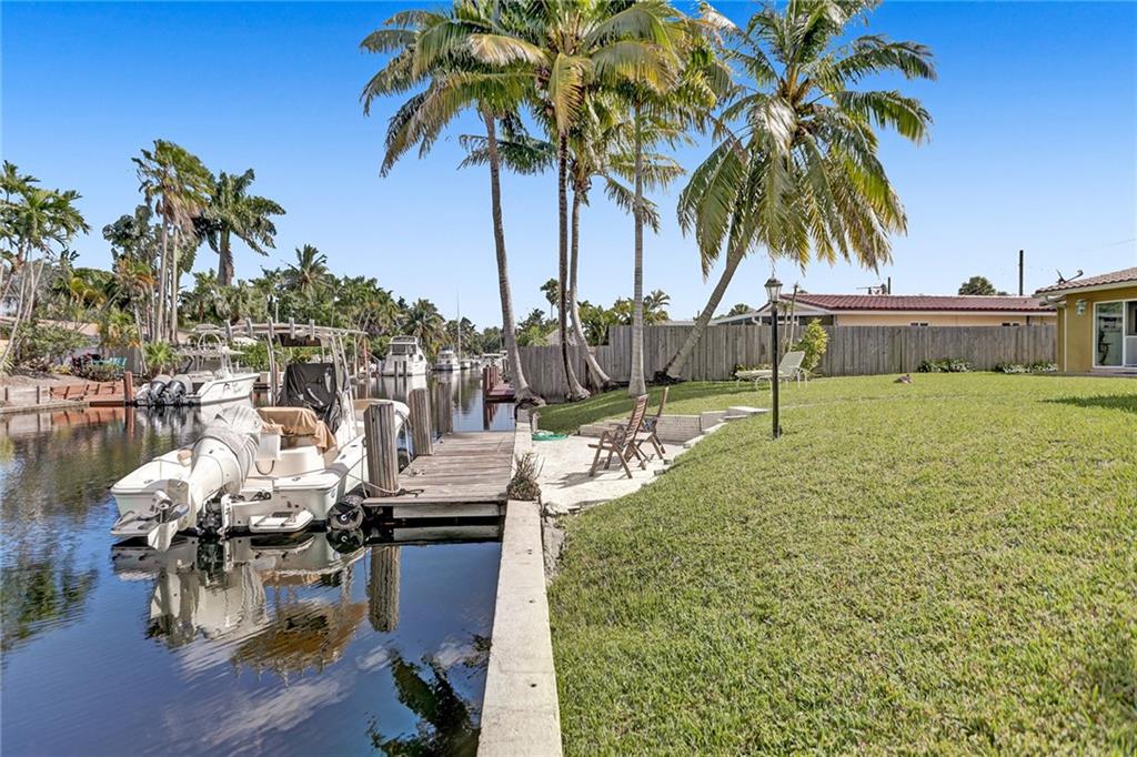 Step Inside the Gate to a Tropical Hideaway with Old Florida Charm. Current configuration is 4 bed 3 bath home in Ft Lauderdale. 65 ft of waterfront, no fixed bridges. Large renovated kitchen eat in kitchen, with several windows facing the backyard and water views. Terrazzo Flooring, Split bedroom Plan. Big Bedrooms with a lot of closet space & storage. French Doors off the Primary Bedroom lead to patio and full water views. The large back yard has plenty of room for a pool. Mature Palms in the front and back yard provide an Island feel. Enjoy your Tranquil Waterfront Views from Inside and Outside this home. Conveniently located minutes to Downtown, Las Olas and the Beach.
