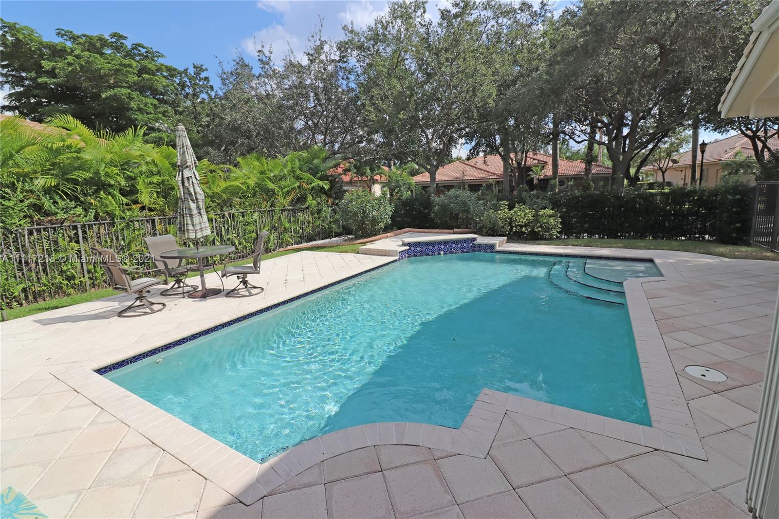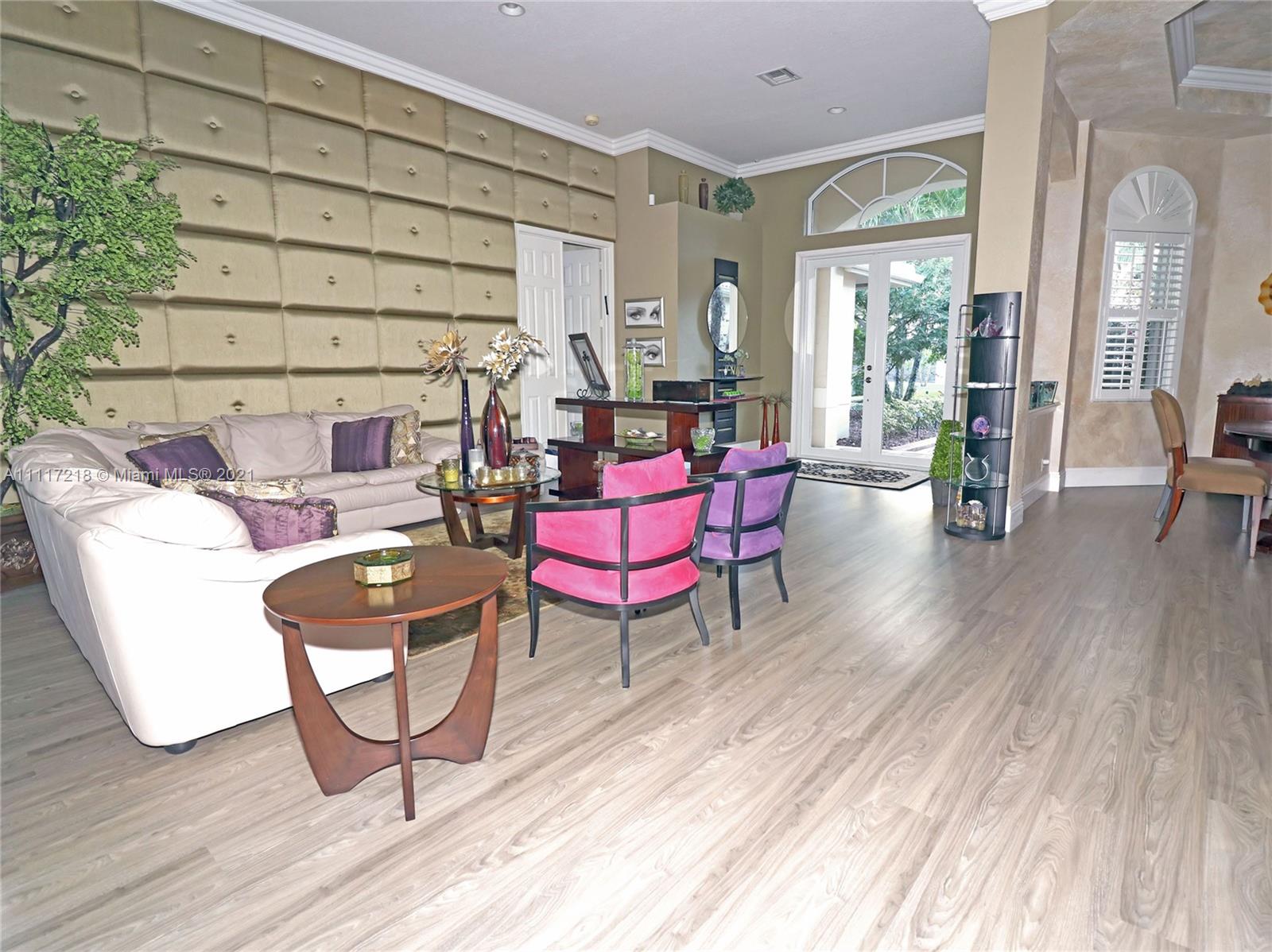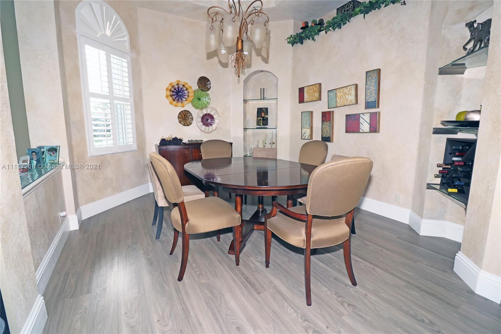 Four bed-3 bath, NEW impact Doors+Windows+Hurricane shutters. Remodeled: kitchen, new appliances (KitchenAid-2018), 3 remodeled bathrooms, new luxury vinyl floor, Pergo in 3 bedrooms, engineered wood in the master bedroom, crown molding. Upgraded baseboards. Beautiful faux painting in the dining room, master bedroom and bathroom. Plantation shutters in living room, dining room. Upholstered living room wall. Ethan Allen window treatments in the tv room. Custom closets in bedrooms and pantry. Remodeled Laundry Room. Upgraded ADT alarm system. Tiled floor in 3-car garage with storage cabinets. New (2020) High Efficiency Air Conditioner, New (2018) Washer and Dryer. New Rachio electronic smart sprinkler. Pool, landscape lighting. Walking distance to ‘A RATED’ MIDDLE and HIGH SCHOOL.