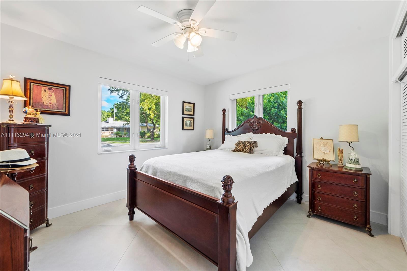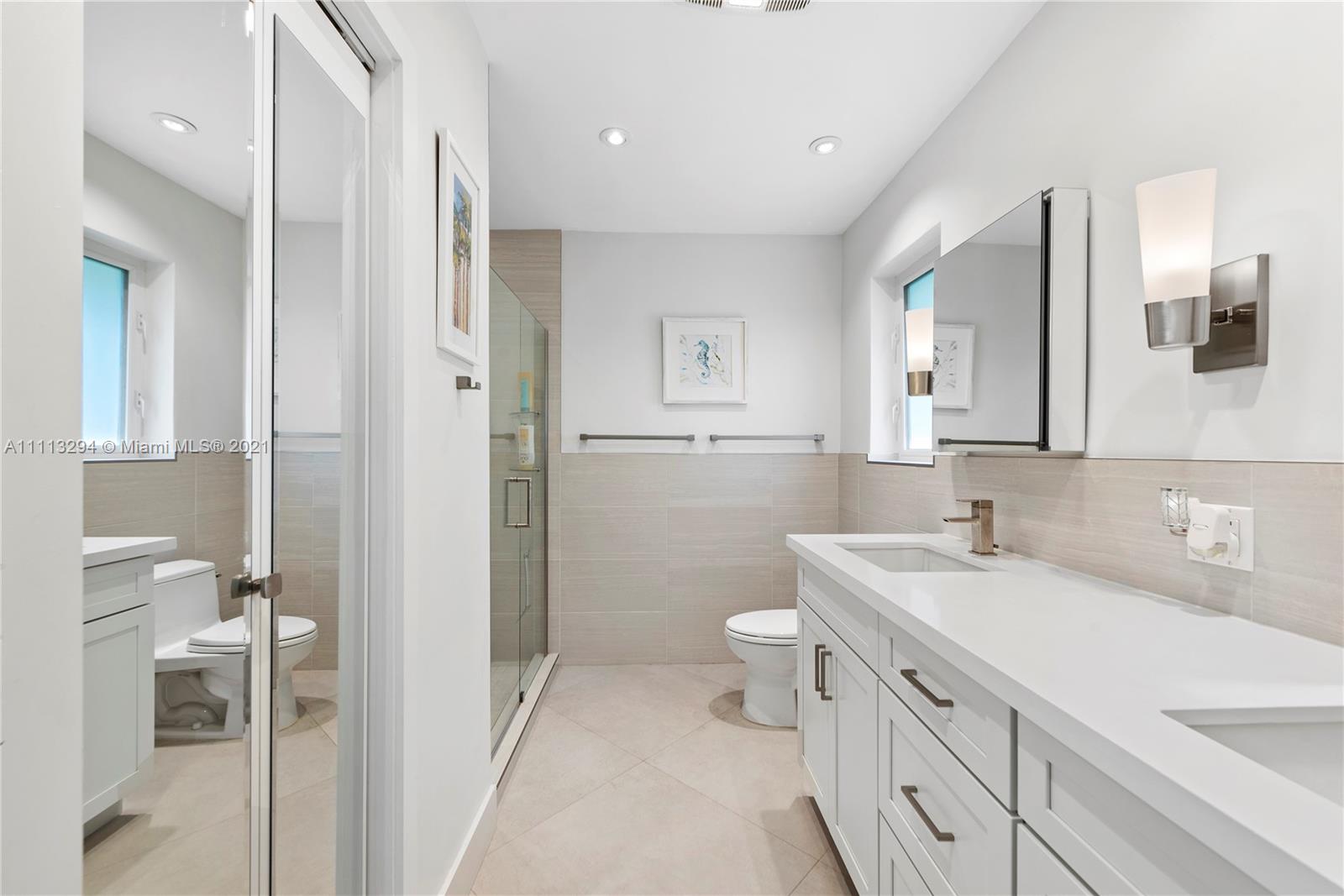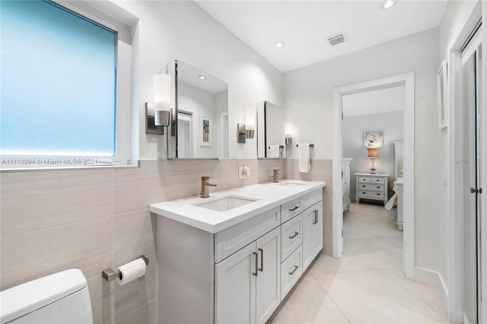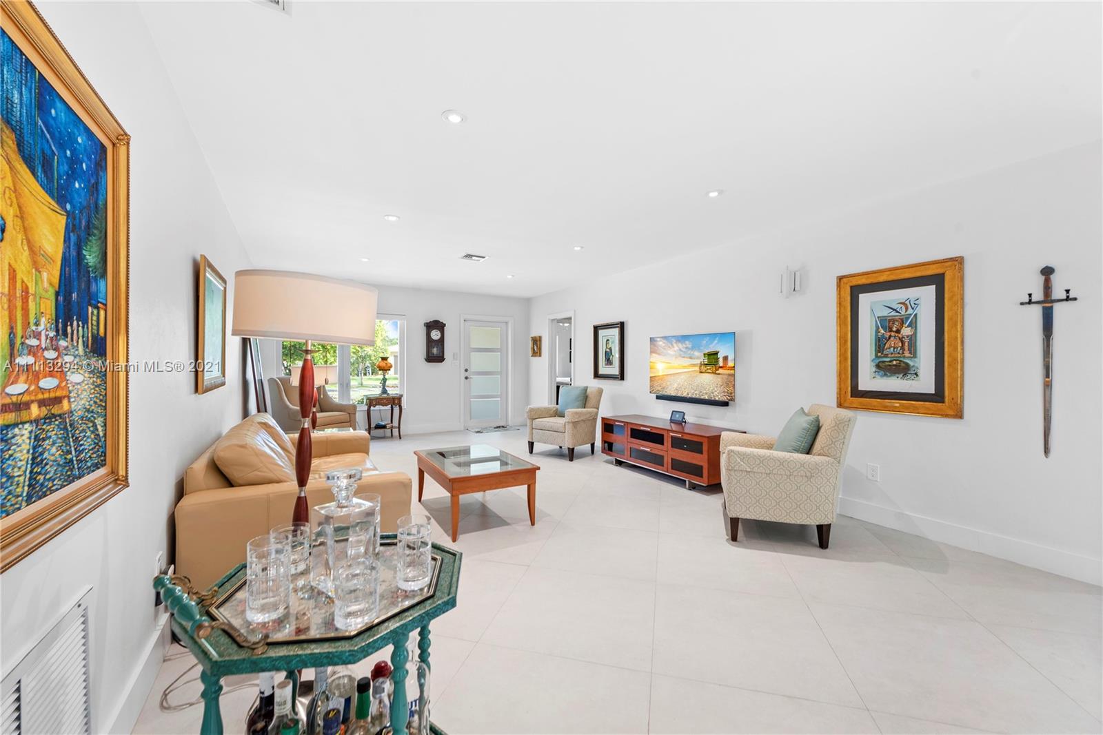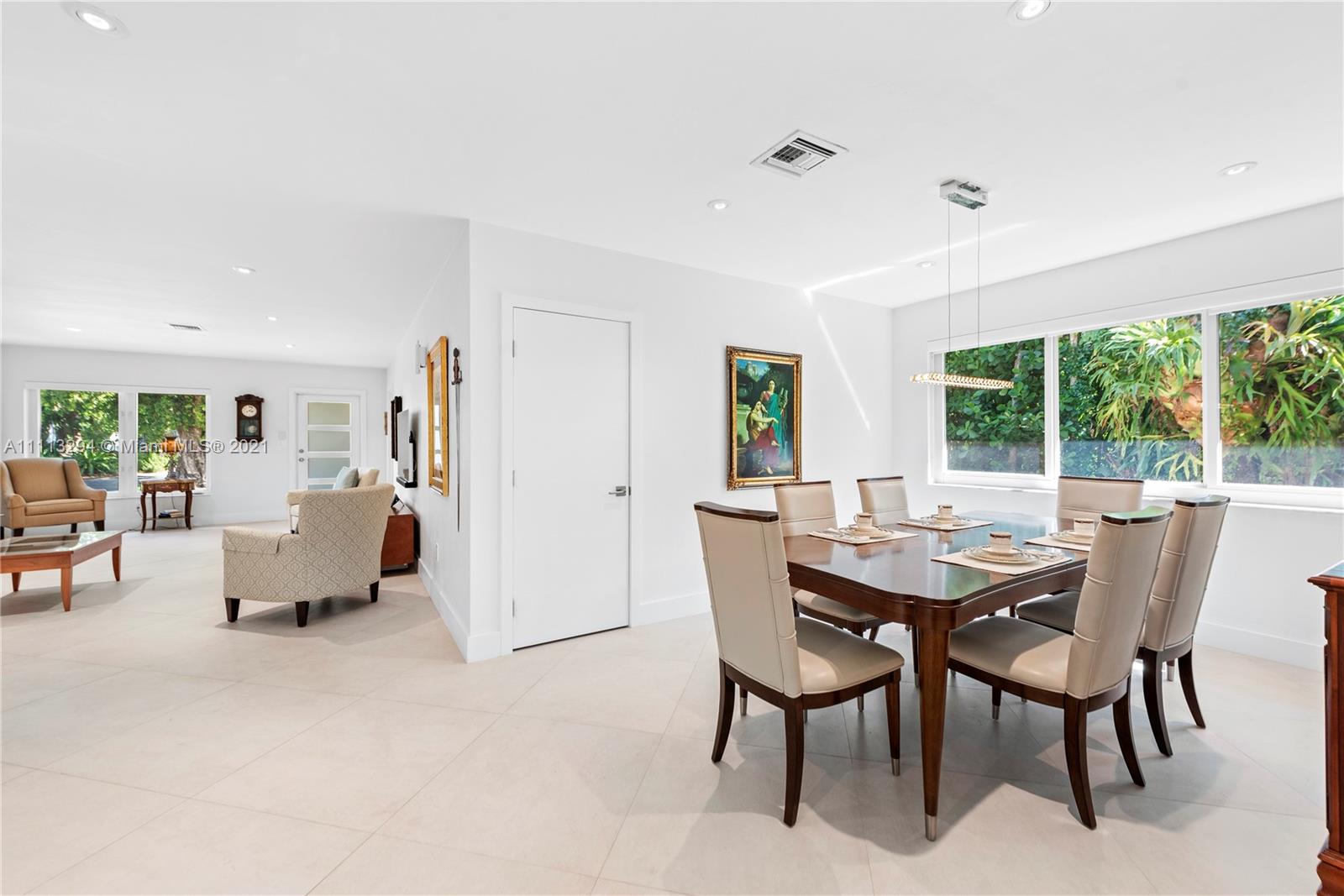 Located on picturesque tree-lined Coral Gables street, this 3 bedroom, 2 bathroom pool home sits on a 9,000 sqft lot. As you enter, you will encounter an open floor plan lit with all new modern high hat LED lighting. The split floor plan offers the Master bedroom with sliding doors overlooking the pool, double vanity bathroom with shower and walk-in closet. The 2 other bedrooms share an updated crisp white bathroom with jacuzzi tub. The recently updated modern kitchen offers quartz countertops, solid wood cabinets and stainless steel appliances. Other features include: Impact windows/doors, 30x30 contemporary tile floors, indoor laundry room, covered patio great for entertaining, new paved driveway leading to a 2 car garage, newer AC system with all new air ducts and much more.