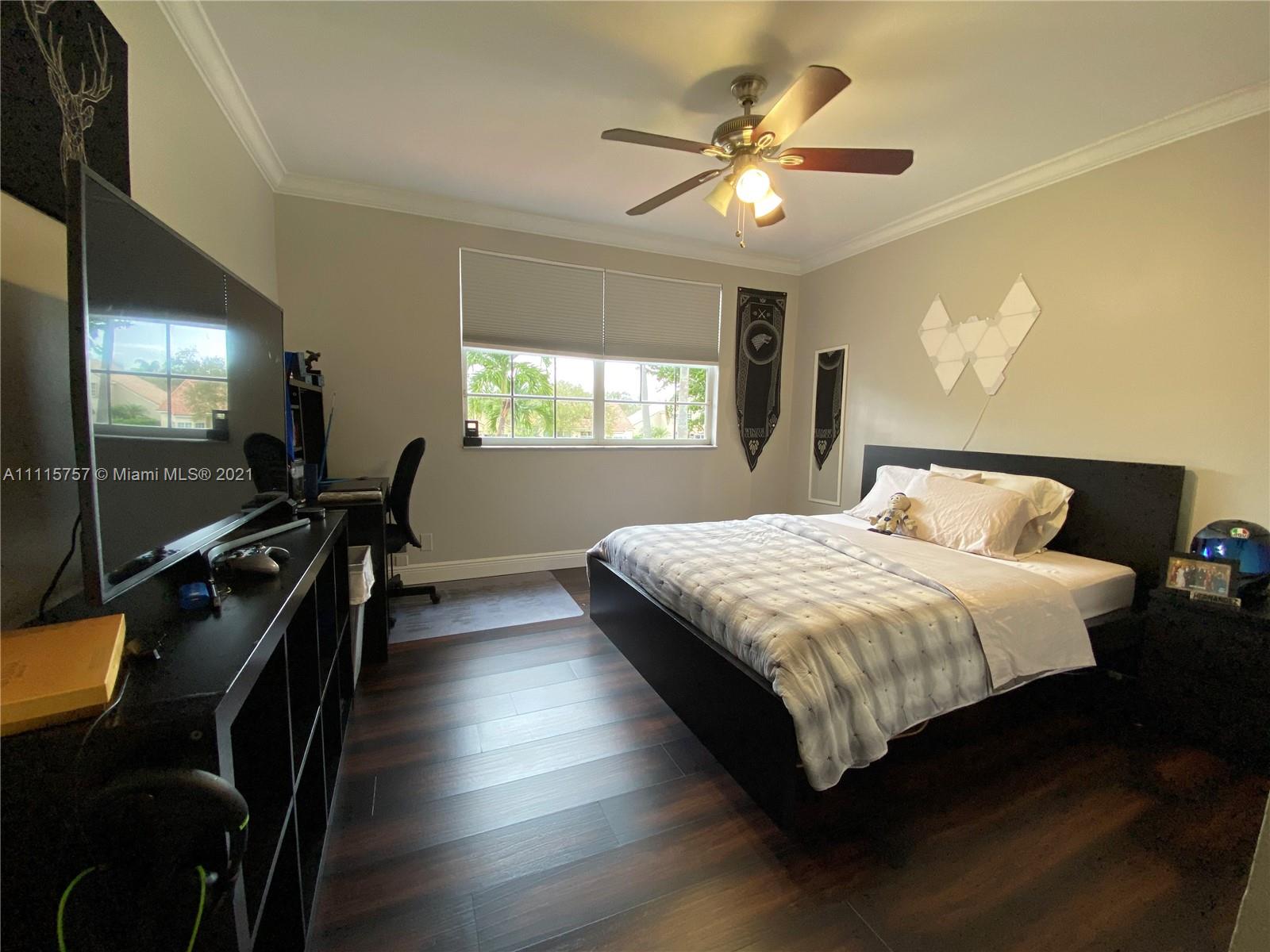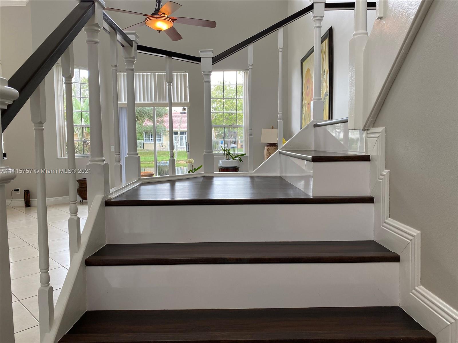 Enjoy the Weston lifestyle! This "meticulously" kept 3/2.5 home is located in the gated community of Hibiscus Island. Home is full of natural lighting with volume ceilings & serene water views. Master bedroom with sitting area downstairs. Home features newer roof (2019), accordion hurricane shutters (2020). Kitchen has been updated. Staircase & upstairs flooring (2019). Interior doors/hardware installed & interior/exterior of home painted (2019). Upstairs bath and ½ bath updated (2019). Built in closets (2018). Home has crown molding. Garage partially conv. to home office. Can be easily conv. back to garage. Steps away to community pool, child play area & BBall court. “A” rated schools, near Weston Town Center and easy access to I-75. Wonderful place to call HOME! This truly is a must see!