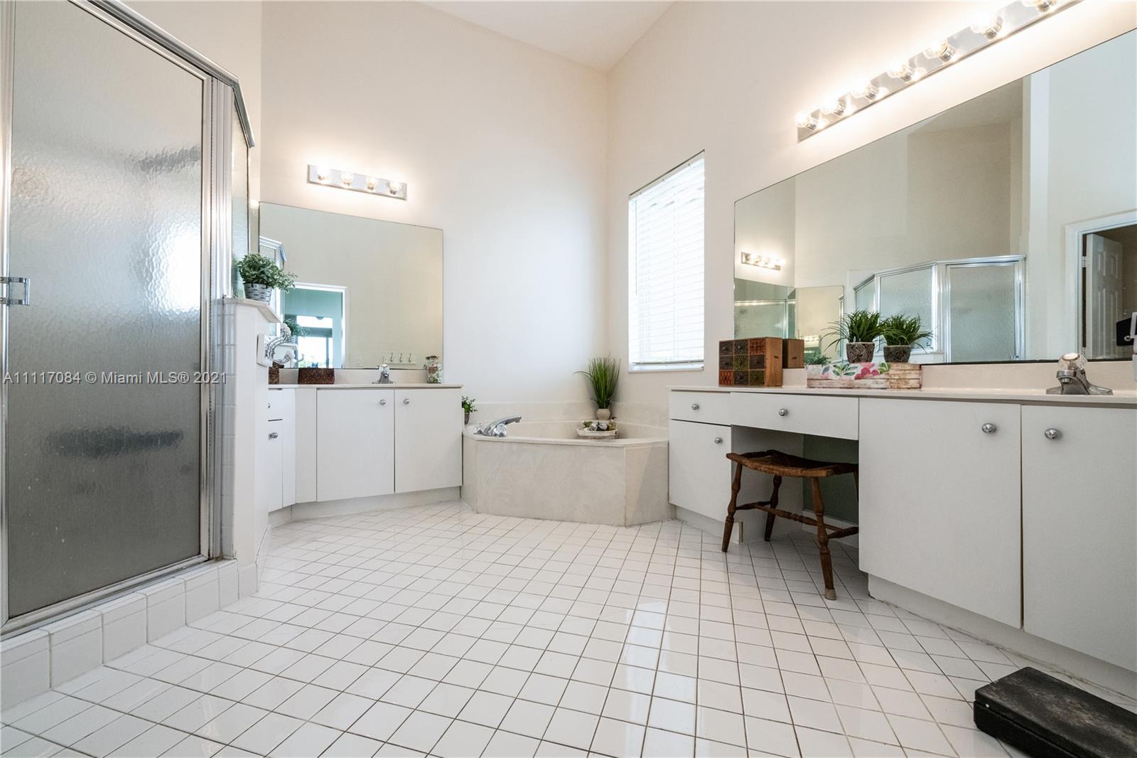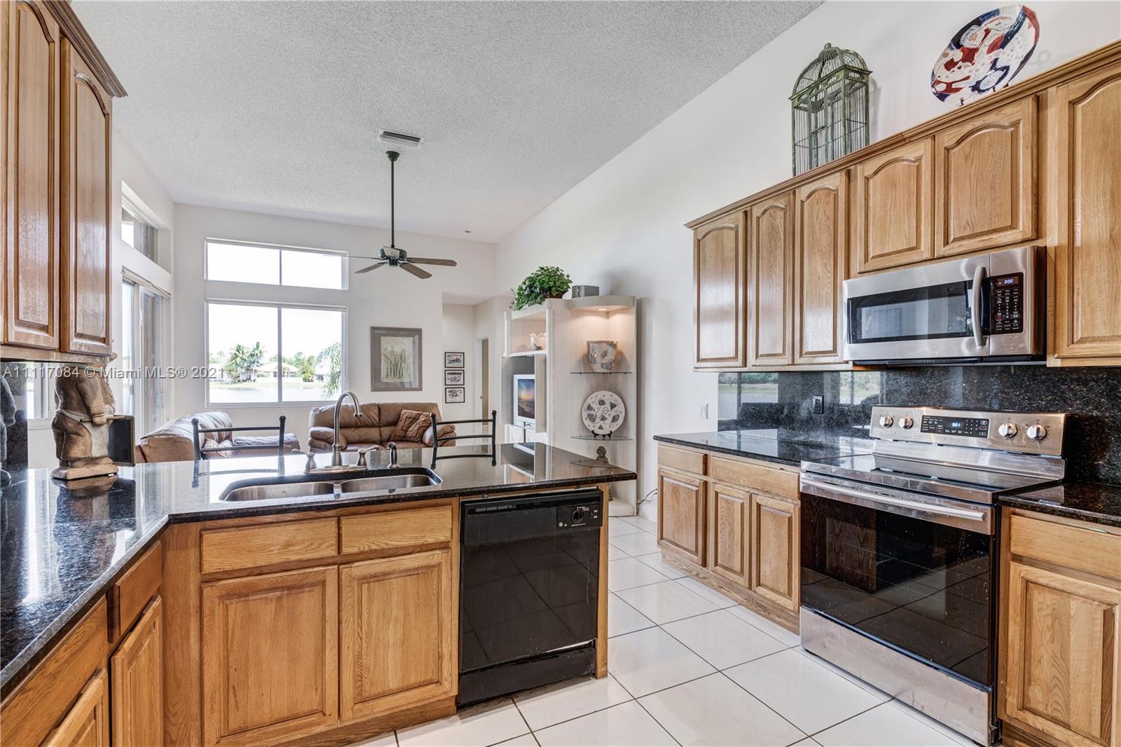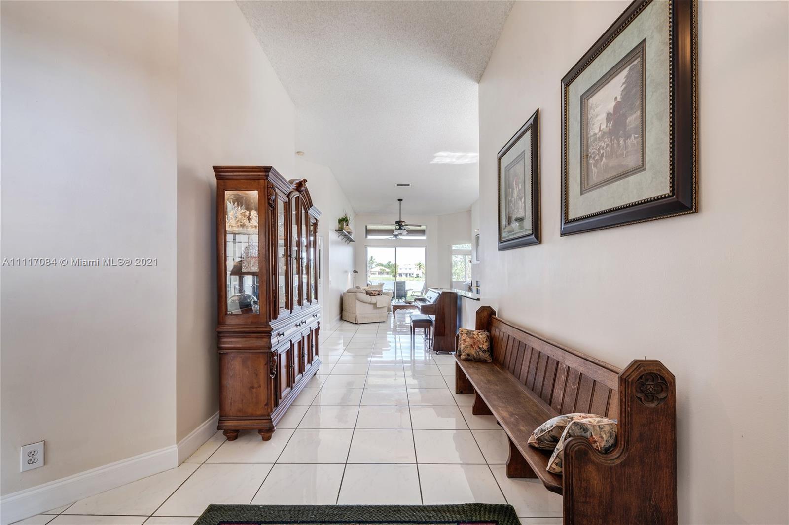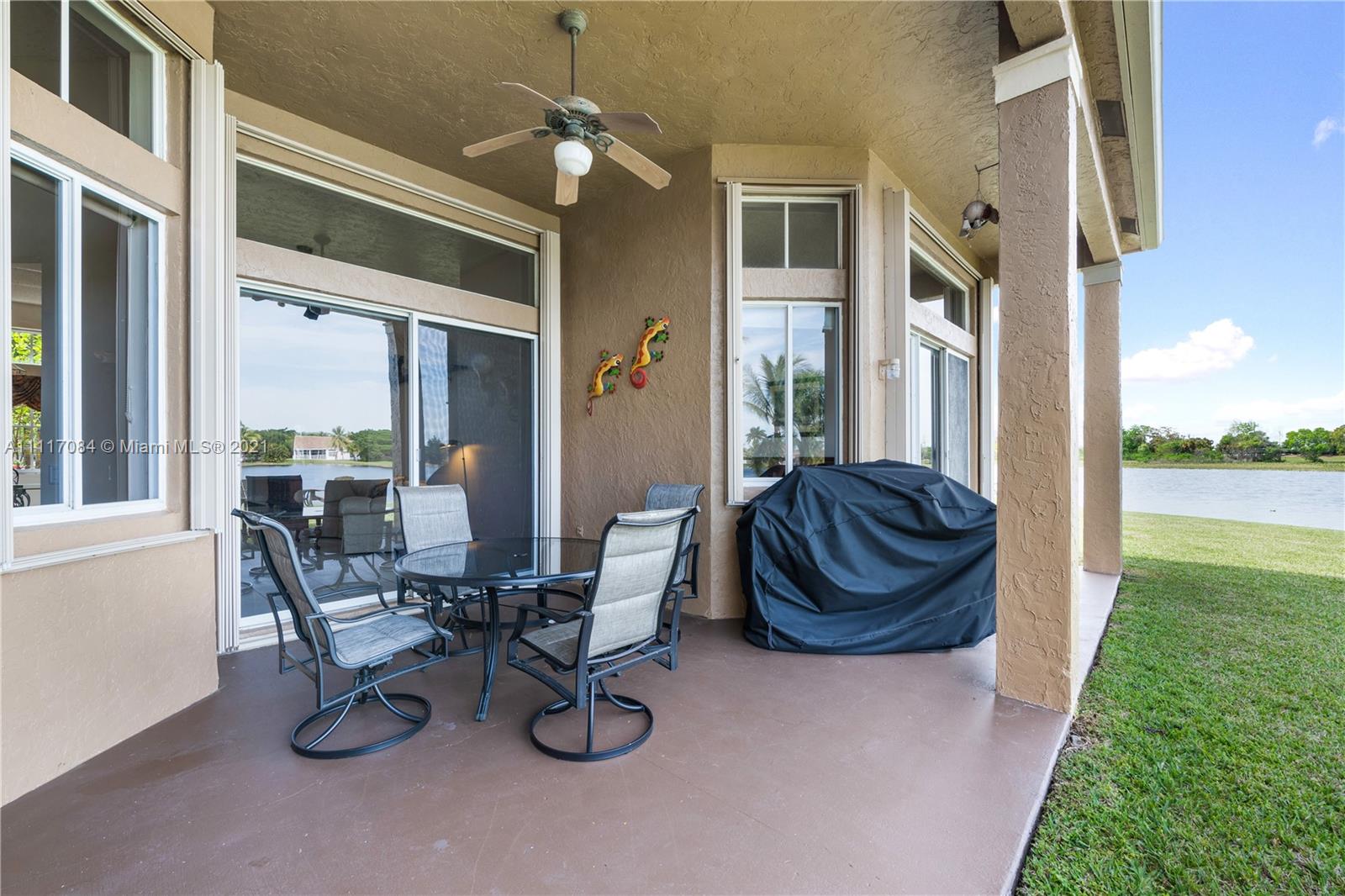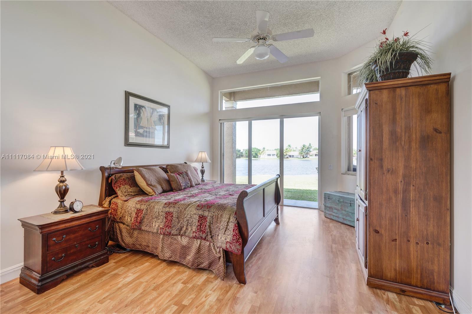 Come and see this gorgeous home with a NEW ROOF. Breathtaking panoramic views of 150 feet lakefront! Property nestled in cul-de-sac with a point lake lot and plenty of room for a pool. Grab your favorite beverage and watch the sunrise from your primary suite, with large sitting area, walk in closet and spacious bath. Triple split plan has 4 additional bright and airy bedrooms, with high volume ceilings throughout, and 3.5 baths [some upgrades]. Open concept home with formal dining room, living room with real wood burning FIREPLACE, family room, all wrapped around updated kitchen with granite and stainless appliances - fabulous for entertaining. Tile & Wood flooring, freshly painted interior & Accordion shutters. 24 hr guard gated community with pool & can walk to local elementary school.