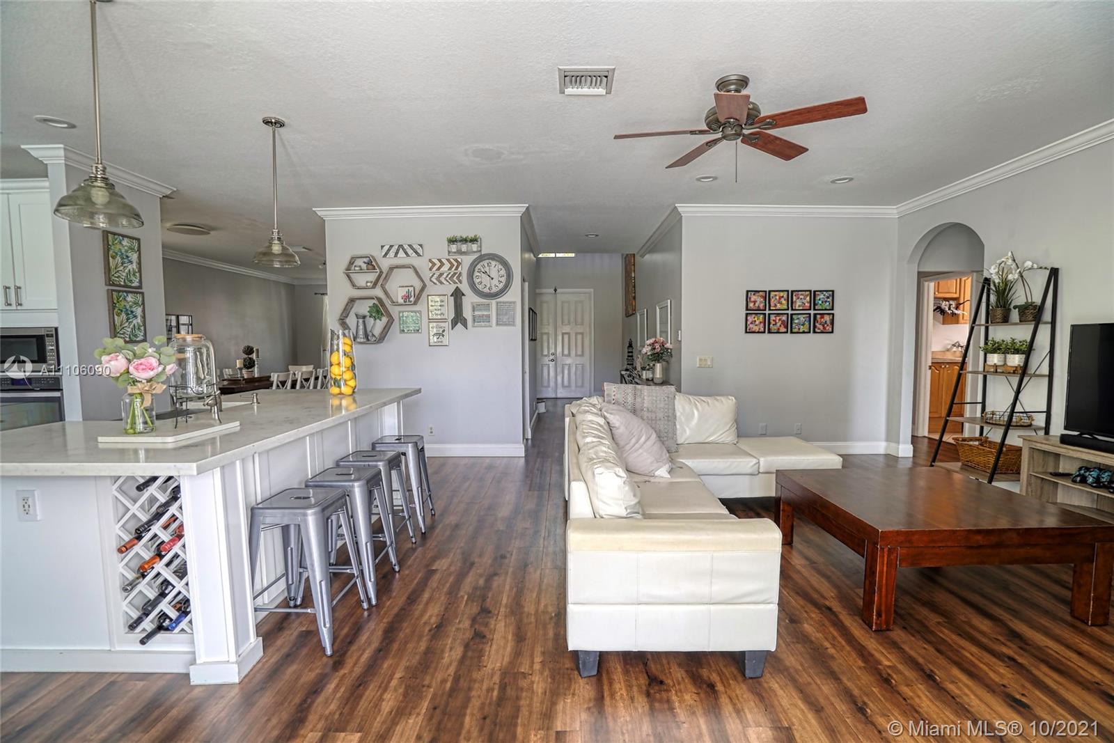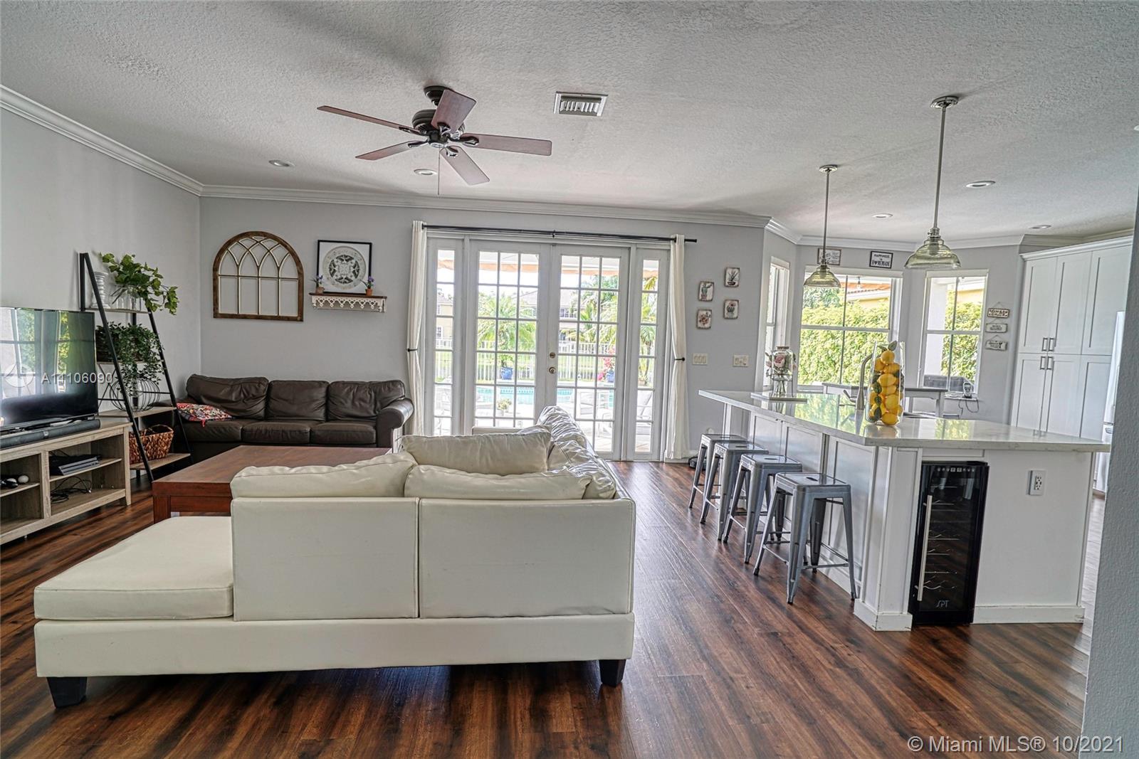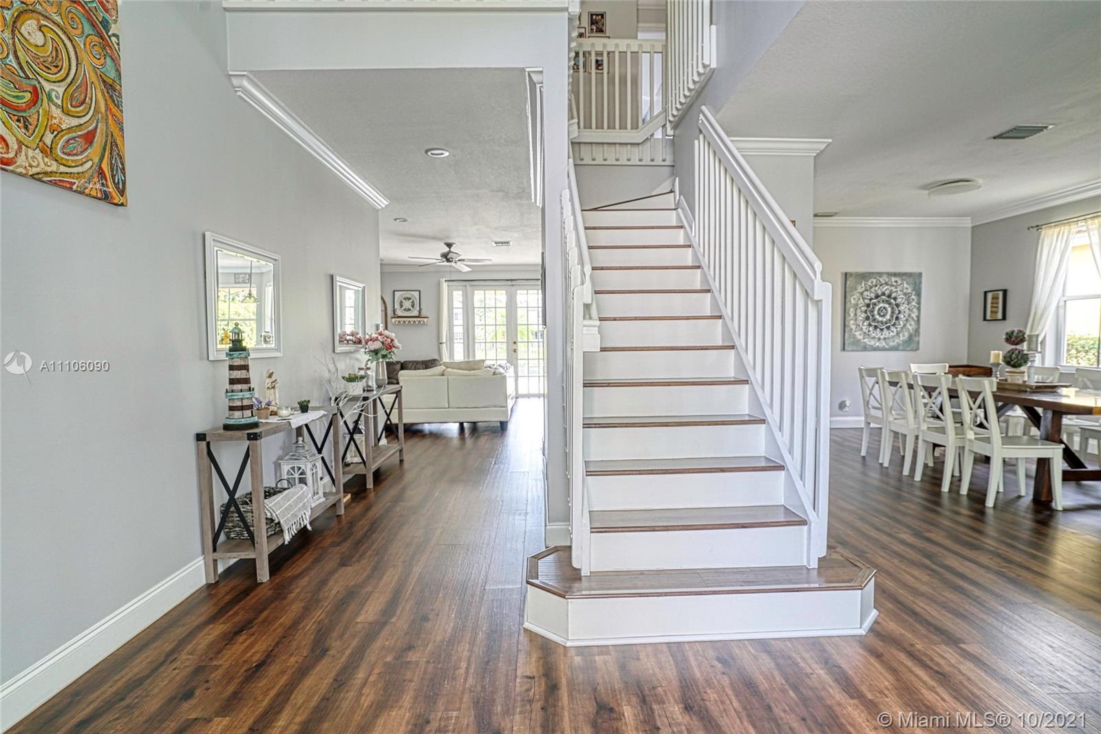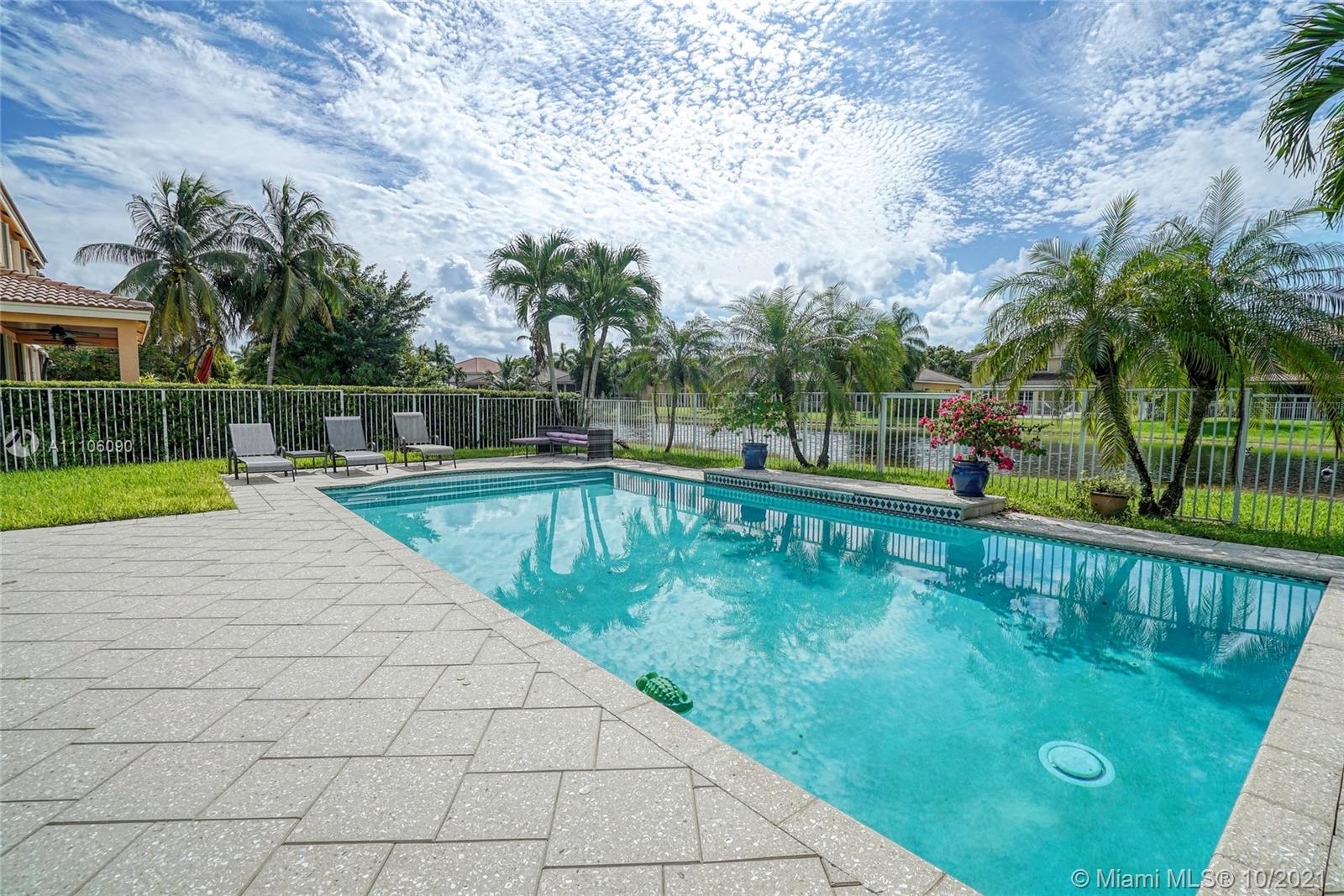 Breathtaking 6 bedrooms 4 bathrooms house with lake and pool. One bedroom and full bathroom on 1st floor. New Kitchen with quartz counter tops and stainless steel appliances & 42" wood cabinets, vinyl wood floors throughout. Closets galore. Accordion hurricane shutters on all second floor windows. Gated community with amazing club house, 4 pools, water-slide, mini golf, basketball court, soccer, playground, and more to mention.