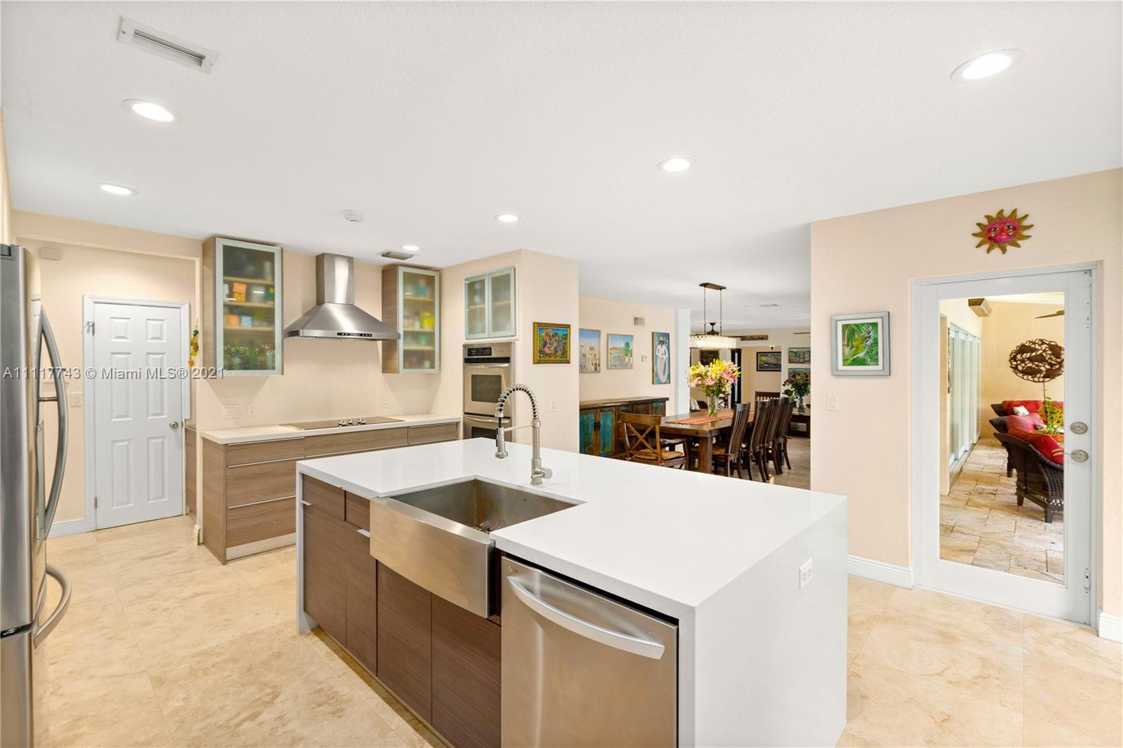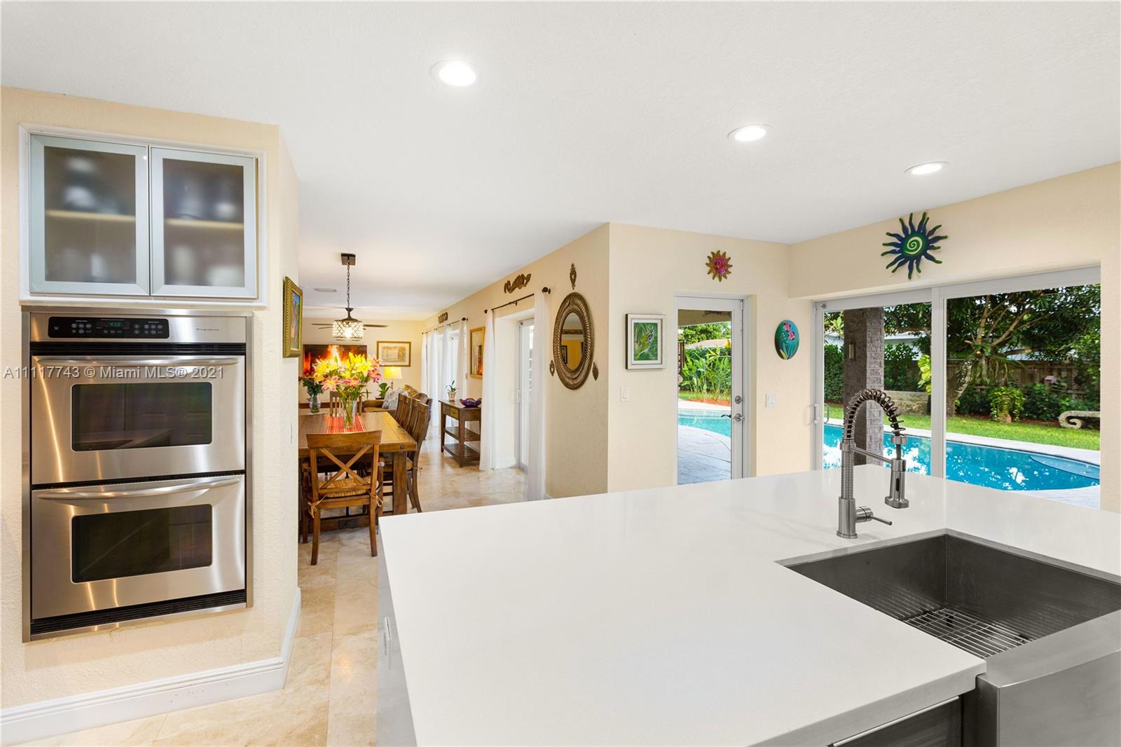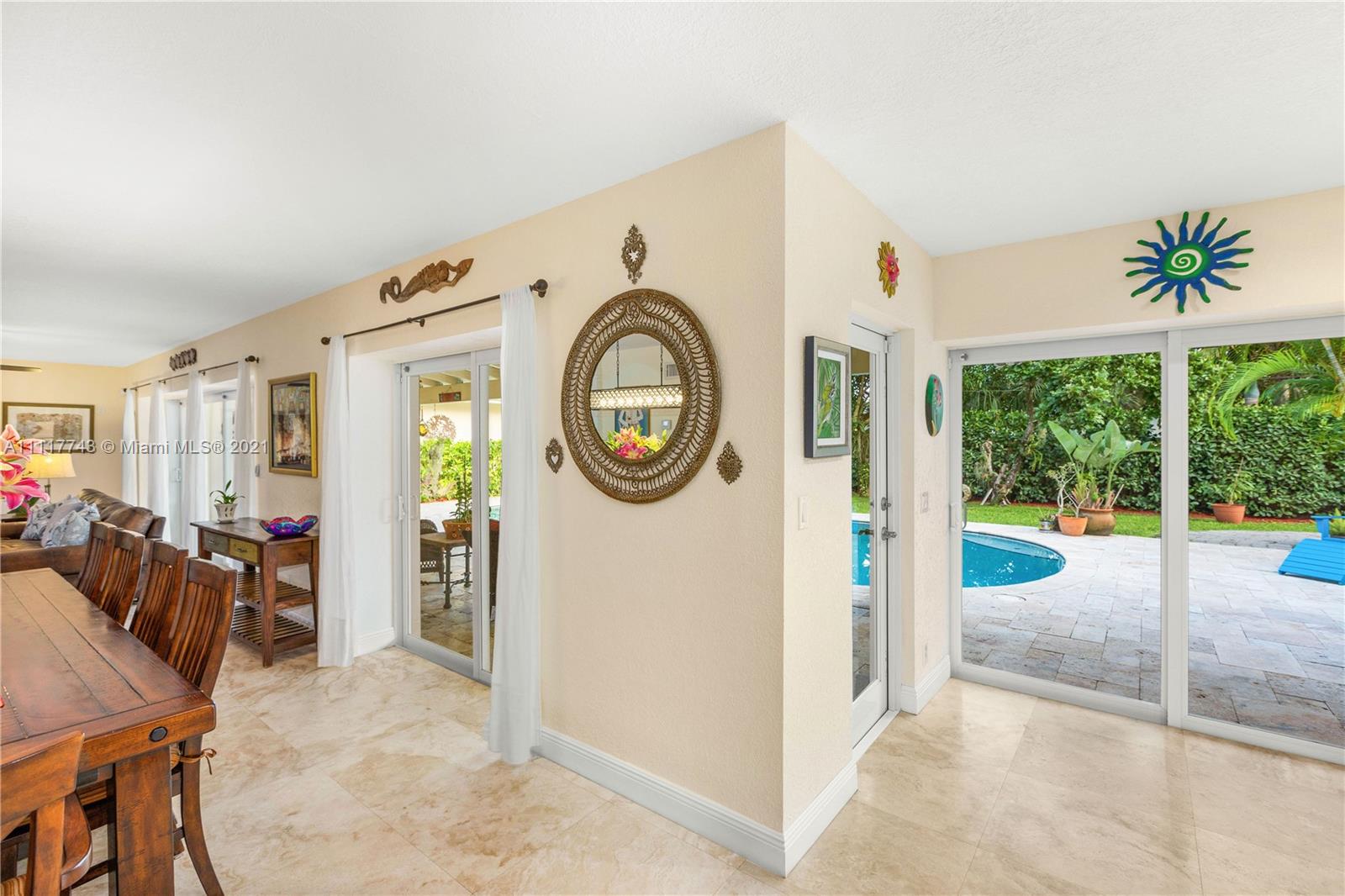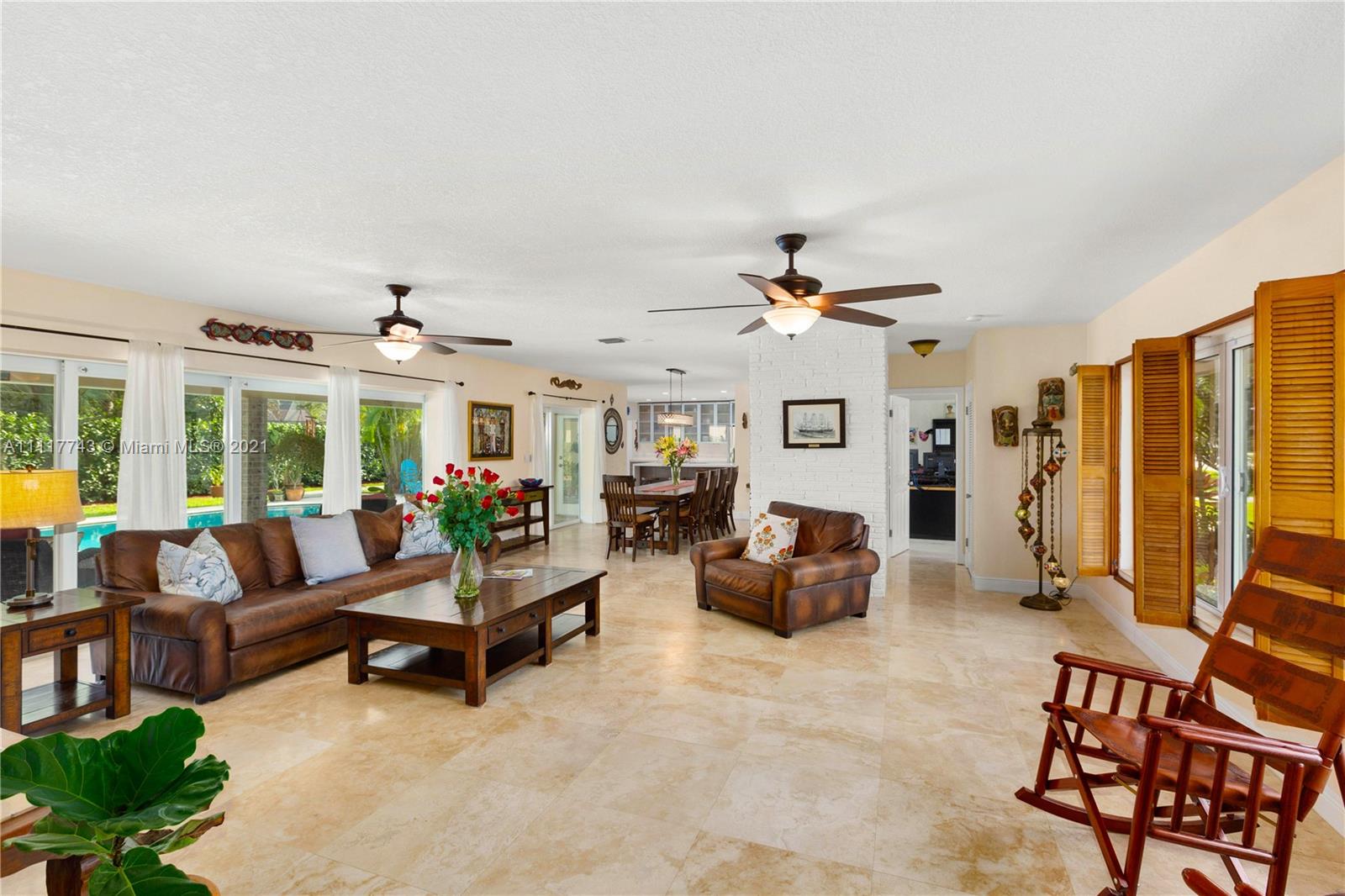 Spacious Pinecrest Retreat. 4-bedroom, 2.5 bath plus 1-1, guesthouse, built around a beautiful pool, patio and garden. Updated electrical and plumbing, travertine floors, impact windows and doors, and tremendous closet space throughout. This home offers beautiful spaces with relaxing natural light throughout. Large master bedroom suite overlooking the pool, updated kitchen with quartz countertops. Fabulous living and dining spaces with enormous sliding glass pocket doors that make the pool and living areas one. Gated with a two car garage, and plenty of room for a boat, RV, or both. This could easily be your forever home.