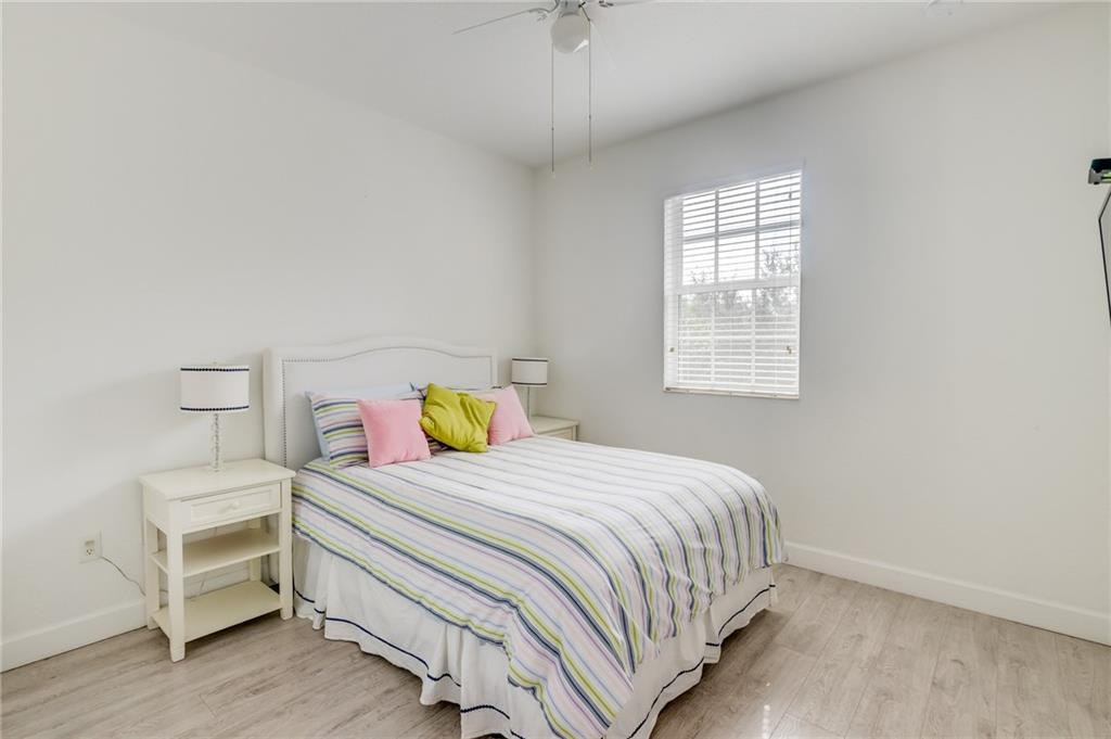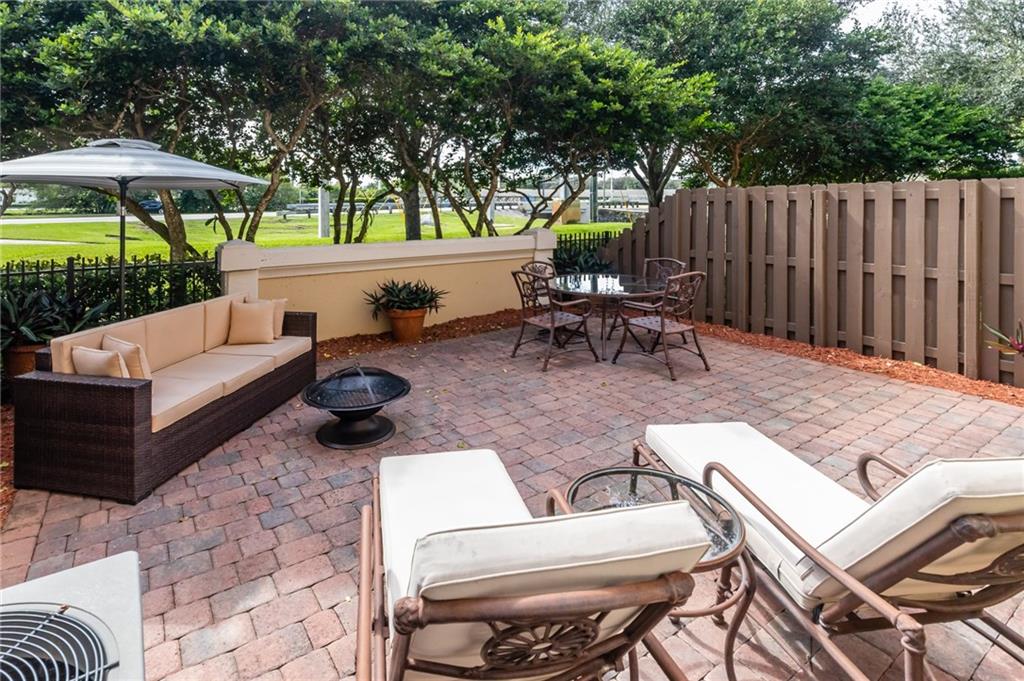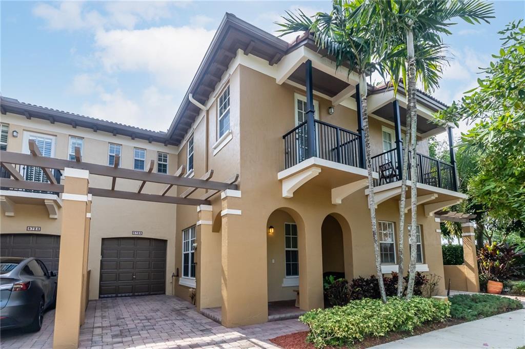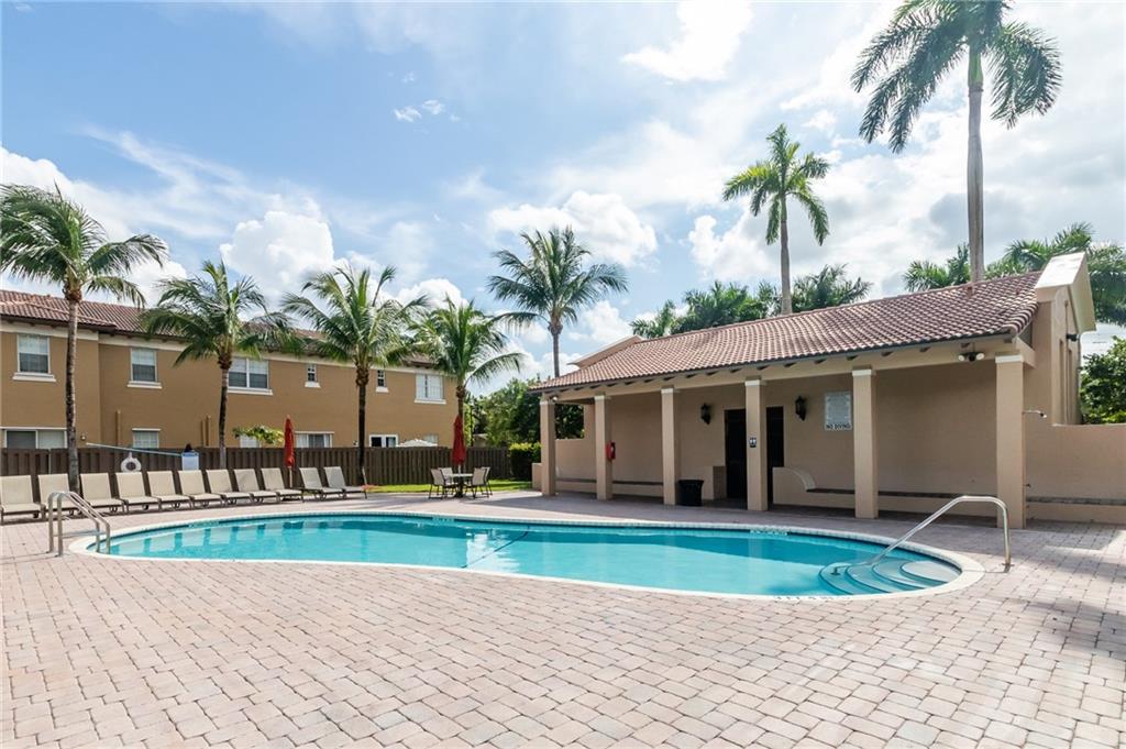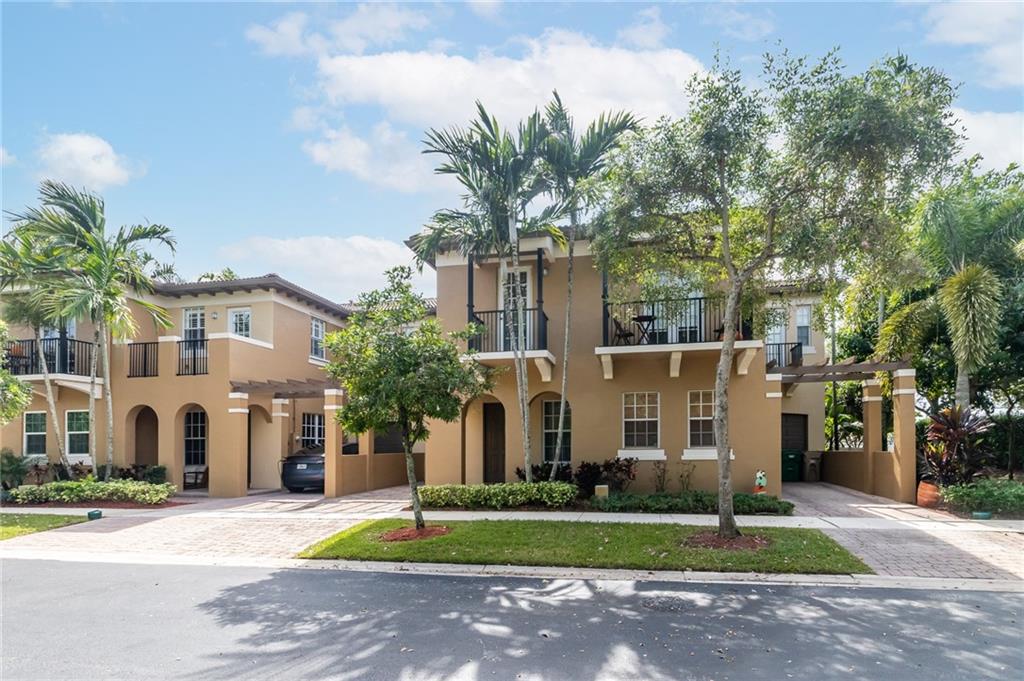 Stunning light and bright Mediterranean style townhome. Impact Windows and doors throughout, Spacious kitchen features stainless appliances, granite countertops and is open to the living room. 3 bedrooms, 2 full baths upstairs, laundry upstairs & 1/2 bath downstairs. Master bedroom features a private balcony and large master bath with separate tub and shower and dual sinks. Huge fenced in back back patio with plenty of space for furniture and entertaining! One car garage with parking for another and also guest spots. Cimarron features a private pool and playground with low HOA fees that include landscaping, basic cable, alarm service and reserves. Family Friendly & within walking distance to Bamford park and pine island aquatic center & gym. Fee Simple / Buy with as little as 3% down!