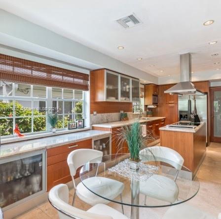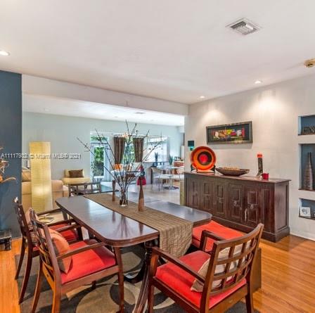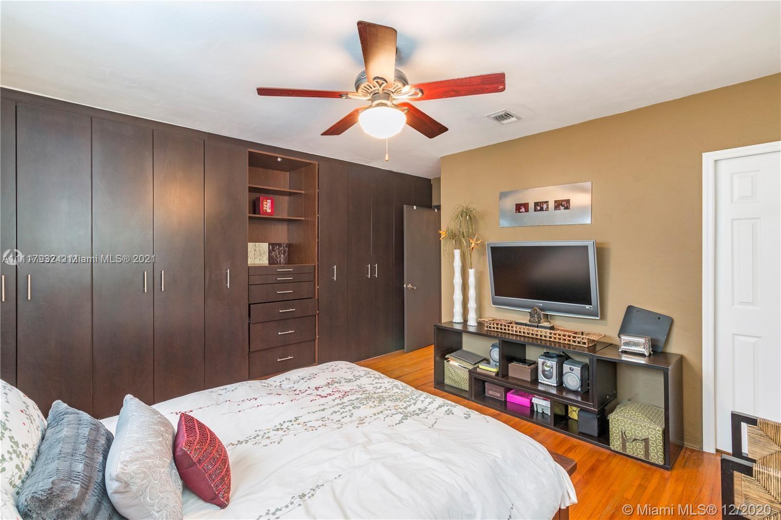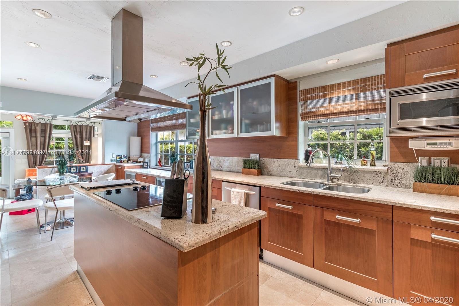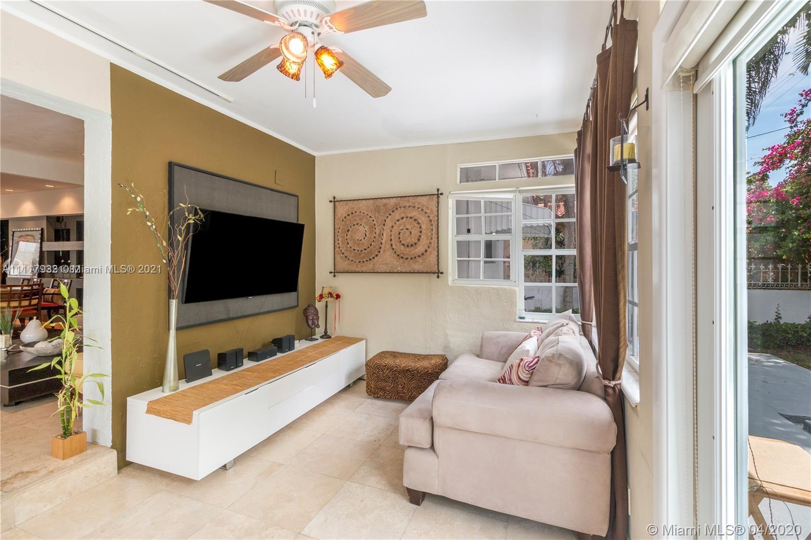 Beautifully renovated 3/2 with original Dade Co. wood floors in living areas, hallway and bedrooms and ceramic tile floors in other areas. Bedrooms have custom floor to ceiling closets with organizers & interior lighting. Master bathroom designed with classic/modern look and guest bathroom with spa like feel. An 1821 s.f. open flow-through design with infinite details, skylight for natural light. Formal Living room, formal dining room, breakfast nook opens to modern kitchen with island and built-in grill. Family room and TV room full of light with windows and French doors leading to cozy foliage patio. Walk to Biltmore hotel, Alhambra Water Tower, and other Coral Gables landmarks. Enc. garage disc.