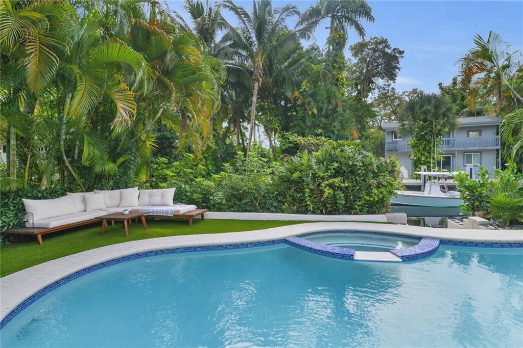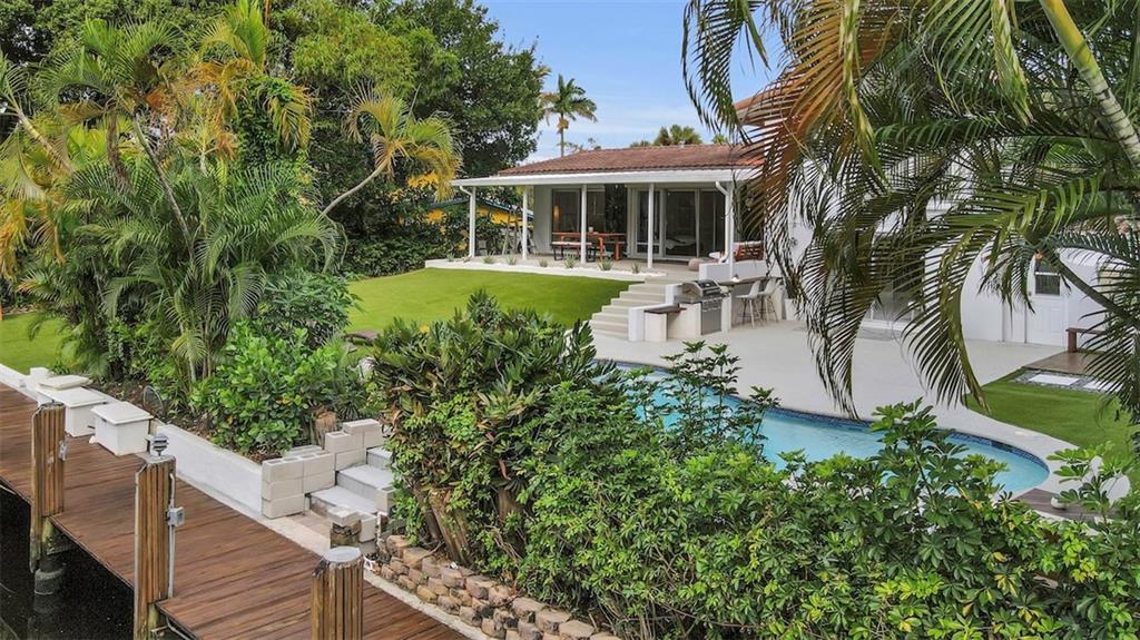 WELCOME TO YOUR SOUTH FLORIDA OASIS. This stunning, TRI-LEVEL, UNRESTRICTED OCEAN ACCESS home is TURN KEY, and ready to move in or rent out on Airbnb. Cul-de-sac offers privacy, and a quiet sanctuary. VAULTED CEILINGS THROUGHOUT. Fantastic VIEWS and NATURAL LIGHT display your RESORT STYLE backyard on 100 FT of WATERFRONT. Massive TURF yard requires zero maintenance, and gorgeous POOL/SUMMER KITCHEN provides a fantastic space for entertaining and hosting large events. BRAND NEW FLOORING, tiled entertainment center, and BRAND NEW AC. Barrel tile roof. 5 min boat ride or 20 min kayak ride to the downtown restaurants and bars. 15 min drive to the new Hard Rock Hotel. 5 min drive to FTL airport. FULLY FURNISHED. Neighborhood is a hidden gem with HUGE LOTS which are very rare in South Florida.