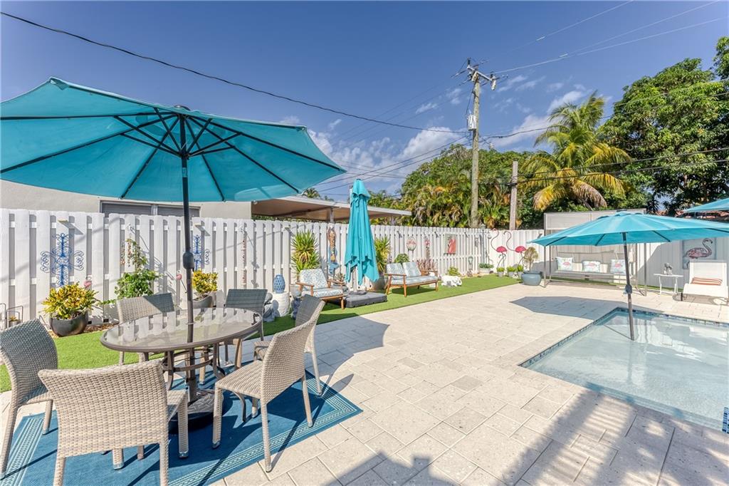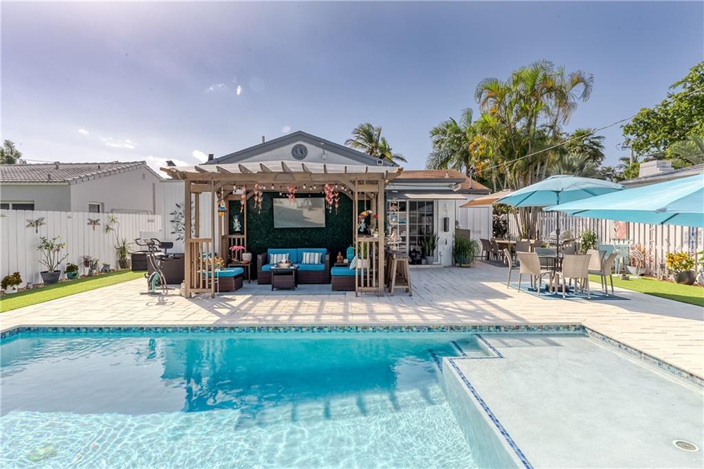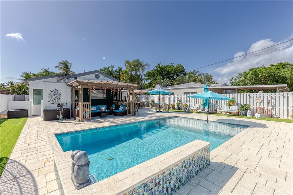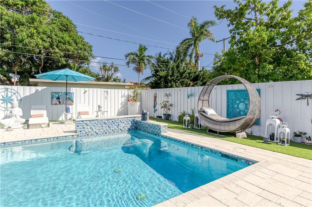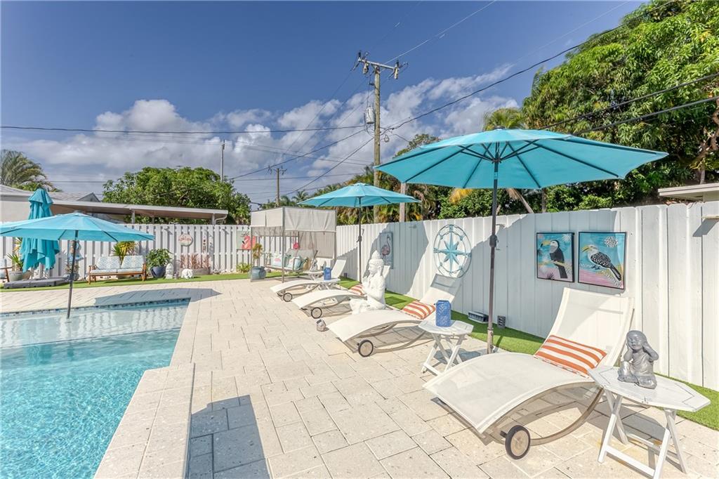 A Piece of Paradise in the heart of East Hollywood~Award Winning House of the Month in Hollywood Lakes ~3 Bedrm 2 .5 Bath Plus a Den (can easily be a 4th bedrm)~Outside Summer Kitchen w/ Granite Counter, Dbl. Sink~Dining and living areas Seating for 24~Boutique resort style at its most elegant; Shower/Bath,Self-Watering Sink;New Salt Water Heated Pool Jandy/Aqualink; LED Lights~New Pavers throughout ~Beautiful Landscaping~Dbl glass entrance, hurricane proof Doors/windows; New Porcelain Tile in Living Areas with New Wood Floors in Bedrooms~Completely Updated~Newer TRANE A/C with a separate a/c split in master bedr/ New Kitchen w/Slate Counters,SS Appliances, Dbl. Pantry, New Electrical Panel/Main Water Pipe System, LED lighting inside and out~Freshly Painted; All backyard furniture included