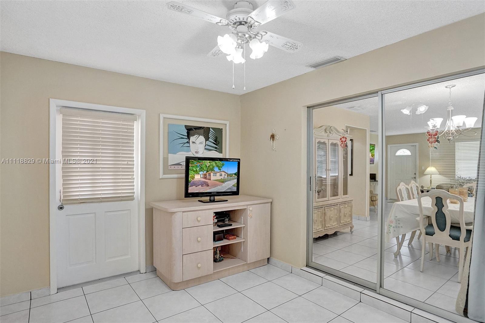 Welcome to Saratoga Height’s, walking distance to Amelia Earhart Park, in Hialeah in incredibly quiet neighborhood. Corner one-story single-family w/perks of having 3 beds/2 baths, in a large lot of 6,300 SQ FT, w/ ample space to park up to 6 to 8 vehicles and/or a large boat/trailer all fenced. Kitchen with brand new microwave, dining, Florida/Living rooms, enclosed den w/its’ own door to be used as a guest room/office, back terrace, separate concrete built-in shed w/outdoor sink. Principal bedroom w/its own entrance for in-laws, rental income potential or use it as designed. A/C is only 6 years old; w/ warranty, home is well kept. Property is close to top rated “A” schools, parks, shopping, restaurants, and expressways. Don’t’ delay and visit this home today! Best no HOA. It wont last!