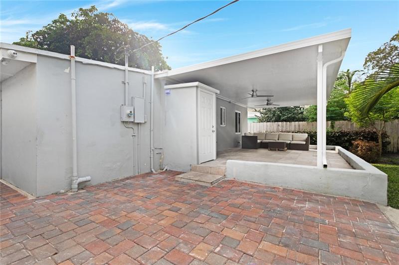 Totally renovated 4bed/2bath home on great street! Seller just spent $20K on new paver driveway/parking and covered insulated patio w/ fans. All impact windows/doors, newer roof & systems, & tankless water heater. Interior boasts 18" porcelain flooring throughout, updated baths with travertine tile, open layout, kitchen with full height cabinets, quartz, and stainless appliances. Large master suite features on suite bath and huge walk in closet. Wonderful and spacious back yard ready for pool or second structure. Home has security/monitoring system with 6 cameras accessible via app. Close to the 13th St retail area, Flagler Village, and Wilton Manors.