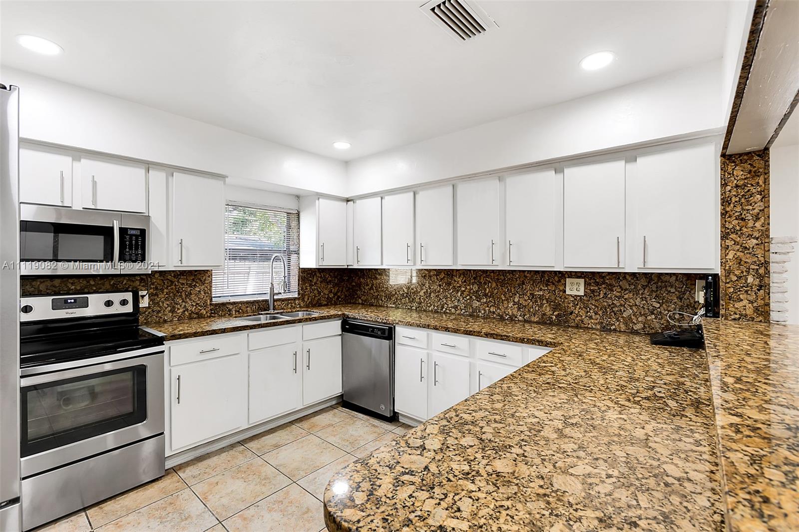 Very large Griffing Biscayne Estates home with endless possibilities. As you enter the front door, you are welcomed by the large living room and dining areas. Kitchen has been updated with granite counter tops and backsplash, stainless steel appliances and refurbished cabinetry. This could be a perfect chefs kitchen. There are two bedrooms and one bath in the main area. As you enter the large family room with Terrazzo flooring, you can't miss the sliding glass doors that take you to the patio and pool. To the left of the family room is the main bedroom and on-suite bathroom. Down the hall you have your fourth bedroom and bath and in the back of the home is a huge room that could be a theater/media/game room. This home has tremendous possibilities for someone who needs lots of space.