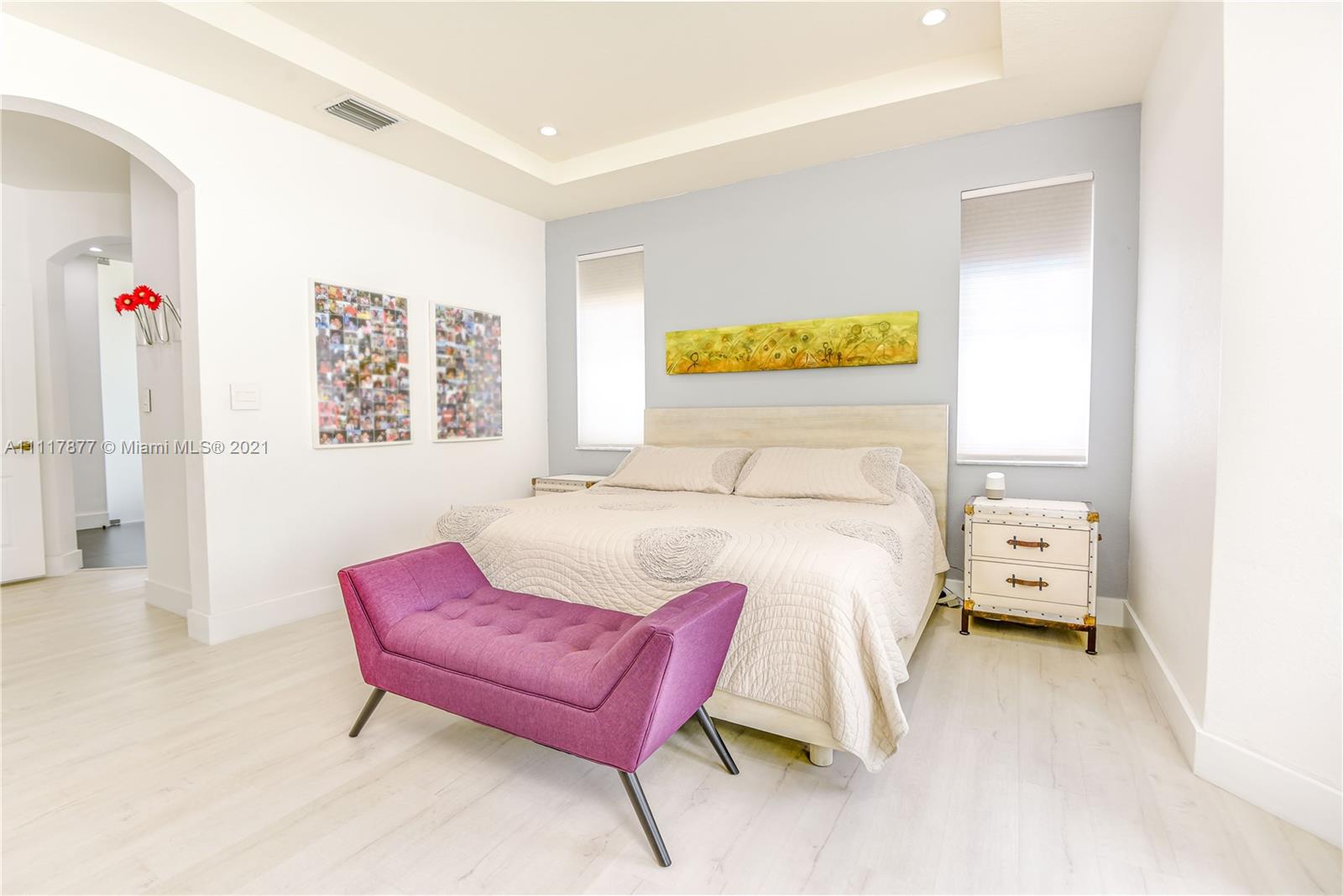 No other House like this one. Click on the Video. Very Desirable One Story Totally upgraded, Open concept, Single Family Home in Doral. Move-in ready. Huge lot with almost 7,000 Sq Ft perfect for a pool and entertainment. Very private home with Doral Legacy Park on the back. 4 Beds, 3 Full Baths, 2 Car Garage + 2 spaces on the driveway with an electric car station. Gourmet Kitchen with a big island, quartz countertop, black SS appliances with separate glass stove and oven, waterproof laminated floor in living area, bedrooms and kitchen, porcelain floor on the bathrooms. Custom-made closets in all the bedrooms, almost new Air Conditioner. High hat led lights in all the house. Front-loaded washer and dryer. Buyer has to pay $ 2,600 for Association Resale Capital Contribution at Closing.