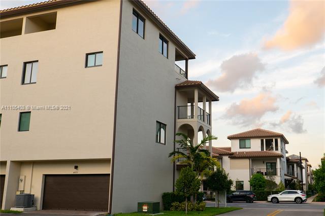 For sale, this stunning corner 4 story Townhome at URBANA Downtown Doral, near schools, parks, restaurants and shops. This units features a media room, Skyview terrace with BBQ area, private elevator, 2-car garage, and much more. The units has new tile flooring, floor to ceiling European kitchen cabinets, European back splash tiles in kitchen, upgraded GE profile appliances, full laundry with modern upgraded Samsung Washer and Dryer; laundry sink with stone top. Smart apps to manage A/C, doorbell, range, washer and dryer, entrance digital key. READY TO MOVE IN.