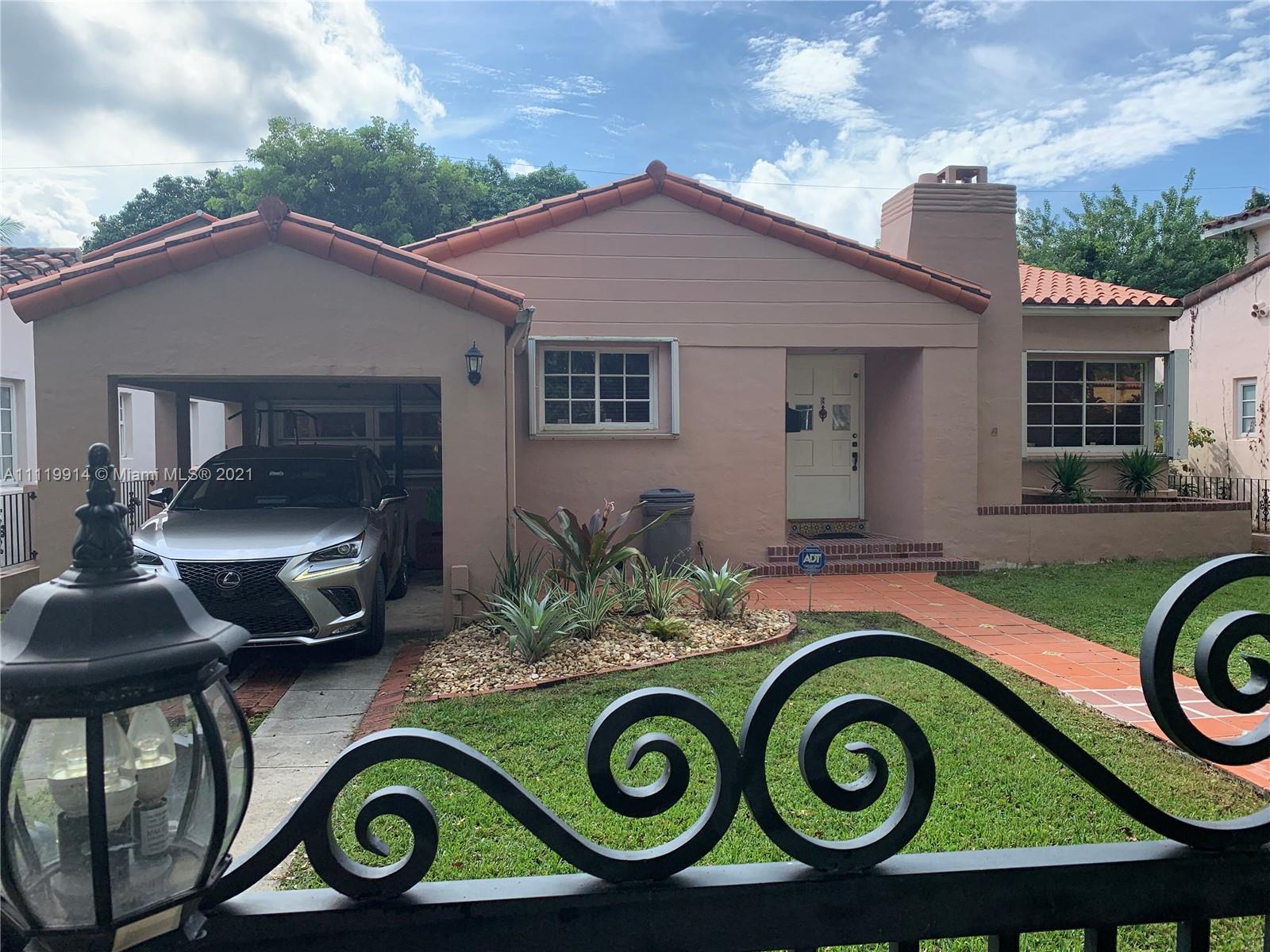 Rare find! 1930's Gem in the heart of Coral Gables, close distance to Miracle Mile and Le Jeune Rd. Charming home features 2 split bedrooms, each with its own bathroom. Open architecture in the living, dining, kitchen area. Kitchen features stainless appliances and walnut cabinets. Beautiful cathedral wood ceiling in the main living room, high ceilings in the rest of the home. Fireplace, hardwood floors, fenced back yard, W&D with storage in rear, Shutters, covered car port. Property to be shown by appointment only. No contingencies, DU and prequal ahead of appointment confirmation, proof of funds if cash. Offers to begin at asking price. CALL OR TEXT listing agent. DO NOT SHOW UP WITHOUT AN APPOINTMENT - DO NOT DISTURB OCCUPANT