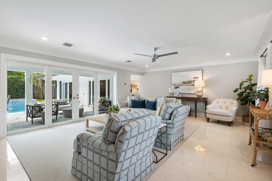 Stunning and meticulously maintained Coral Ridge Country Club residence located on a quiet street. No stone has been unturned. 3 bedrooms, 2 baths, pool, 2 car garage, split floorplan. Covered outside lanai allows for enjoying the newly remodeled, sparkling pool and spa. Bright, cheerful and elegant kitchen opens up to the dining area. Built in shelving in family room. Inside laundry room. French doors to the outside pool area from all living areas, master bedroom and guest room. Cabana bath to the outside. Impact windows and doors. Roof 2009. Lush, professional landscaping surrounds entire property.