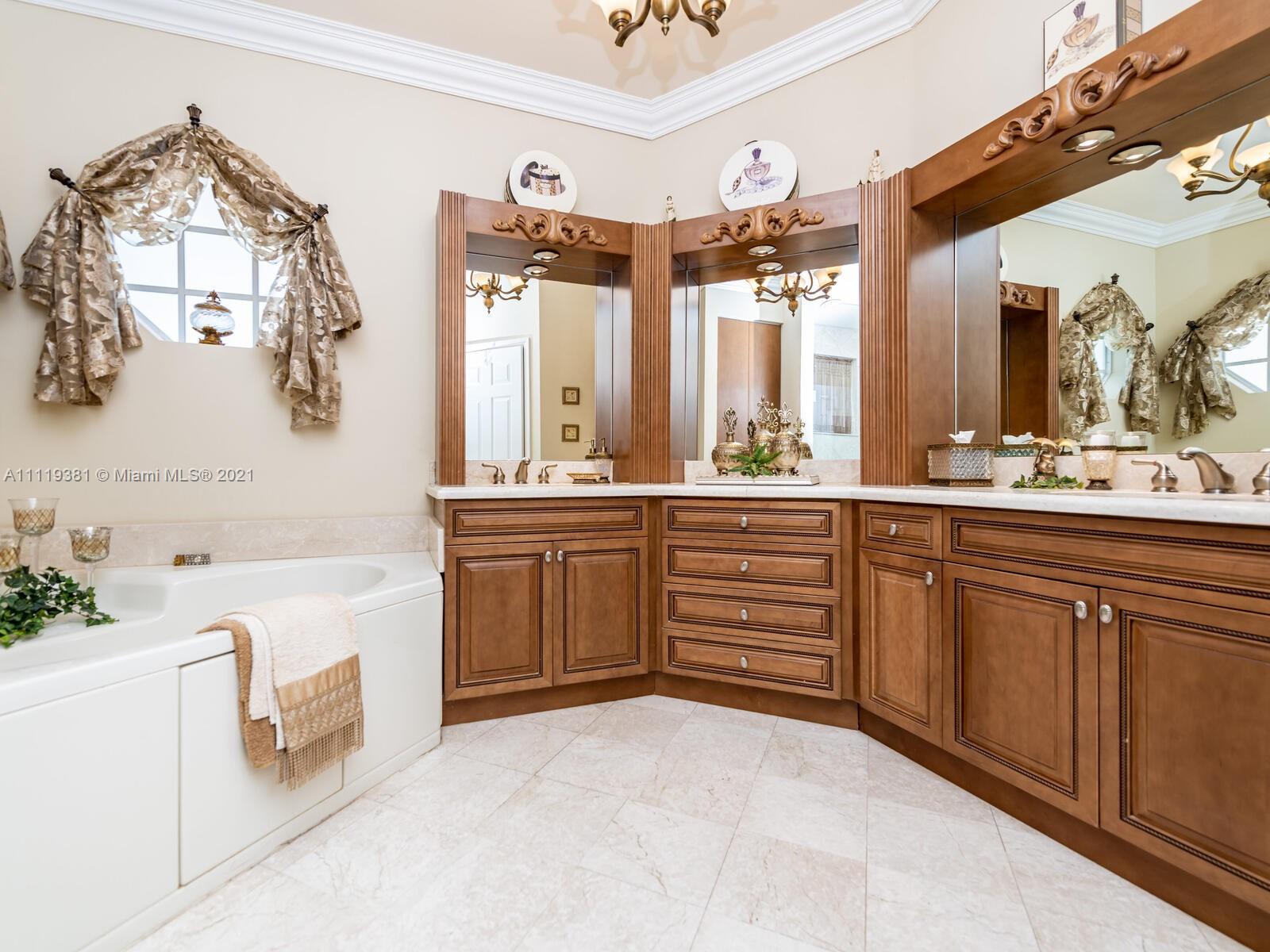 Deal fell apart due to illness....Exquisite home situated on the best lot on the block! This is a small enclave of 23 homes. The original owner has maintained her home with the upmost care plus much love which shines throughout. Interior features 5 bedrooms*4 bathrooms*3 up and 2 down* 2 masters bedrooms and sitting area*custom closet cabinetry*top quality ceramic wood look floor throughout main living area*Gorgeous carpeting with a beautiful soft pattern*tray ceilings*crown molding even in the bathrooms*office/den*wood cabinetry in kitchen & b-rooms plus granite counters*impact windows*french doors. Exterior features: Open covered patio overlooking pool with raised spa*fenced yard*s-tile roof*very private location*great curb appeal*north/south exposure